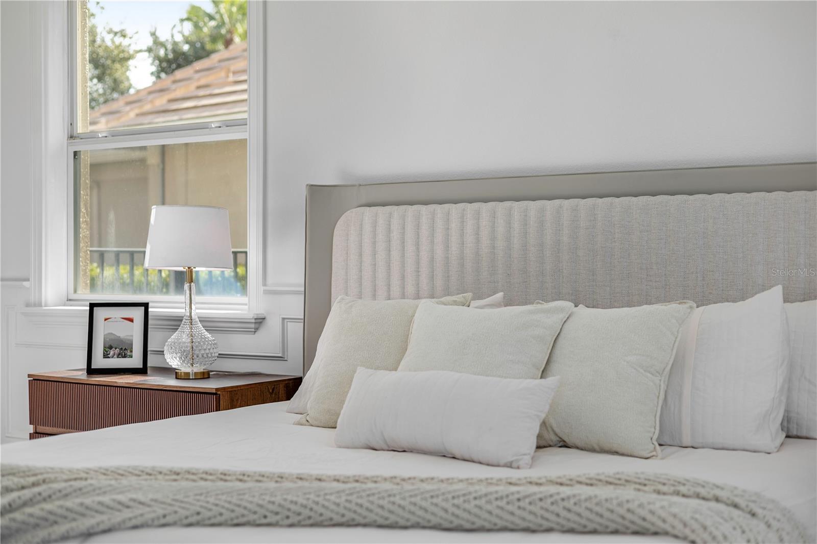 - Primary Bedroom Main Floor, Solid Wood Cabinets, Stone Counters, Thermostat, Walk-In Closet(s)