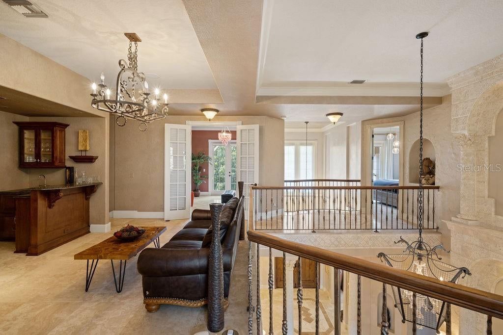 A Masterpiece on the 4th Hole – Keene’s Pointe Luxury Living Perfectly poised on a premium golf-front lot in the gorgeous, guard-gated community of Keene’s Pointe, this custom-built residence by Unnerstall blends refined craftsmanship with thoughtful design and breathtaking views of the Golden Bear Club’s 4th hole and tranquil water features. Boasting over 6,100 square feet of impeccably designed living space, this home offers 5 en-suite bedrooms, two private offices, a dedicated fitness room, and a sunroom-style bonus/game room—all tailored for both comfortable daily living and elevated entertaining. From the moment you step through the grand double doors, you’re welcomed by travertine flooring, elegant architectural detail, and a sense of scale that is both impressive and inviting. The main-level primary suite is an expansive retreat featuring dual walk-in closets and an unforgettable two-story spa bath designed to inspire relaxation. A second bedroom suite on the first floor provides ideal accommodations for guests or multi-generational living. The heart of the home is the gourmet kitchen, beautifully appointed with custom cabinetry and open to the dramatic two-story great room, creating a seamless flow for entertaining. Upstairs, you’ll find three additional en-suite bedrooms, a flexible bonus room or office, and a private home gym. Step outside to your personal resort. A screened-in lanai leads to a lush, landscaped backyard with a copper-roofed gazebo, outdoor kitchen and bar, and a sparkling pool and spa—all perfectly positioned for enjoying Florida’s golden skies and outdoor lifestyle. Additional highlights include an oversized paver driveway, three-car garage plus separate golf cart entrance, Venetian plaster finishes, and designer touches throughout. Set within one of Windermere’s most exclusive communities, where majestic oaks, lakeside trails, and the Butler Chain of Lakes frame a lifestyle rich in privacy, recreation, and natural beauty—this is more than a home. It’s a statement.