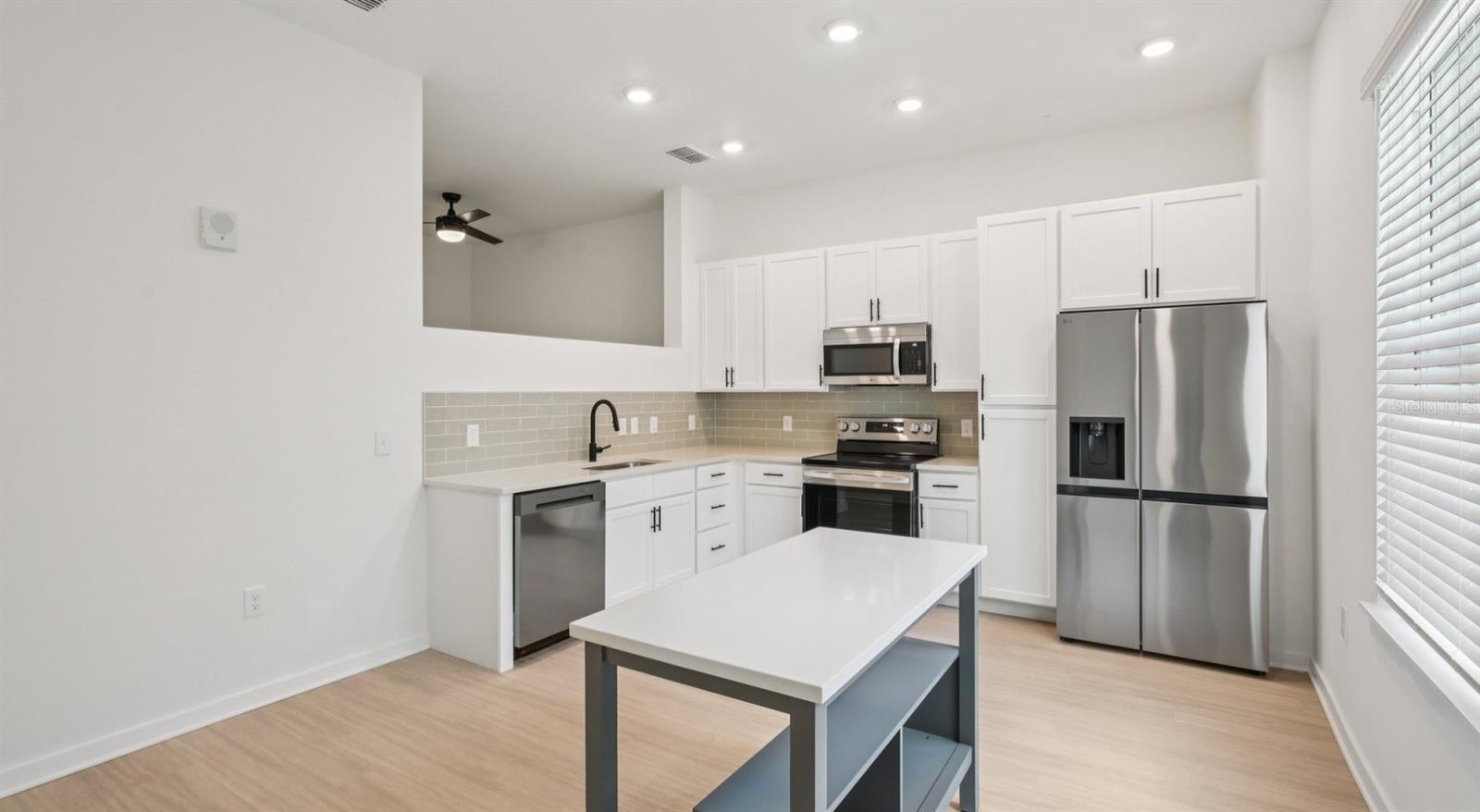 - Ceiling Fans(s), High Ceilings, Kitchen/Family Room Combo, Living Room/Dining Room Combo, Open Floorplan, Smart Home, Solid Surface Counters, Thermostat, Walk-In Closet(s)