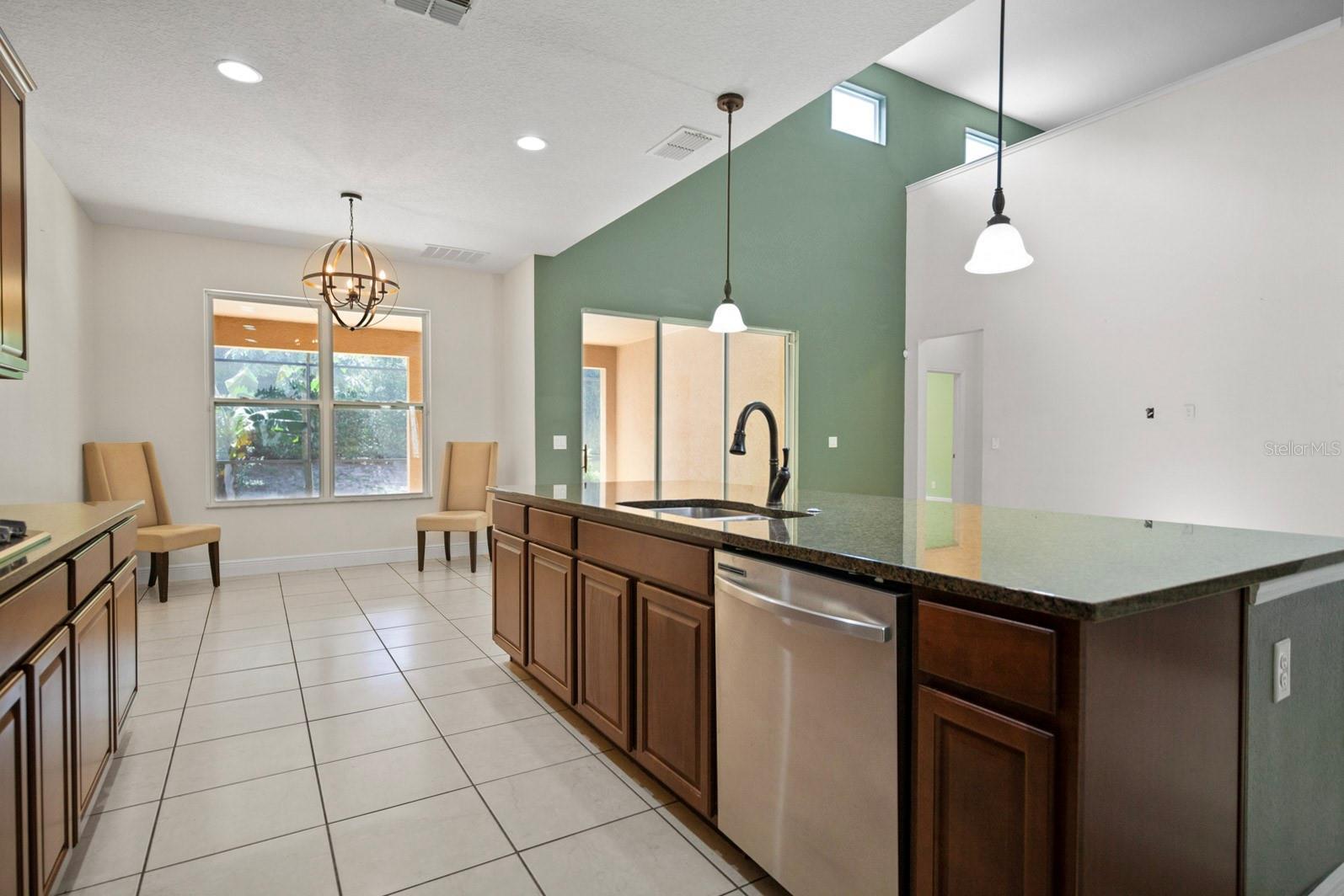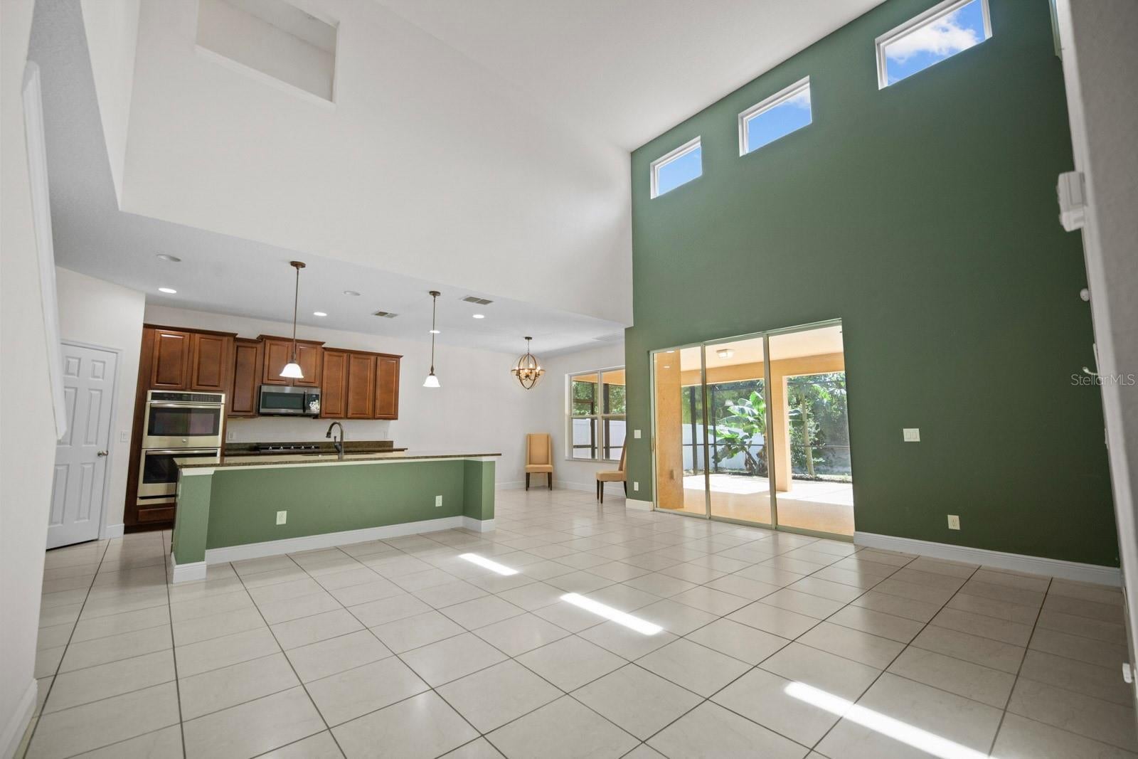 - Built-in Features, Ceiling Fans(s), Eat-in Kitchen, High Ceilings, Kitchen/Family Room Combo, Open Floorplan, Primary Bedroom Main Floor, Solid Wood Cabinets, Walk-In Closet(s), Window Treatments