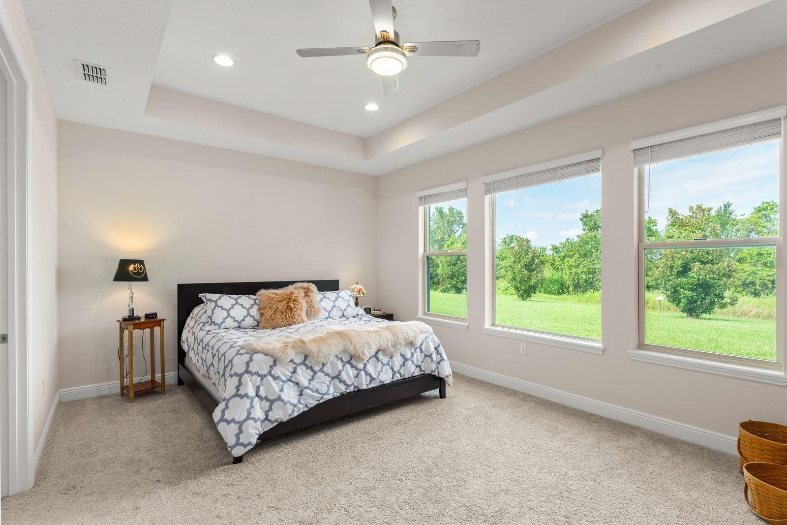 - Built-in Features, Ceiling Fans(s), Eat-in Kitchen, High Ceilings, Open Floorplan, Solid Surface Counters, Split Bedroom, Thermostat, Tray Ceiling(s), Window Treatments