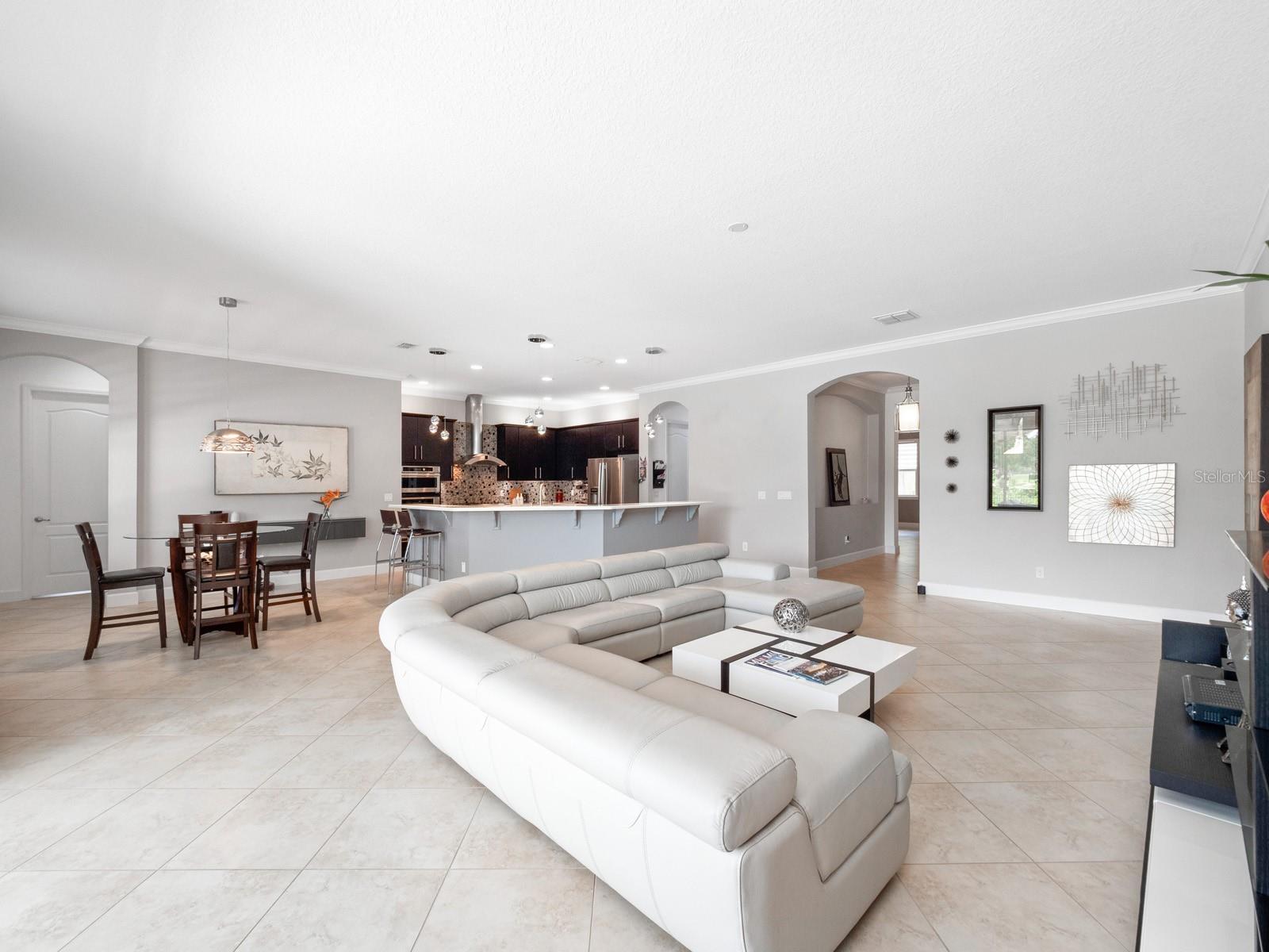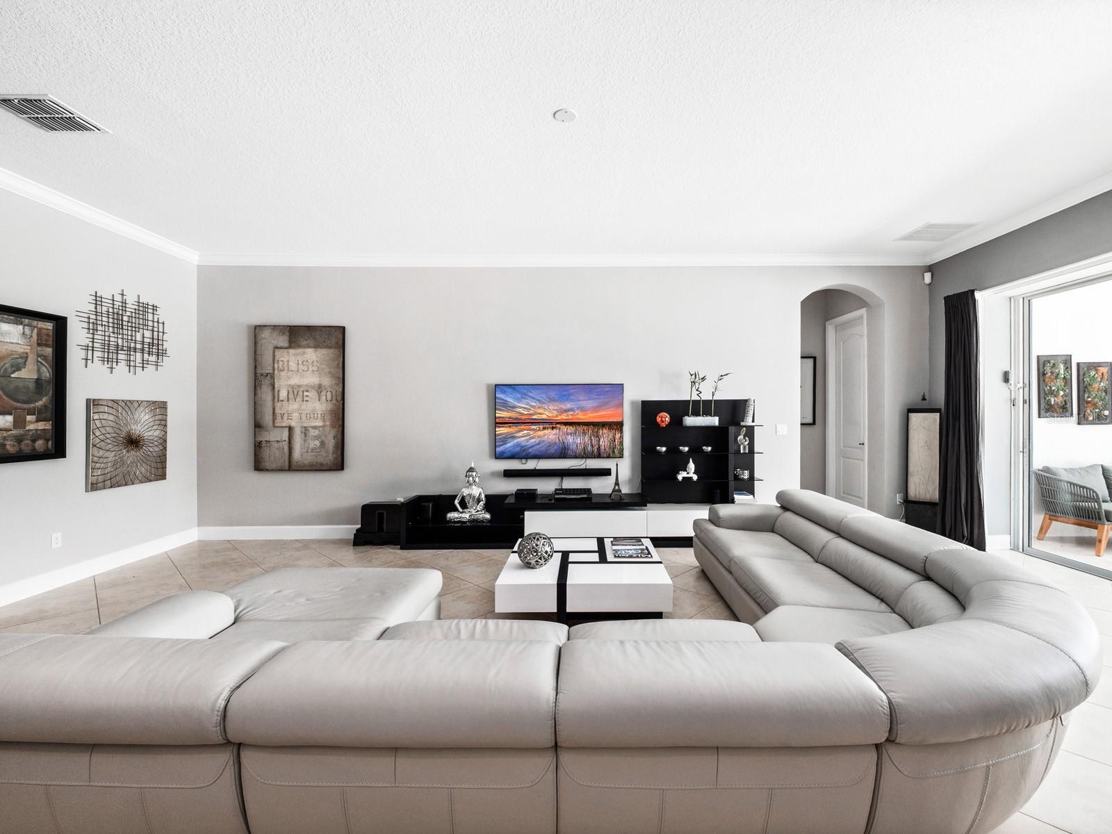 Welcome to your dream oasis! This stunning 5-bedroom, 3.5-bath single-family home on Lake Hancock is a true masterpiece, offering the ultimate in luxury and comfort. With a contemporary design and exceptional features, this residence is a rare gem in the world of real estate. Upon entering this exquisite residence, you'll find a spacious living room and an elegant dining room, both thoughtfully designed for special occasions and entertaining. Continuing through the home, you'll be greeted by an exquisite open floor plan that seamlessly connects the kitchen, complete with top-of-the-line appliances, to the inviting family room. This perfect layout ensures that you're never far from the action, whether you're preparing a gourmet meal or enjoying quality time with family and friends. Natural light pours in through retractable sliding doors, creating an indoor-outdoor experience like no other. These doors lead to a captivating saltwater infinity pool and spa, perfect for relaxing on warm days or entertaining under the stars. With five generously sized bedrooms, there's plenty of space for your family and guests. The master suite is a sanctuary, featuring a spacious walk-in closet and an ensuite bath with all the luxurious amenities you deserve. Situated on a large corner lot, the property offers privacy and ample outdoor space for gardening, play, or simply basking in the sun. Your options are endless when it comes to creating your own outdoor paradise. This residence is not just a home; it's a lifestyle. Experience the epitome of elegance and modern living in every corner of this property. This home is just minutes from top-rated schools, shopping, dining, and moments away from the enchantment of Disney and Orlando's premier attractions.