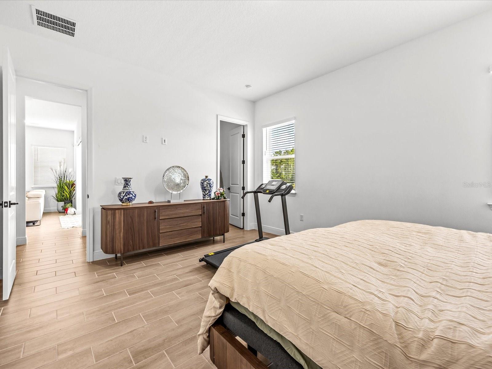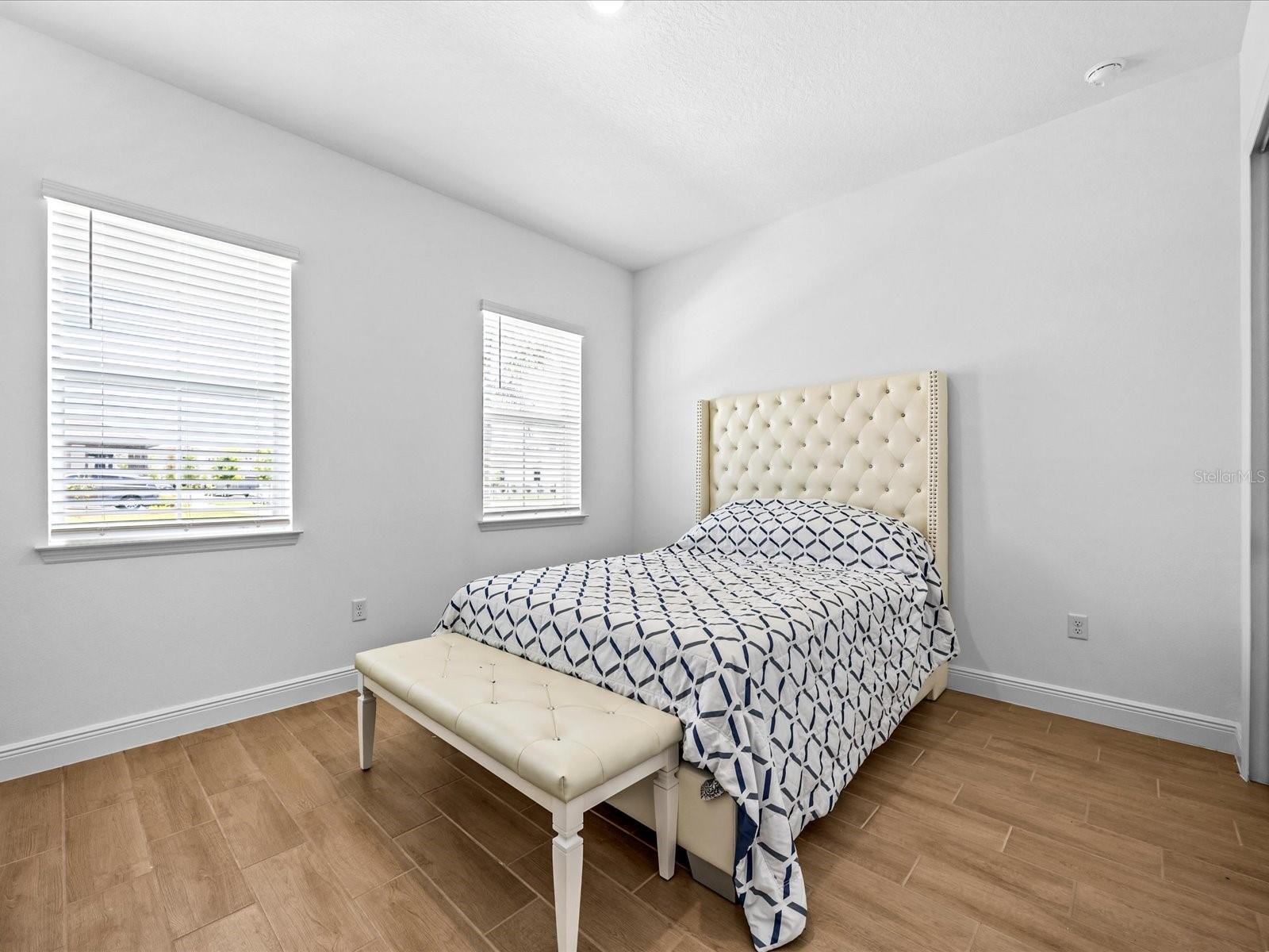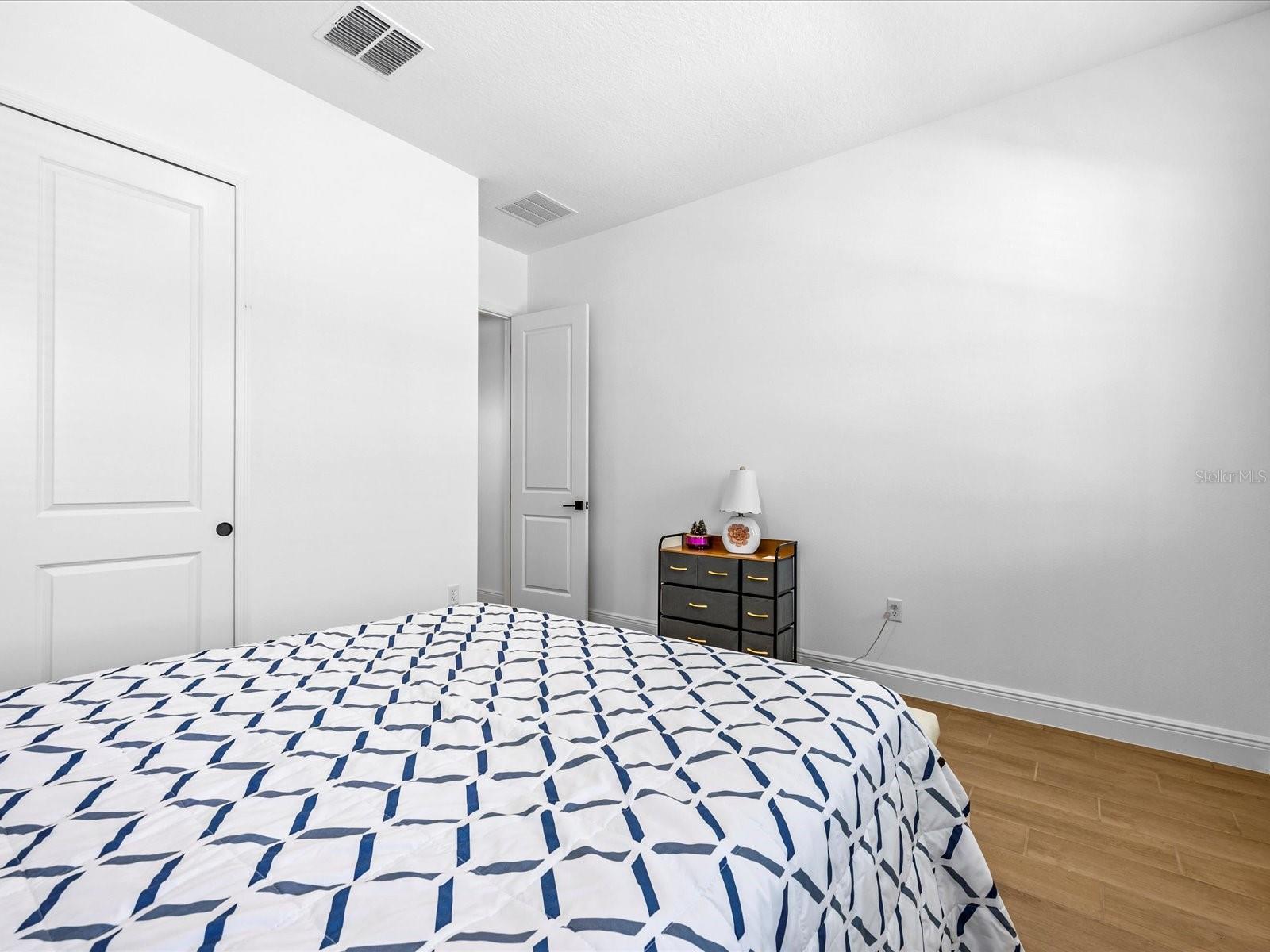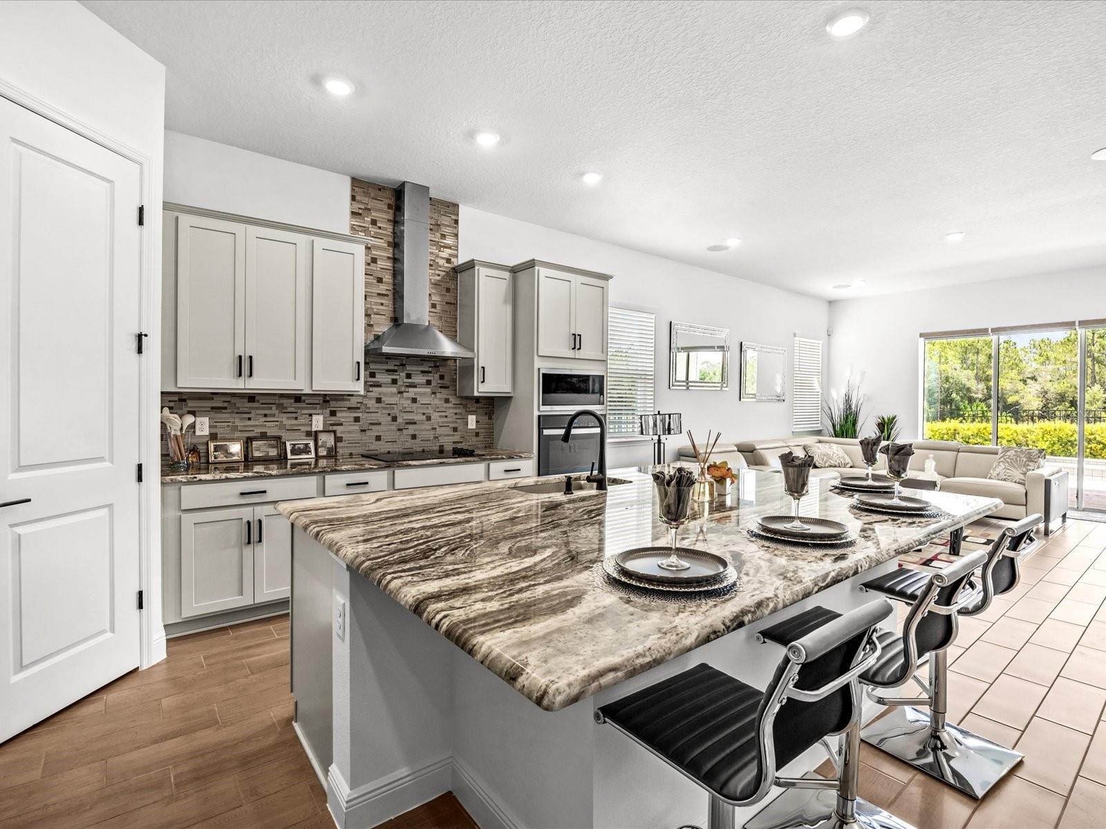 Why wait to build when you can own this rare, move-in ready gem? Situated on an oversized corner lot with serene lake and conservation views, this stunning 4-bedroom, 2.5-bath pool home with spa is located in the highly sought-after community of Weslyn Park, part of the Sunbridge master plan. Designed with wood-look tile flooring throughout and no carpet, this home offers a bright, open layout ideal for modern living. At the front of the home, two secondary bedrooms share a full bath, perfect for guests or family. At the heart of the home, there is a spacious great room and gourmet kitchen featuring an oversized quartz island, built-in oven, cooktop, upgraded stainless steel appliances, soft-close cabinetry, custom backsplash, and a walk-in pantry with built-in shelving. A versatile flex room offers the perfect space for a home office or a fourth bedroom. The private primary suite is tucked away and offers a spa-like retreat with a freestanding soaking tub, walk-in shower, dual vanities, and a custom walk-in closet. Step outside to your private backyard oasis; a covered lanai and expansive paver pool deck overlook lush landscaping, a fenced yard, and a pool and spa, with no rear or left-side neighbors for maximum privacy. This is more than a home, it’s a lifestyle. Schedule your private showing of this one-of-a-kind pool home today!