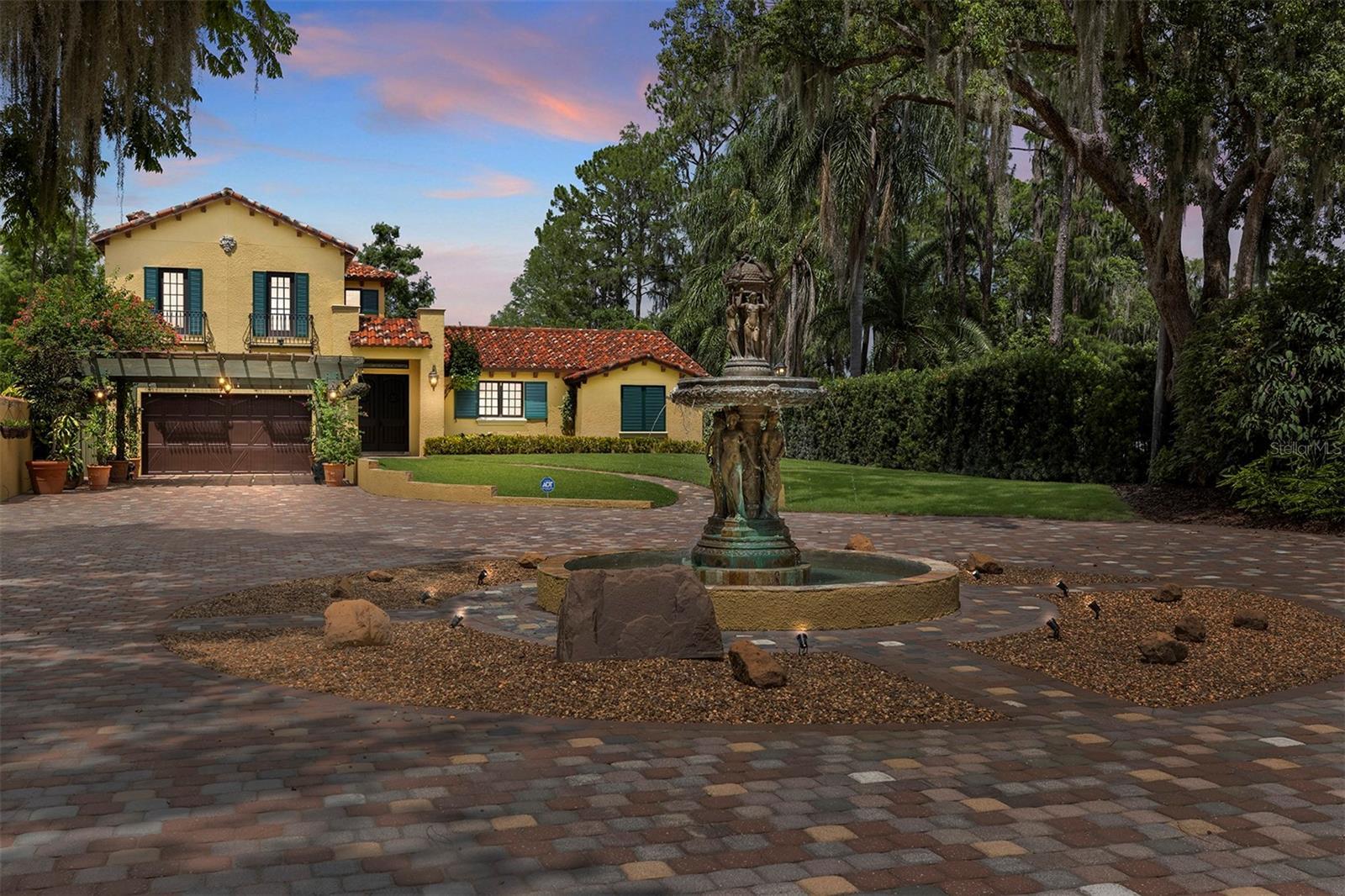 Discover this exquisite lakefront property nestled on over 1.9 acres with more than 100 feet of water frontage on LAKE TIBET and part of the Butler Chain of Lakes. This home offers breathtaking views and absolutely stunning sunsets. As you drive onto the winding paver circular driveway with lovely fountain and beautiful landscaping, you will notice the terracotta tile roof and the undeniable architectural style of this home. The 2 car garage has EV charging station. Once you enter the home you will be impressed with the whole house automation system, motorized window treatments, travertine floors, gas fireplace and crown moulding. At the heart of the home, the chef’s kitchen featuring elegant custom cabinetry, boasts of a large island, granite counter , 2 Sub Zero appliances, reverse osmosis system, pot filler, Wolf steamer, warming drawer and wine fridge. Downstairs are 2 additional bedrooms with en-suites each with special features. Upstairs, You will admire the solid hardwood flooring and attention to details. Primary suite overlooks the breath taking view of Lake Tibet and features en-suite adorned with stone flooring with stand alone tub and separate shower. The primary suite has a large walk-in closet with a custom built closet system w/safe and another separate closet. Two additional bedrooms upstairs share a full bath. A sparkling pool w/spa within the screened patio offers a tropical escape with a summer kitchen featuring, large grill, hotplate, warming tray, pot filler and TV and misting station. The secondary covered patio outside the screened enclosure is perfect for an additional quiet oasis to enjoy your stunning views. The newly re-built dock and covered boat house w/lift (2023) with composite decking comes complete with electric & water is perfect for the enjoyable days and nights on the water. Other features include updated septic system(2024), new pool pump (2025), H2O Water Softener system, No Home Owner Association. Seller is leaving all electronics within the home. Conveniently located minutes from “Restaurant Row”, Disneys Springs, Bay Hill and zoned for “Top Rated” Schools. Schedule private tour of this remarkable home today.