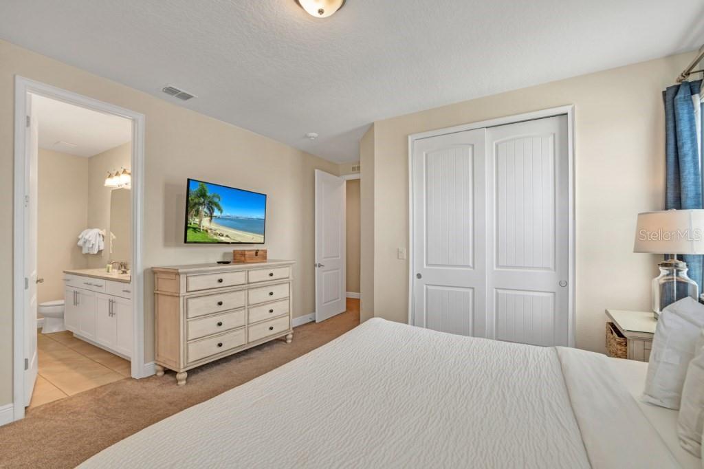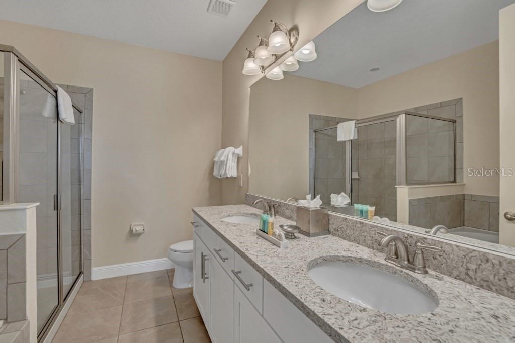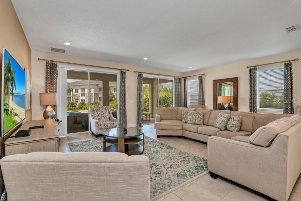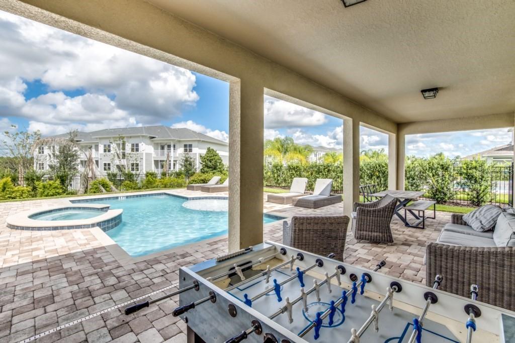 Under contract-accepting backup offers. Welcome to the gated community of Encore Resort at Reunion, this stunning 8-bedroom, 8.5-bathroom home is located close to major highways and theme parks. This amazing home offers open-format living, with plenty of natural lighting, dining, and kitchen space making it excellent for large family gatherings and holiday parties. The kitchen features granite countertops, stainless steel appliances, as well as a large island with plenty of space for dining. The downstairs master suite features a spacious bedroom and bathroom with a walk-in shower, tub, and dual sinks. The large second-floor area offers a large bonus room perfect for family activities. Each second-floor bedroom features an ensuite bathroom and is professionally decorated. The backyard offers a fenced-in pool, hot tub, and splash pad along with a covered lanai area. This home boasts a 2-car garage, massive paved driveway, and neighborhood water park. The HOA includes lawn and pool care, internet, and cable. This vacation property is built for residents and guests to fully enjoy the laid-back lifestyle Florida has to offer.