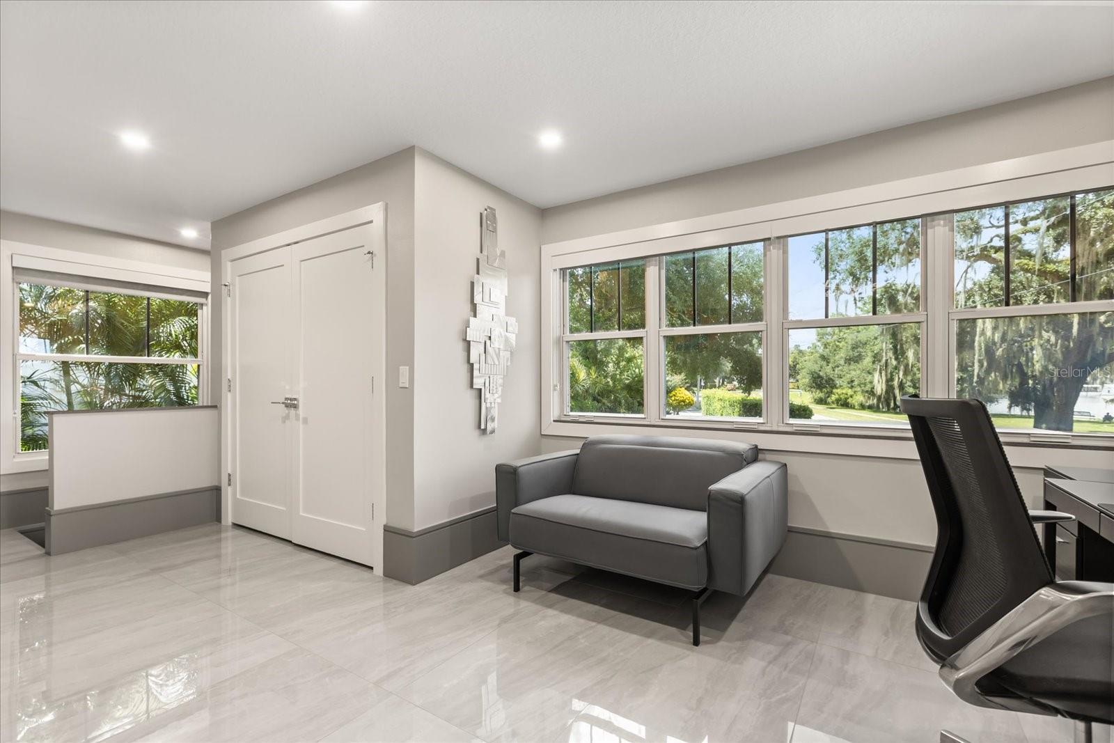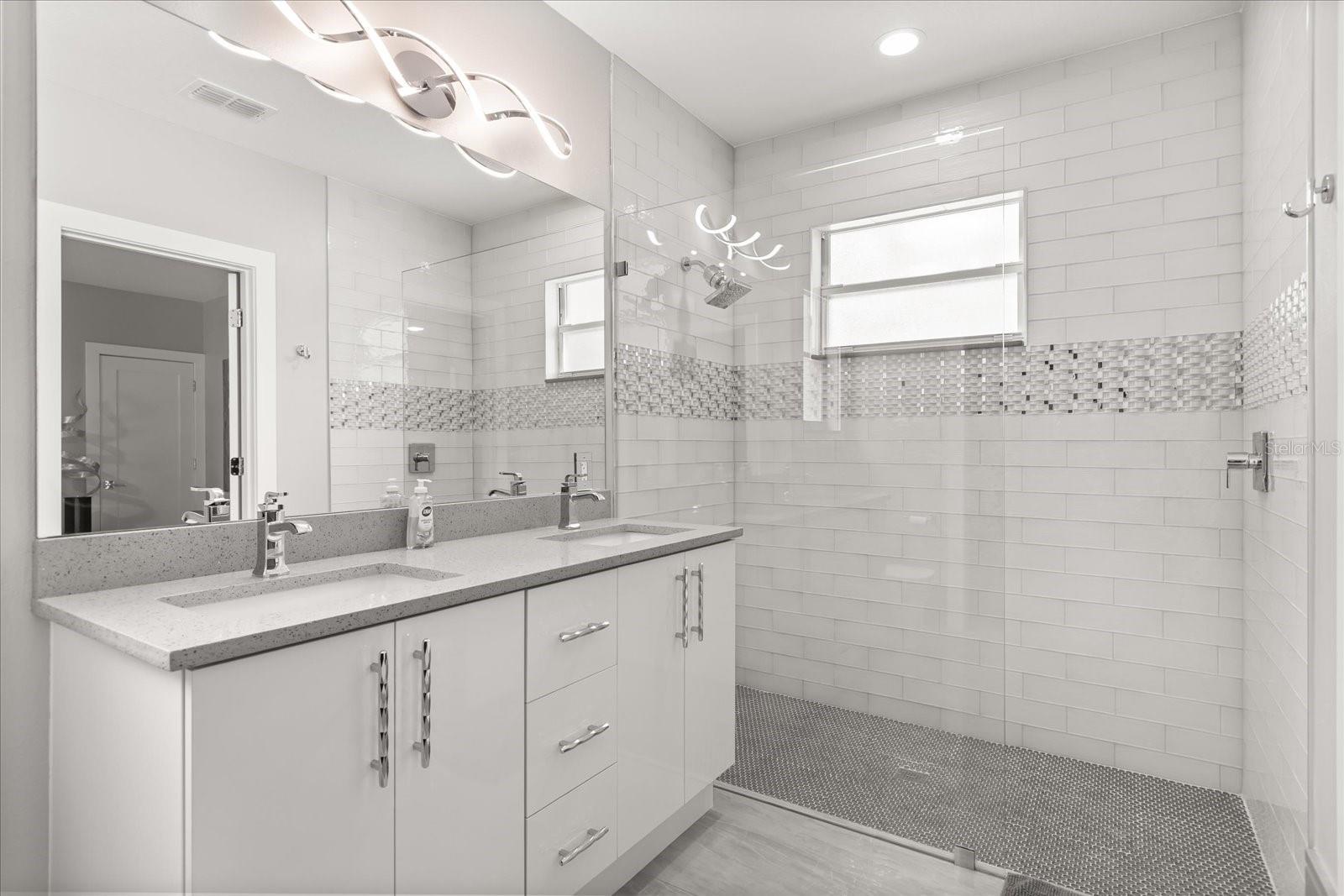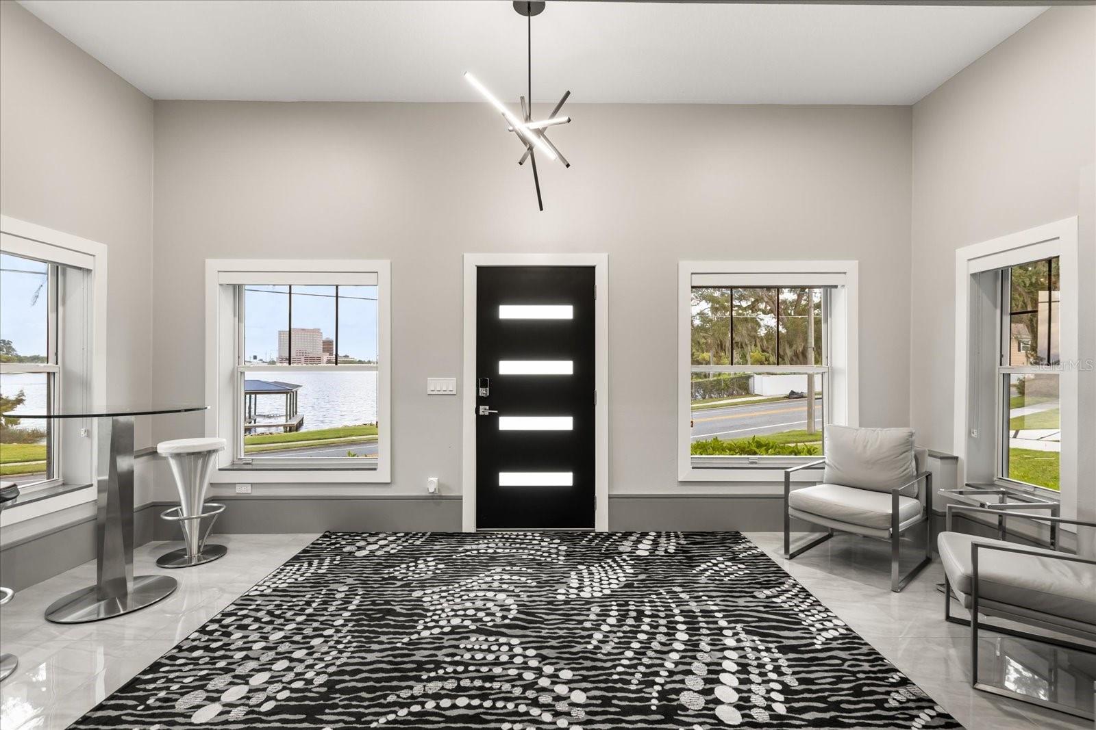 This fully renovated 3-bed, 3.5-bath home offers rare lakefront living with 152 feet of private frontage on Lake Concord—including the only private boat ramp on the lake. Bold modern design meets effortless functionality in a light-filled, open-concept layout with panoramic water views throughout. Dual primary suites feature spa-like baths and custom closets. The designer kitchen impresses with high-gloss cabinetry, quartz counters, glass tile backsplash, and premium KitchenAid appliances. Entertain seamlessly in the lake-facing great room, open dining area, or corner office with sunrise views. Every major system is updated: 2023 roof, new electrical (200A underground service with generator-ready transfer switch), new water heater, and all-new finishes inside and out—including modern stucco, garage doors, and trim. Enjoy a rare Central Florida basement with a half bath and storage/flex space, plus a fully fenced backyard with a hot tub and pergola-covered deck. Across the street, your private lakefront parcel includes a covered dock with power, water, LED lighting, and a boat lift—offering downtown Orlando skyline views and glowing evening ambiance. Located minutes from Downtown Orlando, Ivanhoe Village, and major roadways—this is high-style, turn-key lakefront living in the heart of College Park