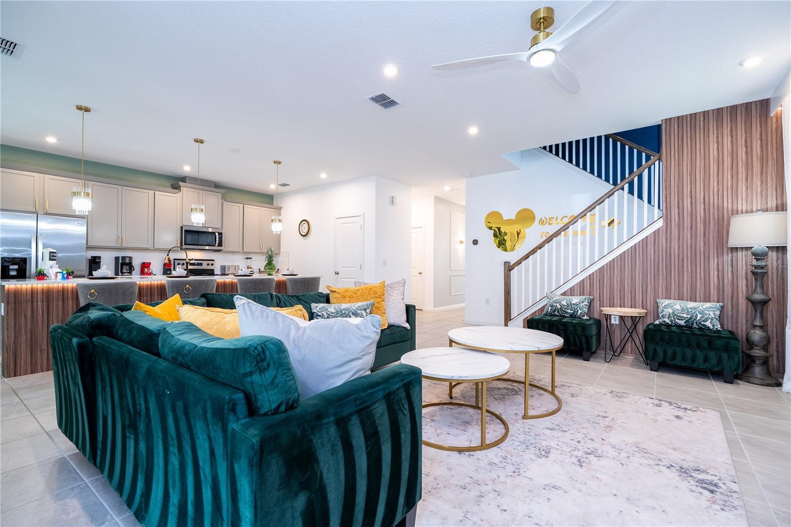 Welcome to 2370 Salty Winds Way, a stunning two-story home located in the highly desirable gated community of Solara Resort in Kissimmee. Built in 2023, this fully furnished 6-bedroom, 3.5-bathroom property is ideal for use as a vacation home, short-term rental, or full-time residence. Inside, you'll find an open-concept layout filled with natural light, high ceilings, and modern finishes. The spacious kitchen features stainless steel appliances and a large center island perfect for cooking and entertaining. Each bedroom is thoughtfully furnished and includes its own TV, offering comfort and convenience for guests or family members. Step outside to your private screened-in pool and spa, along with a covered lanai that provides the perfect space for relaxing or hosting. The home is located just minutes from world-renowned attractions such as Walt Disney World and Universal Studios, as well as shopping, dining, and major highways. Residents and guests also enjoy access to premium resort-style amenities including a clubhouse, pool, fitness center, and more. This home offers the perfect combination of style, location, and functionality—all within a vibrant vacation-friendly community.