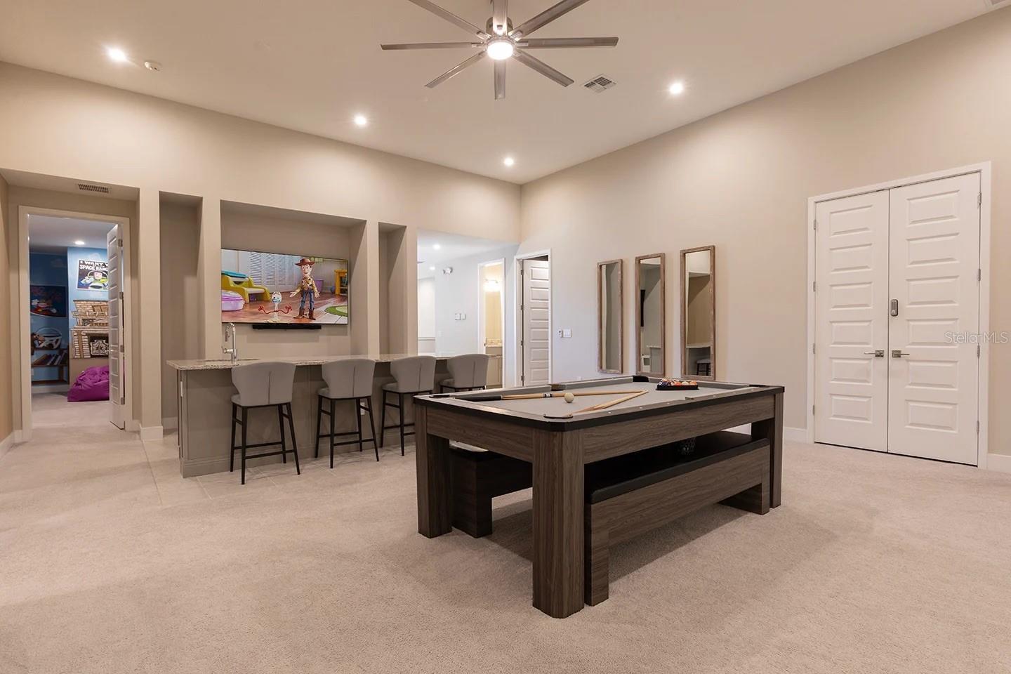 Unmatched Luxury & Rental Performance in Reunion’s Prestigious Bear’s Den Club! Experience the ultimate in resort-style living in one of the most exceptional vacation rental homes in all of Reunion Resort. This exceptional 7-bedroom residence is positioned on a rare oversized homesite with no rear neighbors and a serene private park directly behind the home, delivering privacy, space, and one of the most desirable settings in the community. Professionally designed and offered fully furnished, the home features immersive custom-themed bedrooms, a state-of-the-art home theater, expansive loft with billiards, and a dedicated arcade — all crafted to elevate guest experience and maximize rental appeal. The open-plan layout flows effortlessly to the outdoor living area, where you’ll find a private pool and spa, covered dining, and a fully equipped summer kitchen — ideal for entertaining in the Florida sunshine. The sleeping arrangements have been thoughtfully configured to accommodate large groups, including multiple king suites, full-size beds, and two creative bunk rooms, all styled with a designer’s eye for detail. Located just minutes from Walt Disney World and Orlando’s premier attractions, the Bear’s Den Club provides residents and guests exclusive access to world-class amenities including signature golf courses, fine dining, tennis, a water park, fitness center, and concierge services. An active Reunion Club membership is available, allowing immediate access to the full array of resort offerings. Don't miss the video tour link.