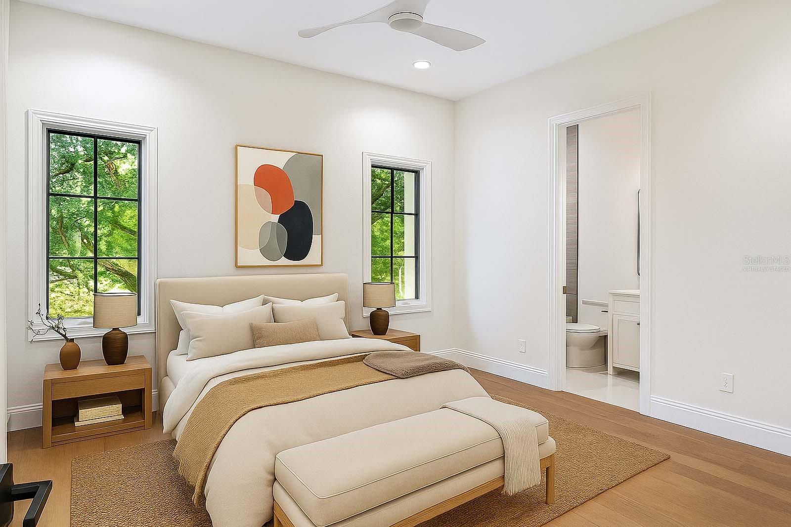 One or more photo(s) has been virtually staged. Nestled along the 12th fairway of Lake Nona Golf & Country Club's famed championship golf course, stunning panoramic fairway and water views provide the backdrop for this gorgeous estate within one of Central Florida’s most sought-after private communities. Originally built in a Mediterranean style, the residence has just undergone a comprehensive renovation by Akers Custom Homes, featuring an expertly reimagined floor plan, a new epicurean kitchen, remodeled bathrooms throughout, the addition of a second-floor laundry suite, and a fifth private ensuite bedroom. The exterior received a new roof, fresh exterior paint, Sierra Pacific windows and doors, and a newly designed saltwater pool and spa. Custom double doors open to the home’s welcoming foyer, which introduces the thoughtful floor plan where formal and casual living spaces are enhanced by natural light and golf course views. The elevated interior design strikes the perfect balance of sophistication and warmth with new European white oak hardwood flooring and custom cabinetry throughout, and Lutron lighting integration for intuitive whole-home control. The chef’s kitchen showcases an all-new Viking appliance suite, including a 48” dual-fuel range with six burners, griddle, and double ovens, a 48” built-in refrigerator, professional dishwasher, and matching hood. A center island with Kohler prep sink, a walk-in pantry and a breakfast nook complete the space. The first-floor owner’s suite offers a serene retreat with dual walk-in closets, a reading nook, and direct access to the lanai. The spa-inspired bath highlights a freestanding soaking tub, custom vanities, and an oversized glass-enclosed shower. The second floor is comprised of three generously sized en suite bedrooms, a dedicated study/office, bonus/media room and access to an expansive covered balcony. Outdoor spaces are designed for entertaining and recreation, offering multiple golf course vantage points, a new saltwater pool and spa, and an integrated sports court with basketball hoop. Additional features include two expansive laundry suites, indoor and outdoor gas fireplaces, and garage space for 3 cars and 2 golf carts with built-in cabinetry, sink, and climate-controlled mini-split system.