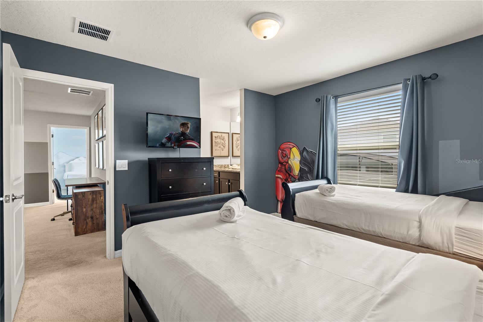 Discover the epitome of luxury in Windsor Island Resort, one of the premier vacation home communities near Disney! This fully furnished residence offers 8 spacious bedrooms and 6 elegant bathrooms, with a sprawling open floor plan that caters to both relaxation and entertaining. The home's outdoor area is a private haven, featuring a screened-in heated pool and spa, along with a large lanai perfect relaxing or entertaining. Upon entering, you'll be greeted by a grand 2-story foyer and a beautiful staircase leading to the upper level. The fantastic kitchen boasts 42' cabinets, stainless steel appliances, and a lovely breakfast bar, and it flows seamlessly into the gathering room and dining area, opening through sliding doors to the outdoor living space. Indoor-outdoor living is effortless, whether for family gatherings or serene moments of tranquility. The first-floor layout is thoughtfully designed with the primary suite and an additional guest suite for ultimate convenience. The second floor offers a retreat-like ambiance with two private suites, two sets of Jack-and-Jill bathrooms, a spacious loft, and a versatile loft that can be used as a lounge, theater room or games room. The garage has also been converted into a fabulous game room for extra entertainment. This home showcases themed bedrooms, designed to ignite the imagination, and a dedicated game room to captivate guests of all ages. Windsor Island Resort enhances the experience with top-tier community amenities, including an 8,000-square-foot clubhouse, lazy river, heated pool, cabanas, sports courts, and more. Ideally located just minutes from Disney and major attractions, this property is perfect as a vacation rental investment or a dream getaway. Don’t miss this extraordinary opportunity to own a piece of paradise! Windsor Island Resort is a premier gated vacation community near Disney, offering unparalleled amenities and an unbeatable location. Residents can enjoy an 8,000-square-foot clubhouse, a heated pool with a relaxing lazy river, poolside cabanas, a fitness center, a restaurant and bar, a playground, mini golf, and courts for volleyball, tennis, and basketball. Additional perks include an arcade room and a cozy lounge area with TVs. The community provides convenient access to US 192 and I-4, placing Disney and other attractions just minutes away. The property also comes with transferable future bookings, and the seller is offering either the current furniture or a furniture upgrade tailored to the buyer's preferences. Windsor Island Resort is the perfect blend of luxury, comfort, and prime location!