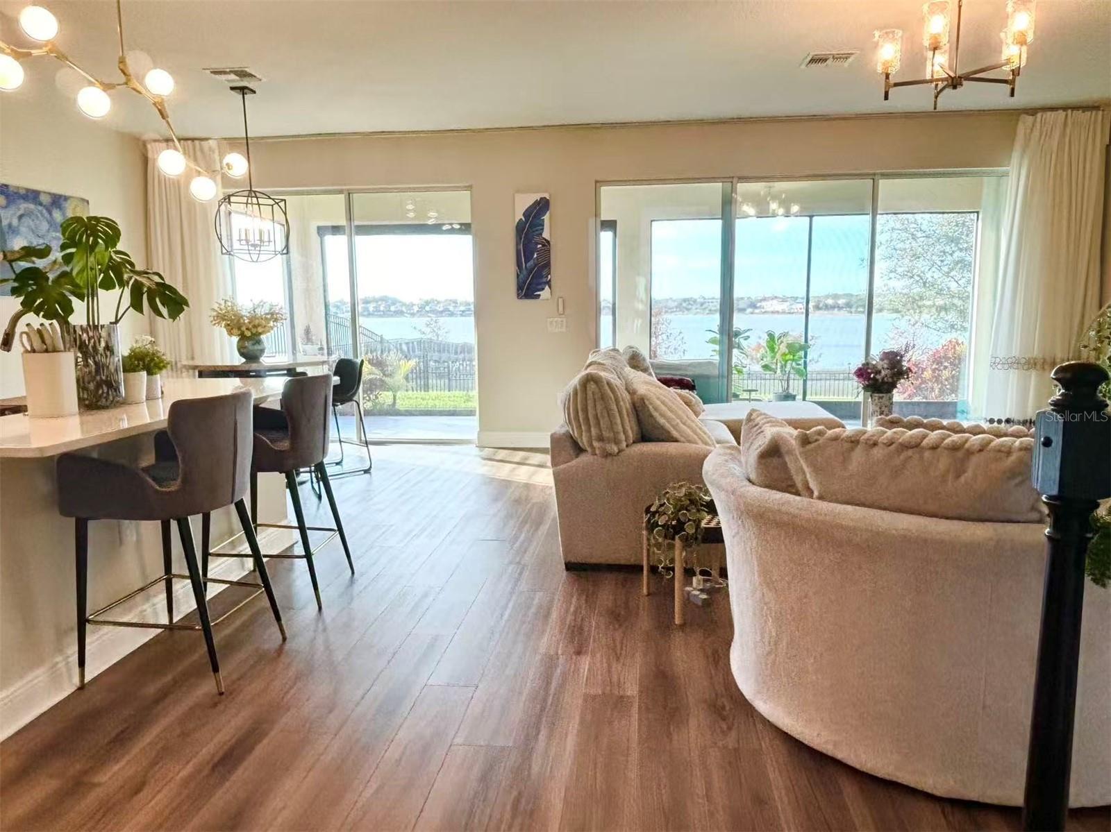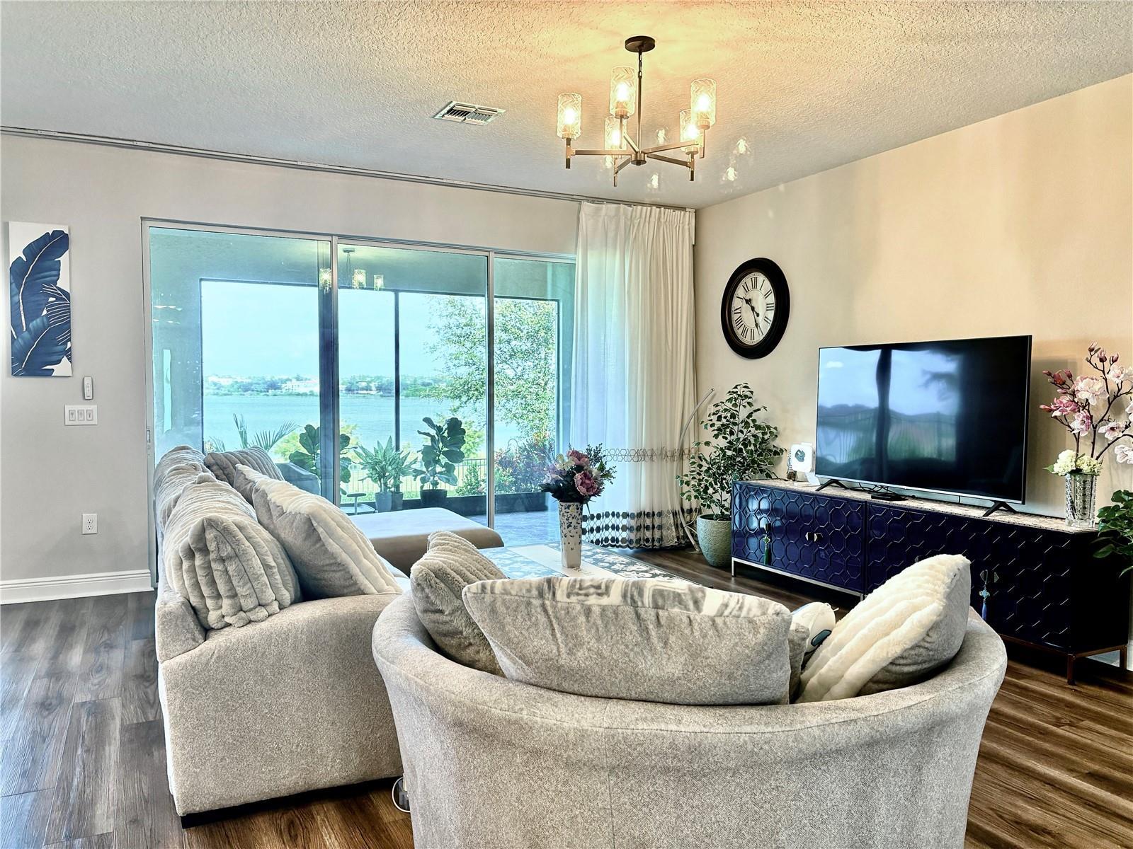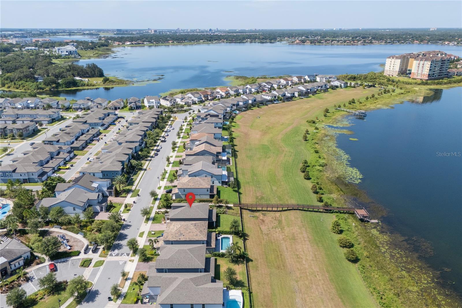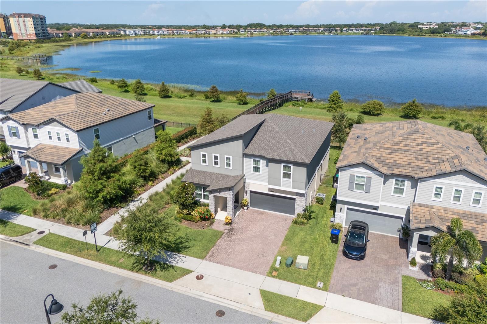 Stunning Lakeview 5-Bedroom Home in the Heart of Orlando- Sand Lake Sound. Experience modern elegance and breathtaking lake views in this 5-bedroom, 4-bathroom home located in the heart of Orlando. The main floor features one bedroom with a full bath, while the upstairs boasts a luxurious master suite along with three spacious guest bedrooms and a large loft—ideal for a game room, media center, or second living space. Luxury vinyl flooring flows throughout the entire home. The stunning gourmet kitchen boasts sleek stainless steel appliances, elegant quartz countertops, ample cabinetry and modern lighting create both functionality and style. Relax on your screened-in patio and take in the panoramic view of the expansive sand lake. The home is perfectly positioned next to the community dock—offering peaceful sunsets—and directly across from the resort-style community pool. The lakefront community of Sand Lake Sound, nestled between Big and Little Sand Lake, enjoy convenient access to popular shopping, dining, and entertainment. Walt Disney World, SeaWorld, Universal Orlando, and other popular Orlando area attractions are only a short drive away. Don’t miss out on this opportunity to own this stunning lakefront home—schedule your private tour today!
