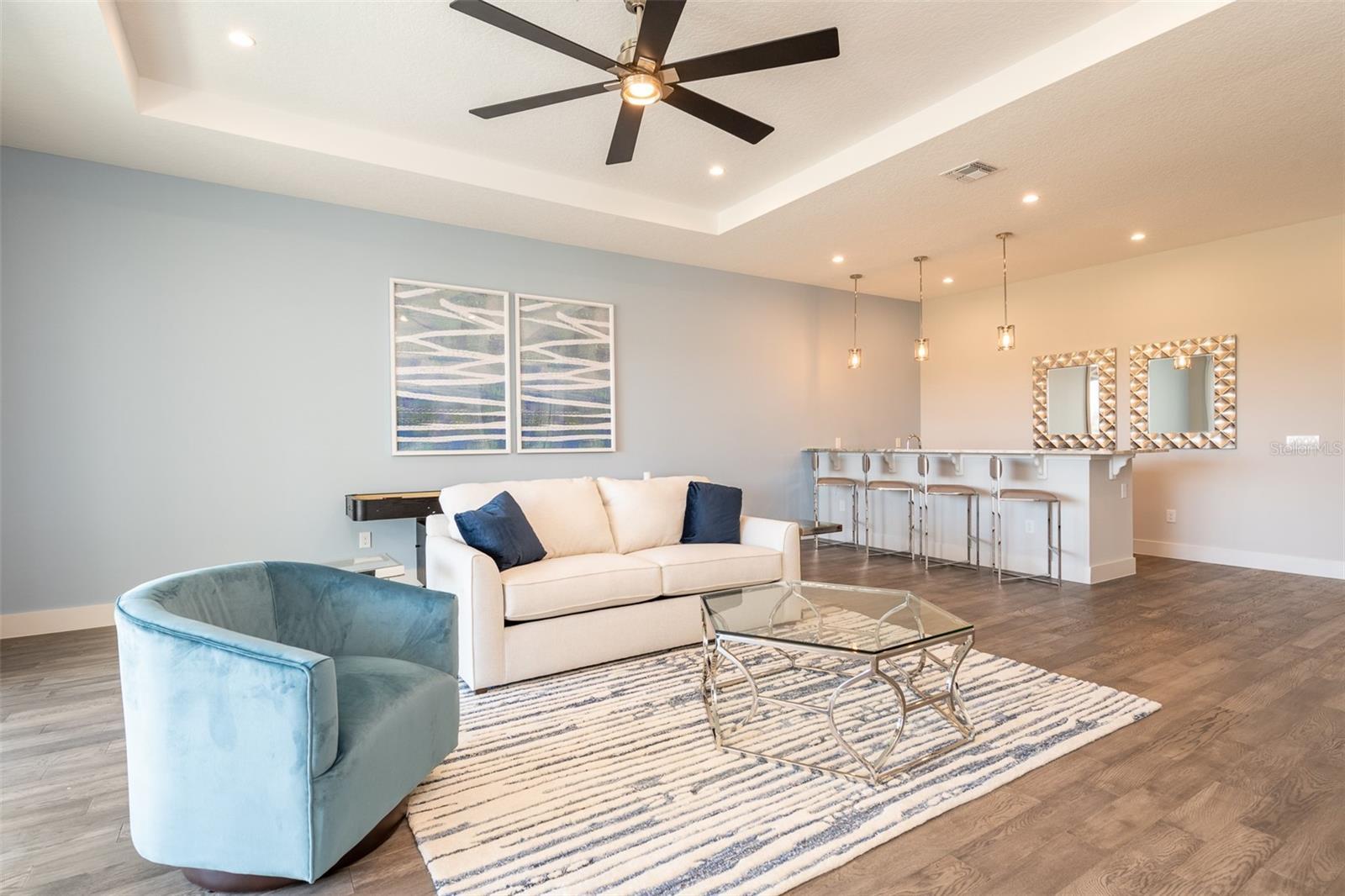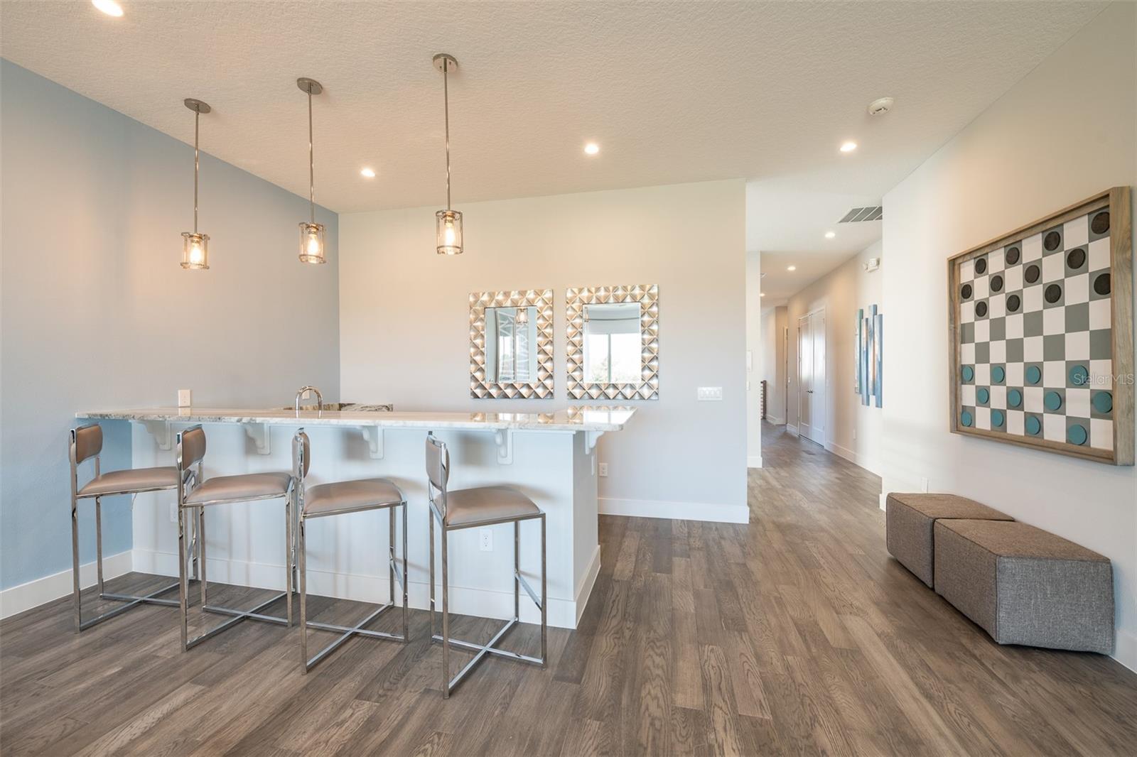 One of the last opportunities to secure a Bear’s Den Residential home overlooking the 18th Hole of Reunion Traditions Golf Course. Superbly located, this home offers endless Sunsets with short walks to a Private Park, Traditions’s Clubhouse and Restaurant and Reunions notable WATERPARK. This is a true TURNKEY opportunity as this home is FULLY FURNISHED and offers access to everything Reunion with a TRANSFERRABLE MEMBERSHIP. This 8BR residence is perfect for large family gatherings and would be ideal for a top level income producing rental. This home offers two bedrooms downstairs an d6 open with a spacious living area, double island in the kitchen and a set aside and separate dining area. Equipped with fantastic outdoor space featuring a SUMMER KITCHEN and also a private sitting area that will be sure to a hit with your gathering of family and friends. If you make it upstairs you will a spacious FLEX ROOM and WET BAR providing a perfect opportunity to enjoy and maximize greater rental income. Come today and see why the BEAR’S DEN is one of Reunion Resort’s most requested locations for ownership!