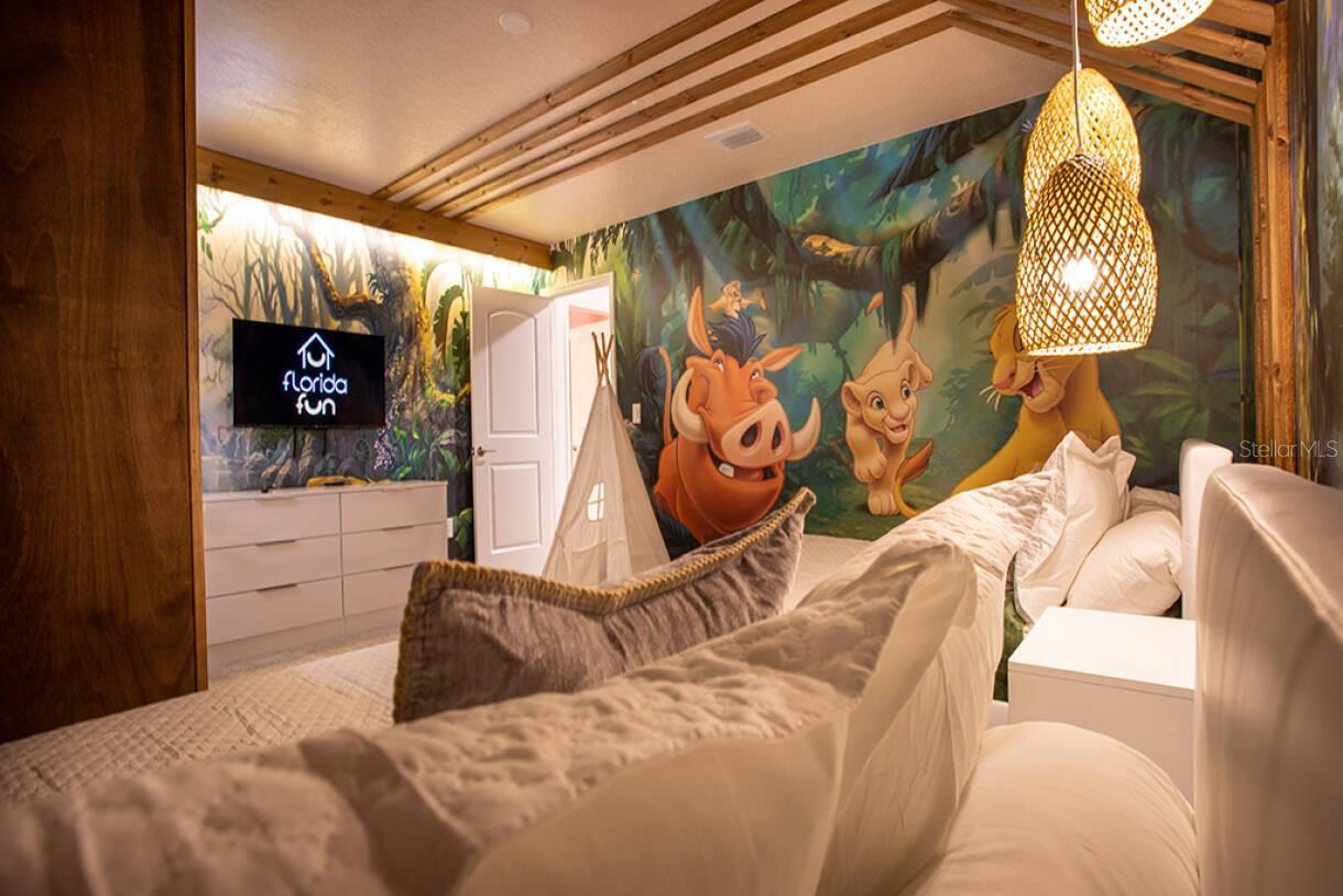 FULLY FURNISHED 8 Bed/ 5 Bath WATERFRONT VACATION HOME IN STOREY LAKE RESORT! Turnkey investment property with high rental income potential. Professionally decorated and designed for comfort and style. Open floor plan, spacious living area, themed bedrooms (princess, toy story, avengers, the Lion king) and game room (Star Wars). Storey Lake Resort offers: Resort-style clubhouse, fitness center, sports courts, pool and more. Just minutes from Disney, Universal, Seaward, shopping and dining. Easy access to Orlando Airport, Atlantic beaches and Gulf Coast. Prime location in one of Orlando's most sought-after vacation communities. Don't miss this opportunity - Schedule a showing today!