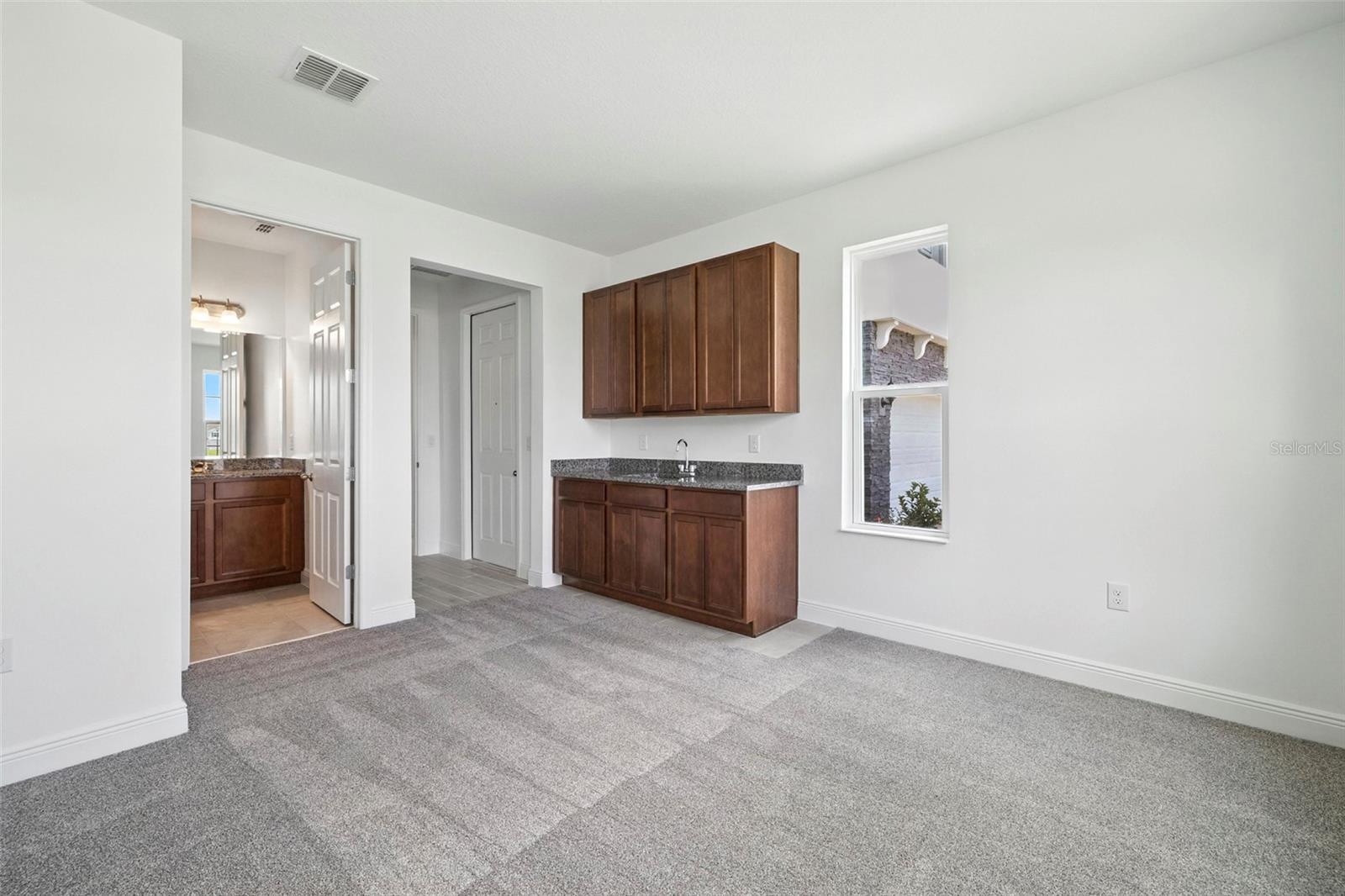 - High Ceilings, Kitchen/Family Room Combo, Open Floorplan, Solid Surface Counters, Split Bedroom, Thermostat, Walk-In Closet(s)
