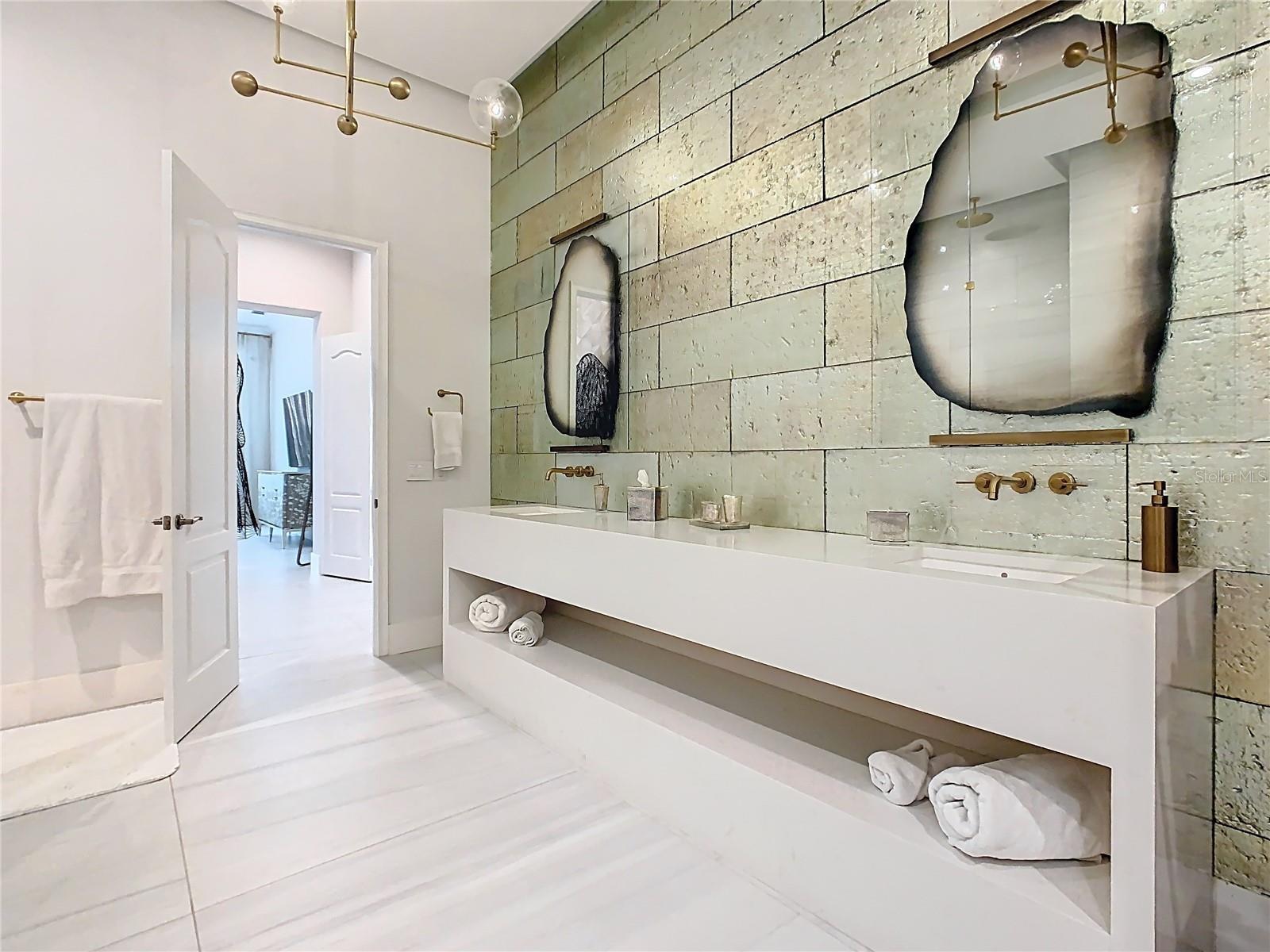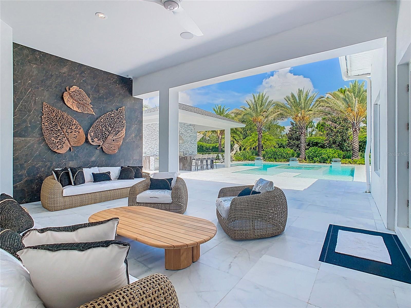 Experience Luxury Living at Its Finest. This warm, contemporary residence blends modern-transitional style with the highest level of finishes throughout. Offering approximately 5,718 sq. ft. of living space and nearly 7,594 sq. ft. under roof, every detail of this home is crafted to deliver elegance, functionality, and lifestyle excellence. Featuring five spacious ensuite bedrooms plus an additional full bathroom, the layout is both versatile and inviting. On the main level, you'll find four bedrooms, including the luxurious primary suite a serene retreat with two oversized walk-in closets and a spa style bathroom adorned with exquisite finishes. Additional main-level spaces include formal living and dining rooms, an open-concept kitchen-family room-eating area, a Florida room, a spacious laundry room, a dedicated home office, and a three-car garage with ample storage. Upstairs offers one more bedroom and a versatile multi-purpose room, all set on a .71-acre lot. At the heart of the home, the gourmet kitchen showcases frameless contemporary cabinetry with automatic lighting, a generous center prep island, three built-in pantry cabinets and premium Wolf and Sub-Zero appliances. The kitchen flows seamlessly into the spacious great room and Florida room, creating the perfect indoor-outdoor living experience. Step outside to your private outdoor oasis, where beautifully landscaped grounds frame serene conservation views. Enjoy a sparkling pool, relaxing spa, summer kitchen with Bull premium appliances, tranquil yard, expansive covered living space, a fireplace and a basketball court. With plenty of outdoor seating areas, this space is designed for year-round entertaining. This exceptional home combines sophisticated design, luxurious finishes and an unbeatable layout perfect for both everyday living and memorable gatherings.
