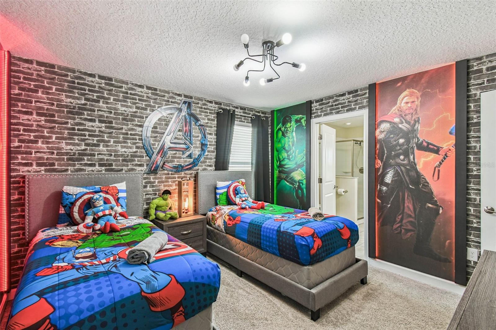 Welcome to the “Marauder’s Mansion” at 8844 Cruden Bay Ct, a stunning Disney-themed, income-producing retreat in the world-class Champions Gate Community of Davenport, Florida. Boasting 9 bedrooms, 5 full bathrooms, and 14 total beds, this spacious two-story home is designed to deliver unforgettable vacation experiences for large groups. This home sits on over 1 quarter of an acre corner lot With a proven record of strong rental income and high occupancy, this turn-key property is both a luxurious getaway and a dependable investment. The open-concept layout flows seamlessly from the expansive family room to the large screened-in lanai and private pool with spa—perfect for relaxing and entertaining indoors and out. Multiple living spaces, comfortable seating, stylish upgrades, and a fully equipped chef’s kitchen with high-end appliances make hosting effortless. The fun extends to a professional arcade, offering endless entertainment, while each bedroom is thoughtfully themed to immerse guests in Disney magic—complete with beloved character murals and décor that evokes joy and nostalgia. Located just minutes from Walt Disney World Resort, Universal Orlando, SeaWorld, and world-famous International Drive, the property puts guests in the heart of Central Florida’s most popular attractions. Championship golf, upscale dining, outlet shopping, and entertainment venues are all within easy reach. Guests also enjoy exclusive access to the Oasis Club at ChampionsGate, with its lazy river, water slides, fitness center, and more. Whether you’re seeking a high-yield addition to your investment portfolio or a magical second home that pays for itself, this property offers a rare opportunity to own themed paradise in one of Florida’s most desirable vacation destinations.