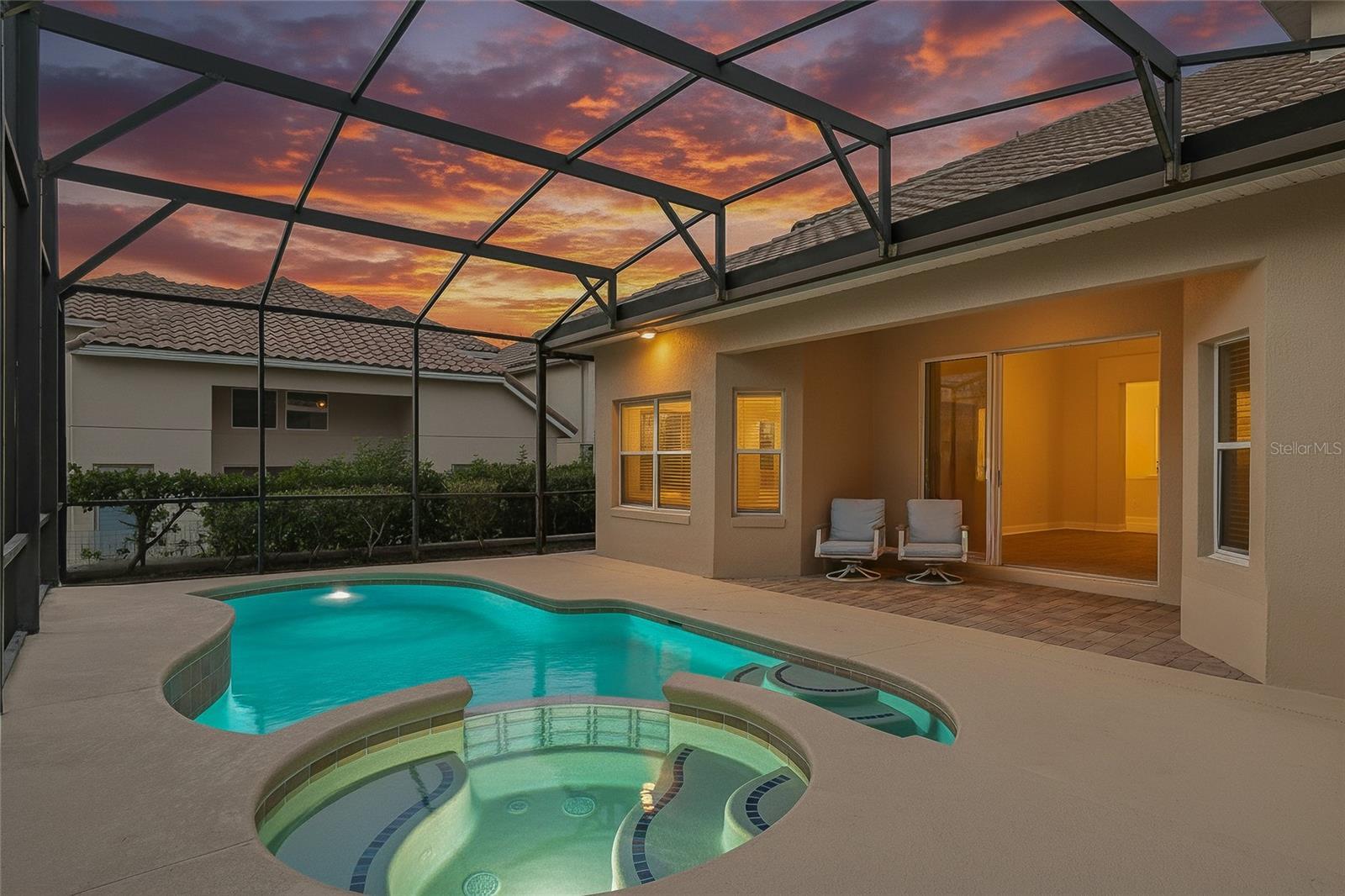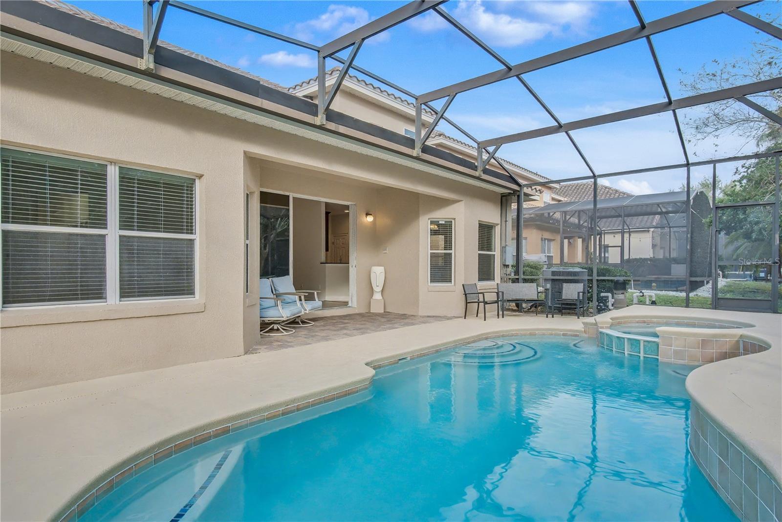 One or more photo(s) has been virtually staged. MOTIVATED SELLER offering $5,000 towards buyer's closing costs. Welcome to this beautifully maintained and freshly painted residence in the highly sought after 24/7 virtual guard gated community of Toscana. Ideally located just minutes from Universal Studios and surrounded by tree-lined canopy streets, this home offers the perfect blend of sophistication, comfort, and convenience in one of Orlando’s most sought-after neighborhoods. Offering a total of 3,353 gross square feet, with 2,960 square feet of refined living space, this home features four bedrooms and two and a half baths, including a spacious master suite on the ground floor. Inside, you’ll find luxury vinyl flooring throughout the main living areas and bedrooms, complemented by timeless tile in select spaces. The living room is enhanced by rich textures and expansive windows that flood the interior with natural light. The open-concept kitchen is designed for both everyday living and effortless entertaining, while a conveniently located half bath completes the main level. Upstairs, three generously sized bedrooms are accompanied by a versatile office or den and a full bathroom, creating a well-balanced layout of private and shared spaces. Step outside to your own private retreat, complete with a newly resurfaced pool and brand-new pump. The fully screened enclosure and expansive deck provide the perfect backdrop for year-round relaxation and gatherings. Every detail reflects lasting quality, from the elegant tile roof to the grand front door and carefully curated finishes throughout. Toscana itself elevates daily living with the security of 24/7 virtual guard gated access, excellent schools, and unmatched convenience to premier dining, shopping, supermarkets, pharmacies, and places of worship for a variety of faiths. For travelers, Orlando International Airport is only 15 miles away, making connections effortless. This is more than a home. It is a lifestyle defined by comfort, community, location and timeless elegance.