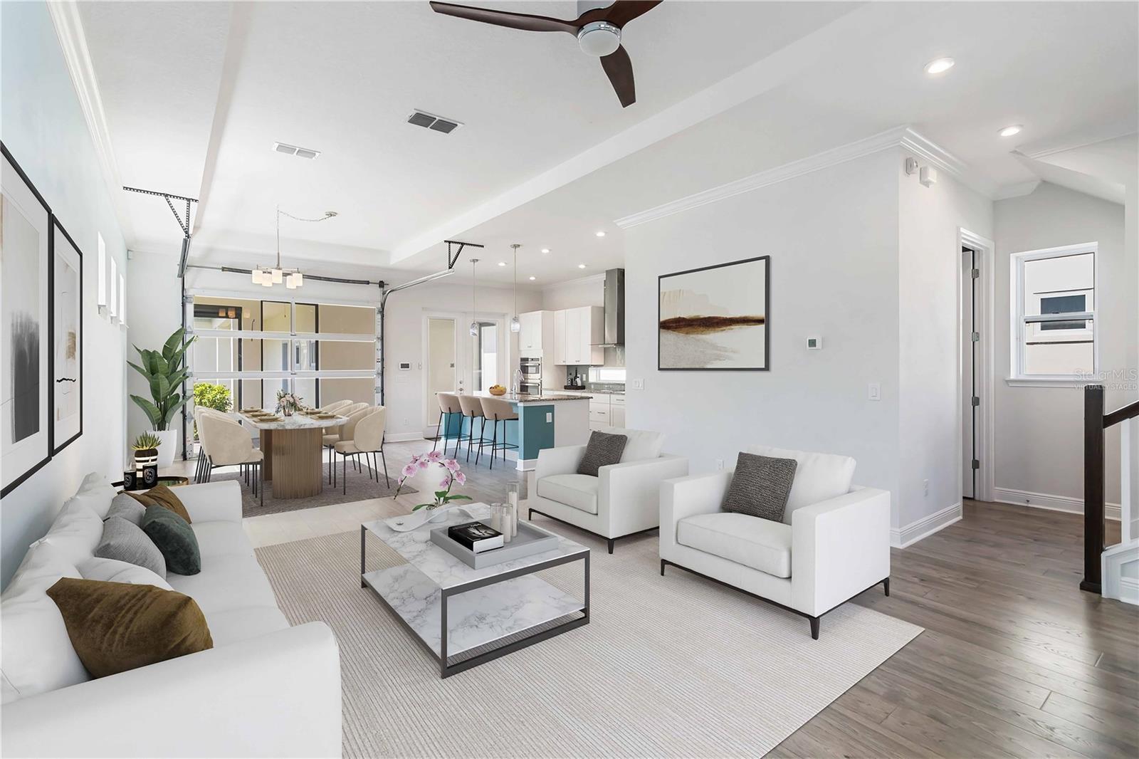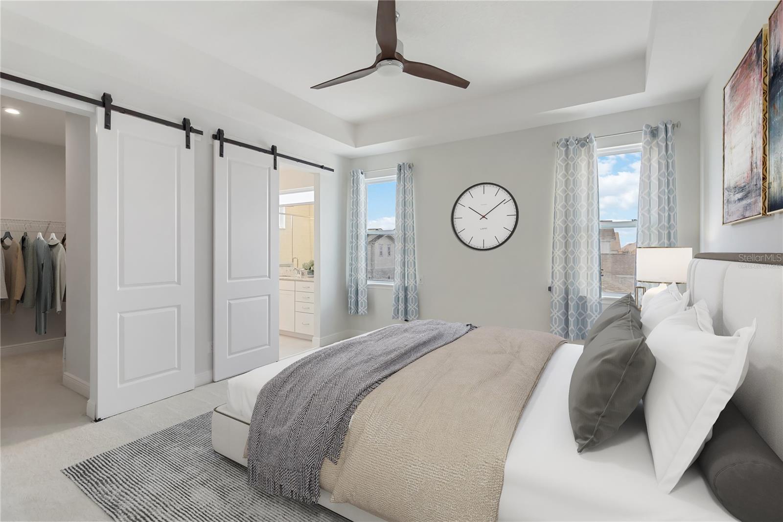 - Ceiling Fans(s), Crown Molding, High Ceilings, Kitchen/Family Room Combo, Living Room/Dining Room Combo, Open Floorplan, PrimaryBedroom Upstairs, Split Bedroom, Stone Counters, Thermostat, Tray Ceiling(s)