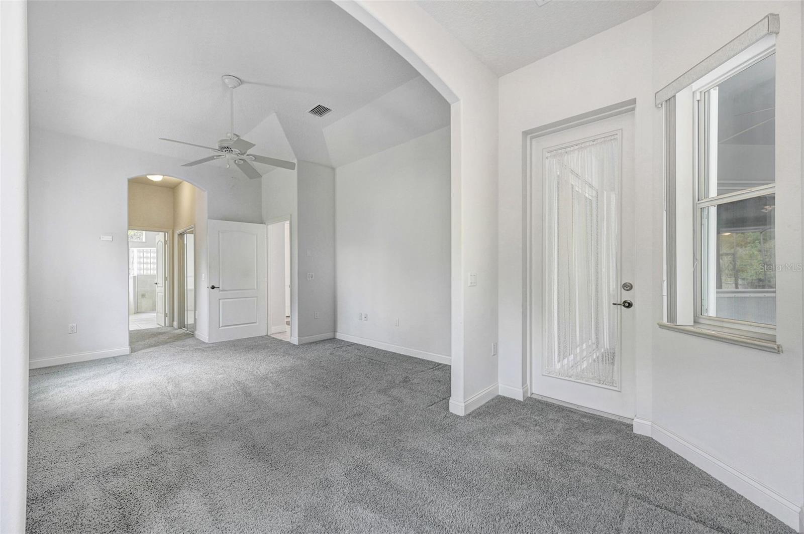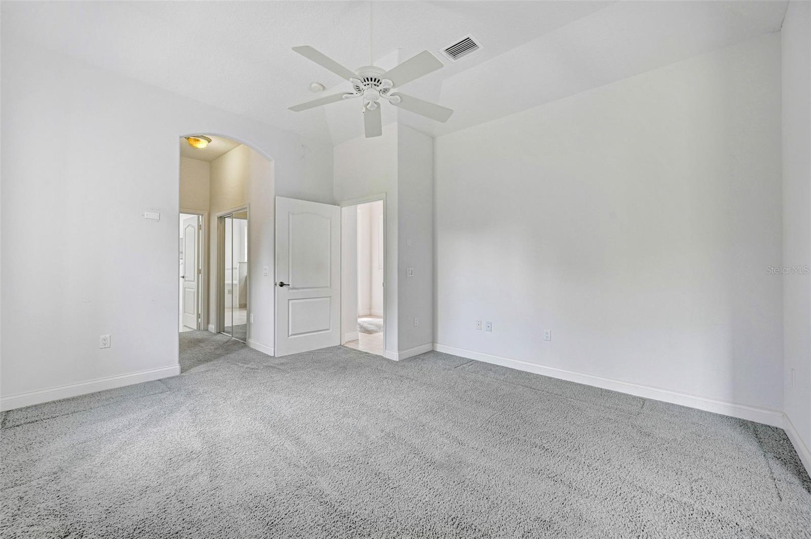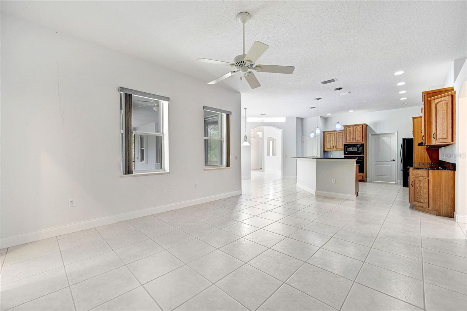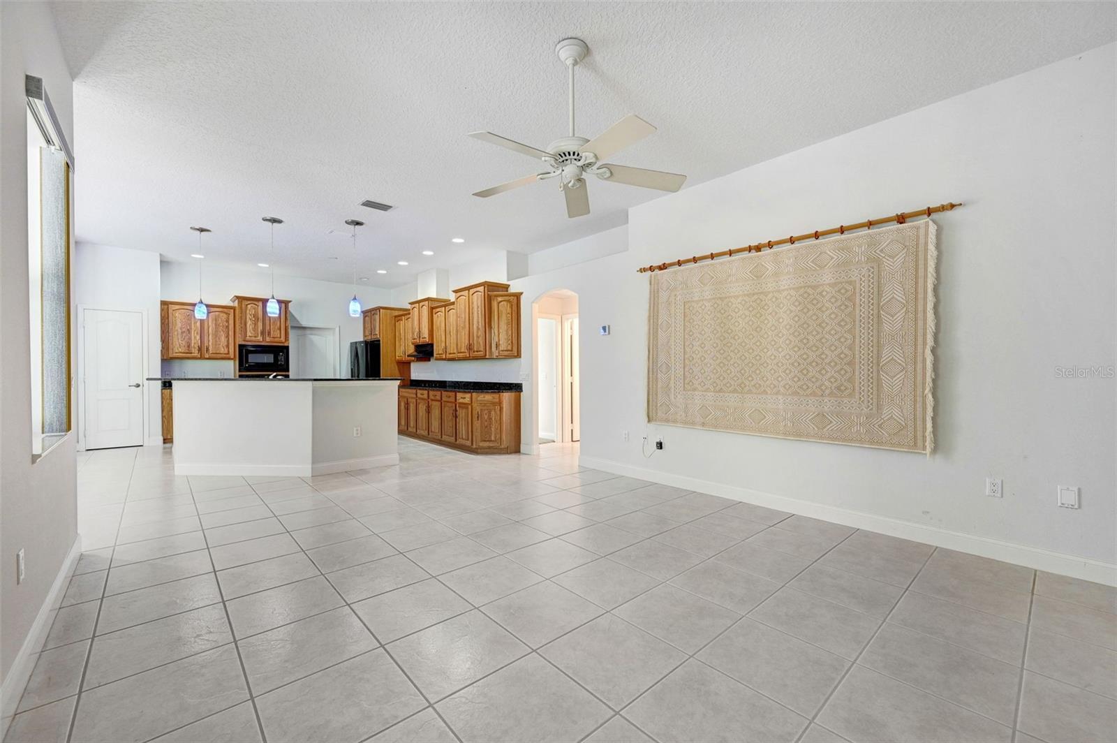 - Ceiling Fans(s), Eat-in Kitchen, High Ceilings, Kitchen/Family Room Combo, Living Room/Dining Room Combo, Open Floorplan, Primary Bedroom Main Floor, Stone Counters, Thermostat, Walk-In Closet(s), Window Treatments