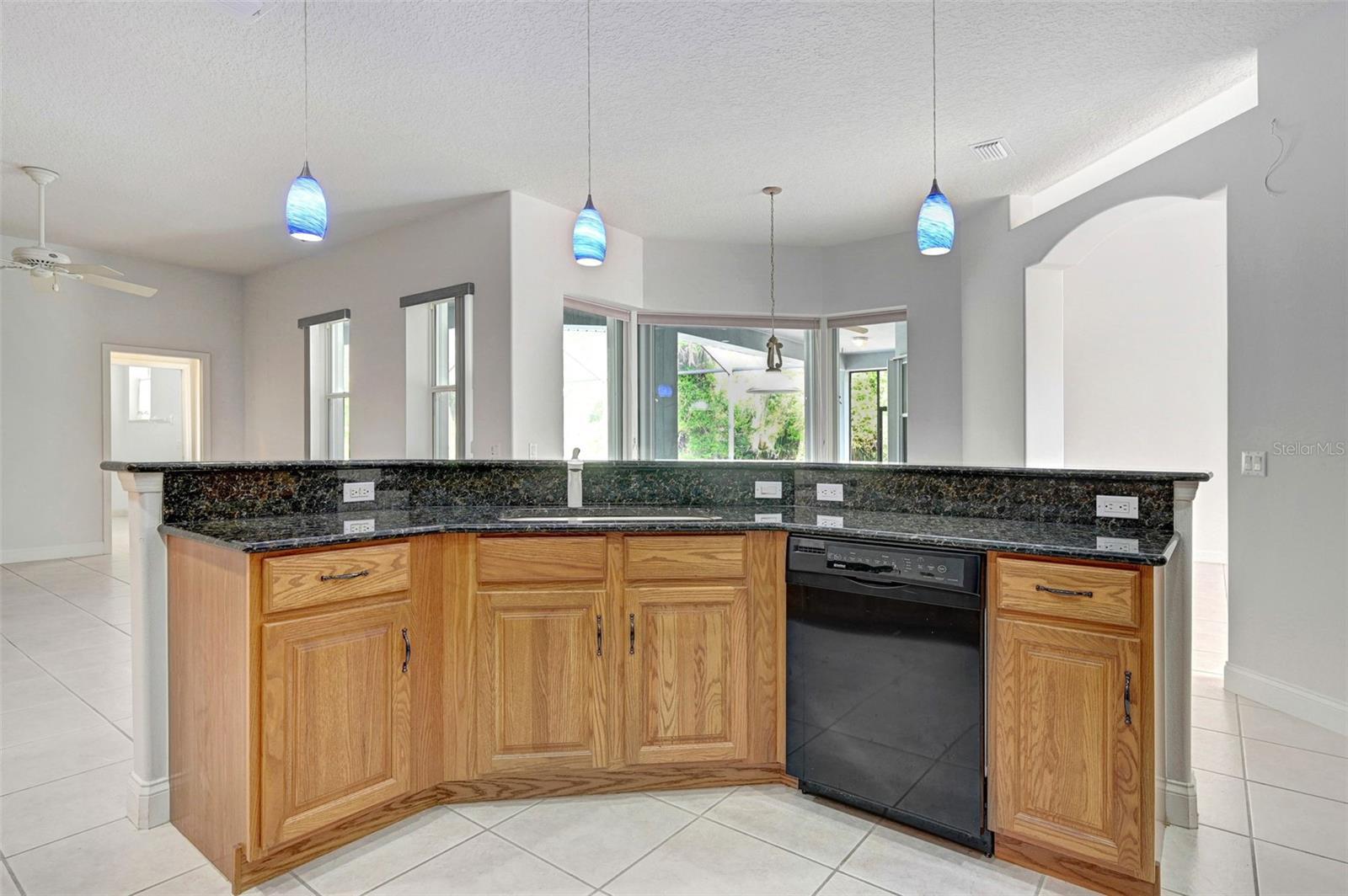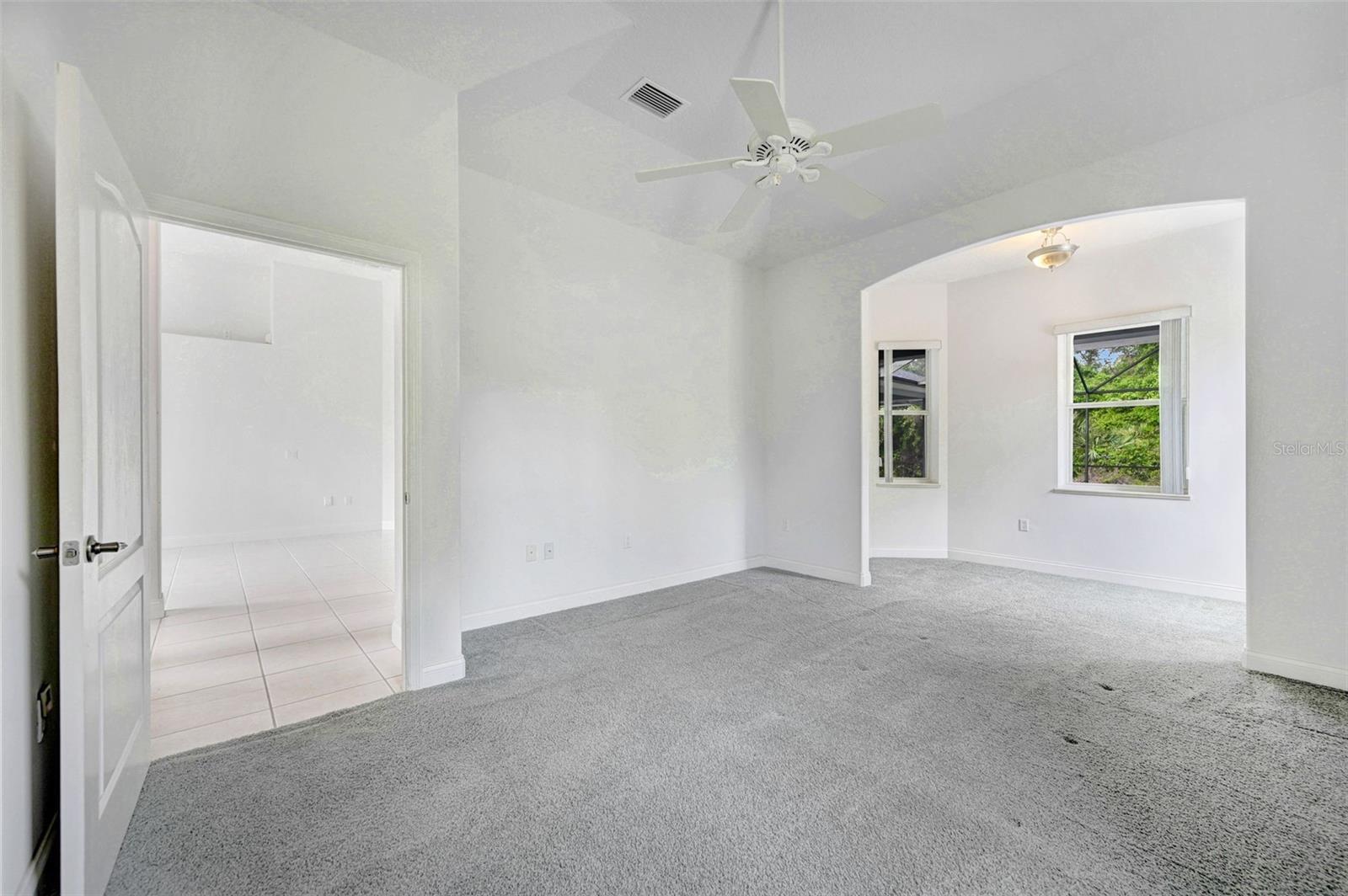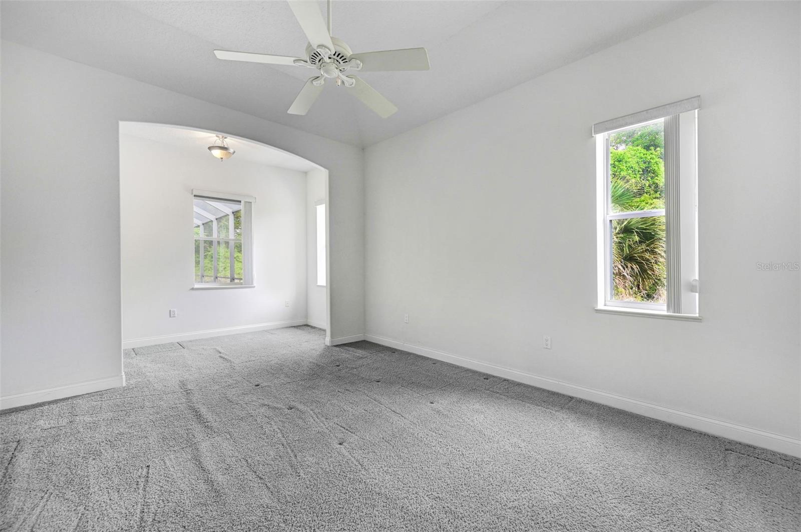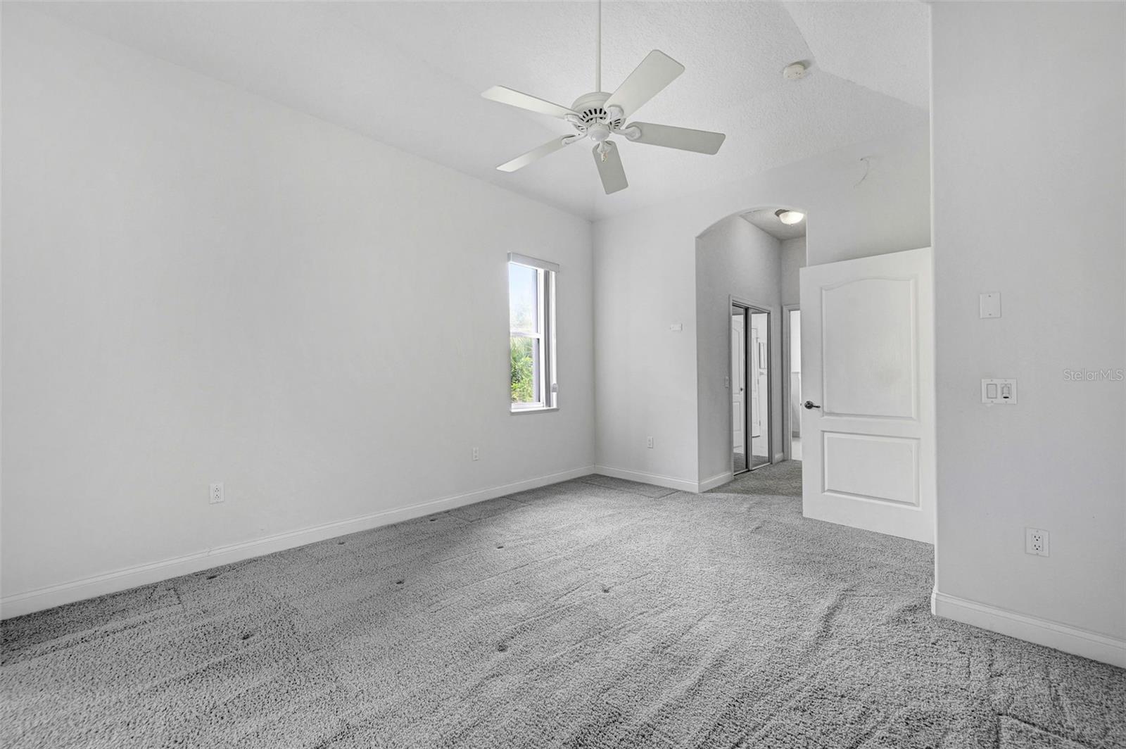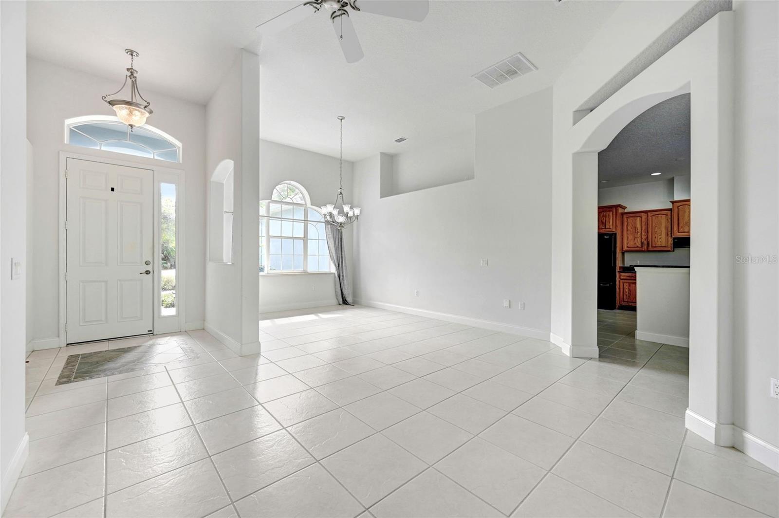 - Ceiling Fans(s), Eat-in Kitchen, High Ceilings, Kitchen/Family Room Combo, Living Room/Dining Room Combo, Open Floorplan, Primary Bedroom Main Floor, Stone Counters, Thermostat, Walk-In Closet(s), Window Treatments