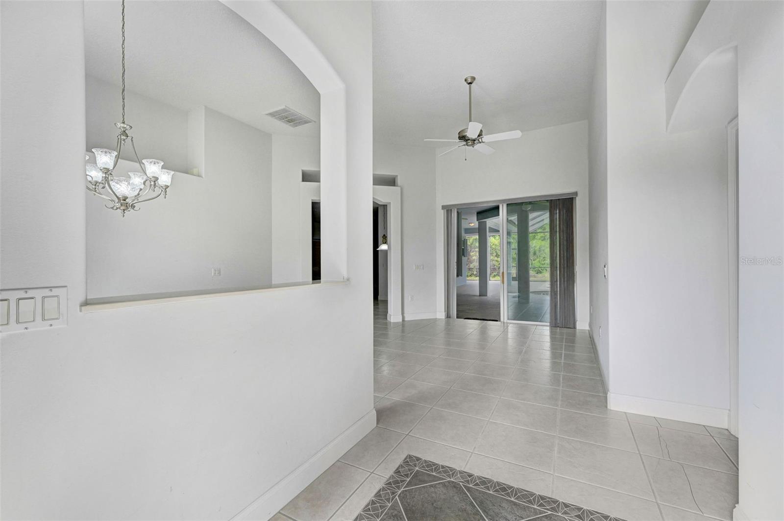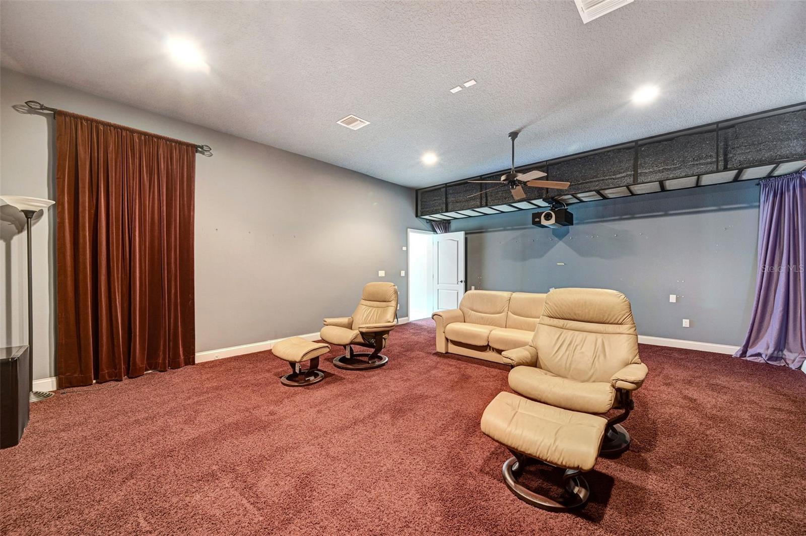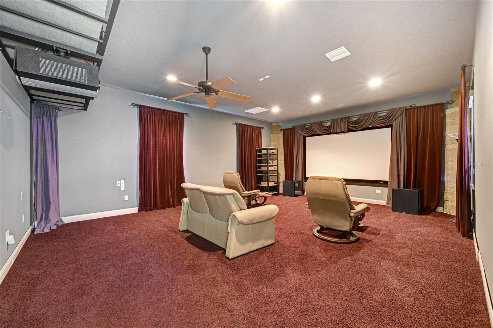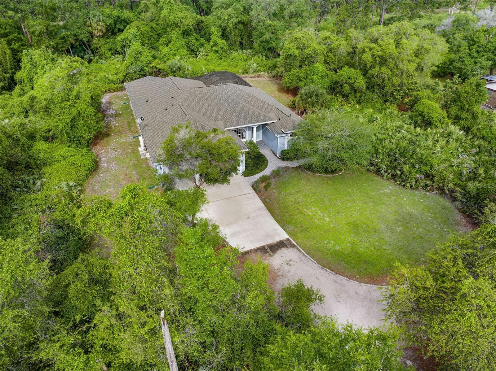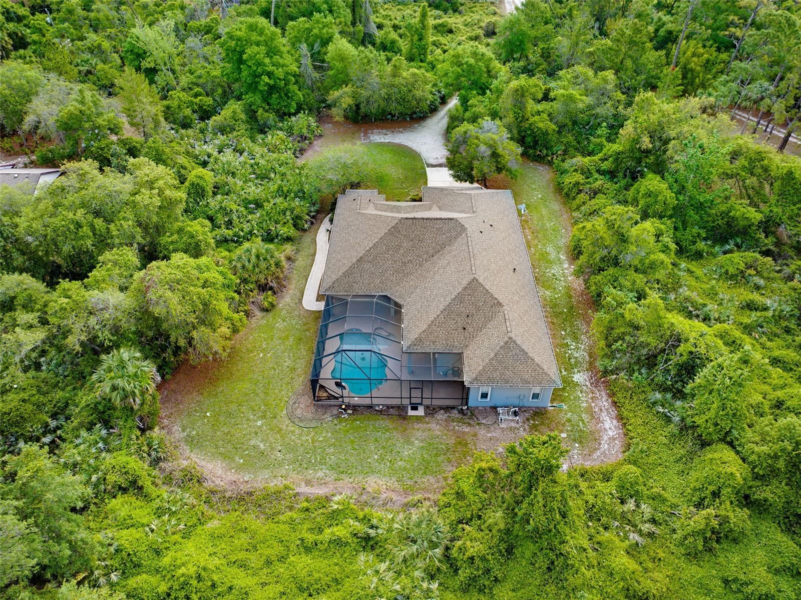"Serenity Now" Custom Pool Home on 1.8 Acres with Theater, Privacy & Room to Expand! Enjoy the perfect blend of privacy, convenience, and thoughtful design in this custom-built home situated on 1.8 serene acres just 1 mile from the 407 for easy access to major highways and close to the Space Center. From the moment you enter, you’ll be greeted by soaring ceilings, tall windows, and wide open spaces that fill the home with natural light. The open-concept layout includes a spacious family room and a chef’s kitchen with granite countertops, a cooktop, built-in oven and microwave, breakfast bar, ample cabinetry, and a pantry. A large laundry room just off the kitchen includes an oversized walk-in pantry for even more storage.The split bedroom layout provides a private primary suite featuring his and her walk-in closets, an ensuite bath with deep soaker tub, separate shower, water closet, and a flex space that opens directly to the screened pool patio making it perfect for a home gym, office, or nursery. A standout feature of this home is the grand theater room, purpose built for an immersive experience with poured concrete walls for soundproofing, extensive conduit wiring beneath the floors for customizable audio configurations, blackout drapes, theater lighting, and a built-in projector and screen. This space can also be easily converted into a separate guest suite or in-law quarters, thanks to a full bathroom with private access to the pool area and the ability to close it off from the rest of the home. Enjoy peace of mind with accordion hurricane shutters and a brand new roof. Whether you're hosting, relaxing, or working from home, this property offers unmatched flexibility and comfort. Don’t miss your chance to experience “Serenity Now” This is one you truly have to see to believe!