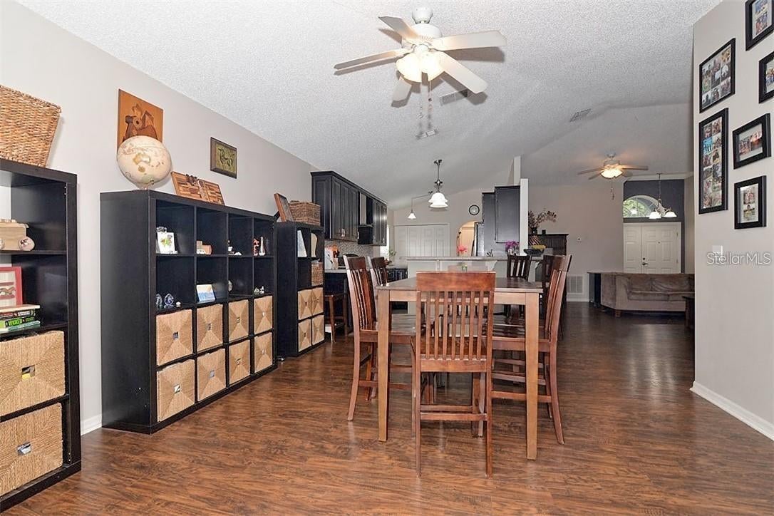 - Cathedral Ceiling(s), Ceiling Fans(s), Eat-in Kitchen, High Ceilings, Living Room/Dining Room Combo, Open Floorplan, Thermostat