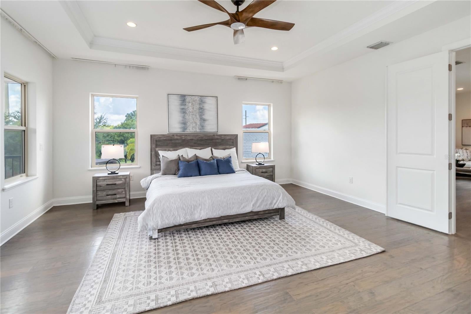 Under contract-accepting backup offers. Royal Cypress Preserve, a luxury community situated just beyond the magic of Walt Disney World in Orlando, is the perfect intersection of serenity and luxury. This exquisite modern-style Toll Brothers home is located just minutes from the famed Restaurant Row, Walt Disney World, and Universal Studios. Nestled behind the gates of Royal Cypress Preserve sits this upgraded pool home, featuring one of the largest lots in the community, with preserve & Disney Fireworks views, a gourmet kitchen perfect for entertaining, a picturesque rose garden and backyard, and several designer upgrades throughout. This home features 5 bedrooms and 5 bathrooms, including dual owner's suites —one on the first floor and one on the second. Upon entry, you will be immersed in natural light from the two-story entry. There is a dedicated office and an open loft area with limitless options. You can sit from the second floor owners' suite on the private balcony or on the patio of the outdoor oasis with a screened-in pool and summer kitchen, and enjoy the nightly Walt Disney World firework show. This home sits on an impressive lot with a sizable pool and an abundance of green space, a basketball hoop that conveys, surrounded by no rear neighbors. In need of a change of scenery? Take a short stroll over the private community dock overlooking South Lake and take in the beautiful water views from there. Looking for a more active repass? Take advantage of the fitness center or the skiable waters with a boat, jet skis, kayak, or paddleboard. Experience resort-style living at Royal Cypress Preserve, a private 24-hour guard-gated enclave of only 206 homes that features a resort-style clubhouse with a zero-entry sparkling pool and fitness center overlooking the pristine 124-acre South Lake with landscape maintenance included in the HOA. Enjoy life, luxury, and limitless possibilities by making this home yours today!