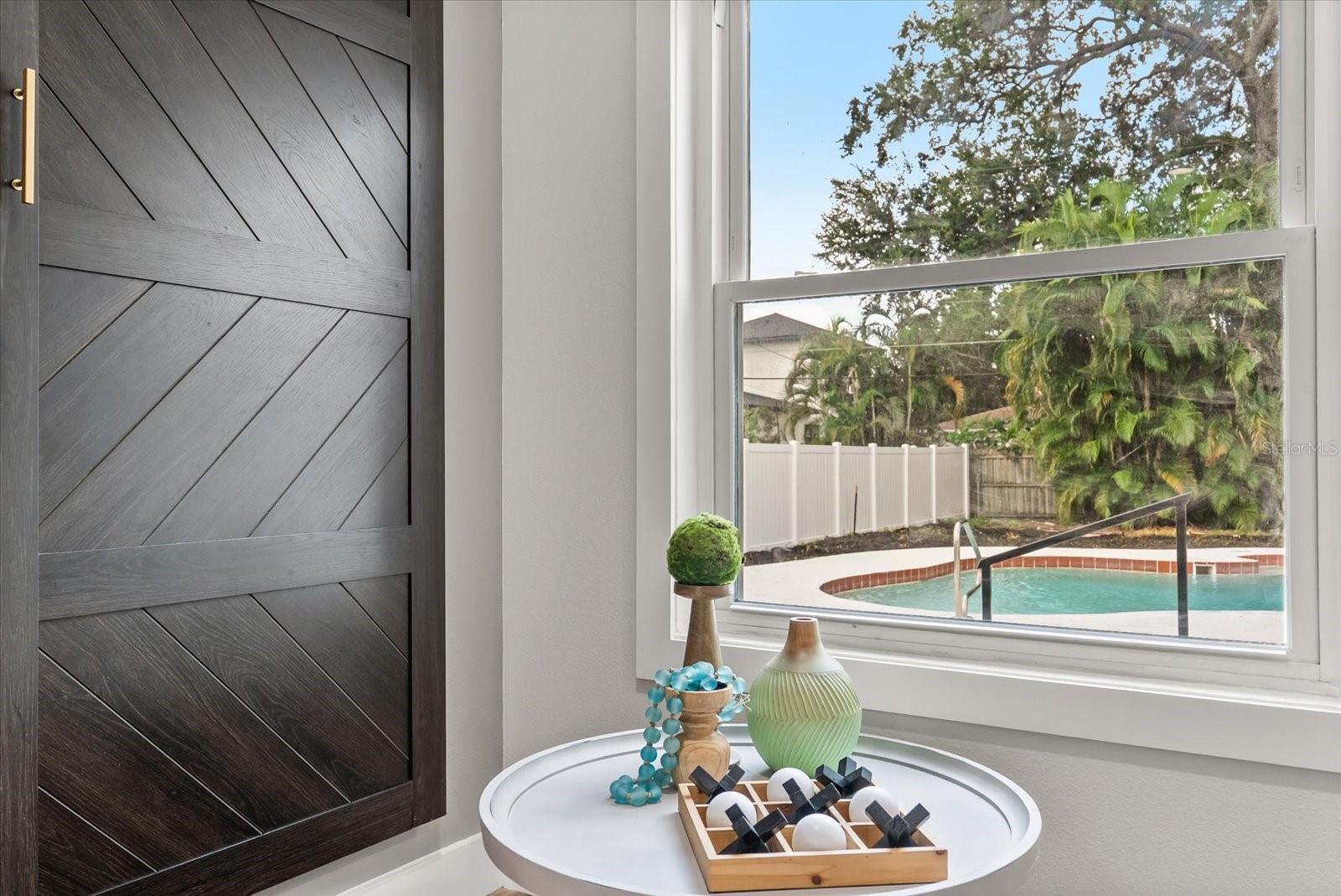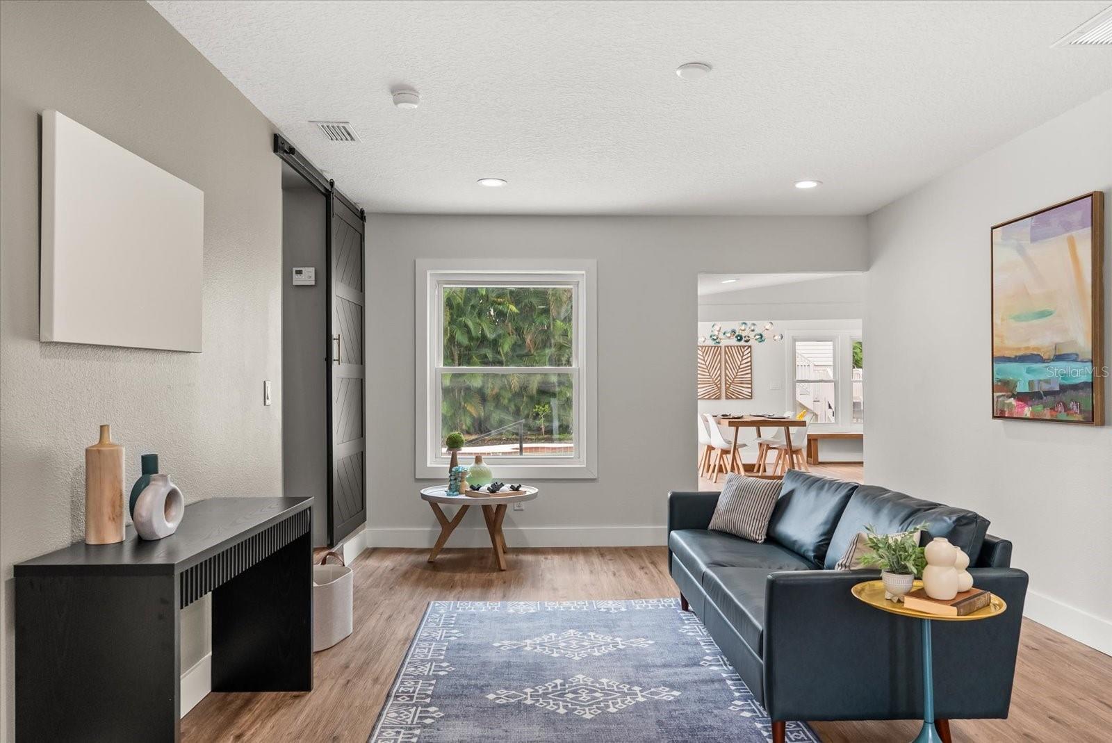 Looking for that unique charm of College Park? Come see the character of this home with advantages of a new build. New roof, HVAC, all new plumbing inside/out, new electrical throughout, quality LVP flooring, new gas lines, with most walls taken down to the studs, so rest assured this is move-in ready. Let’s talk about the exciting look inside: featuring three new full baths with custom tile, drains, rain shower, wood vanities; a large master suite with second master option upstairs that can also be a workout room, office, or kids room. A handy newly added laundry room, and another bedroom with access to the large, deep “old-Florida” style pool give a great indoor/outdoor feel. The modern kitchen boasts of the latest thin shaker kitchen cabinetry, new-to-the-market kitchen appliances and french doors which open to a large entertainment area that can become your backyard oasis with space to add entertainment like lounge areas for family and guests. The additional ADU/garage in the back offers extra storage, another bedroom option, or an art studio, or workout room, or teen hangout. Please see attachments for architectural plans that have been purchased to make that building a fun family room opening with sliding doors to the outdoors, kitchen, two bathrooms, and new spiral stairs, also giving it income potential. This large property offers a few nods to the original featuring beamwork and a stain-glass window, but with all the upgrades of a modern-open-concept design. The neighborhood offers great walks with furry friends, only a block away from the beautiful Dartmouth Park near dining and shops! Check out the virtual tour and then book a showing to take it all in.