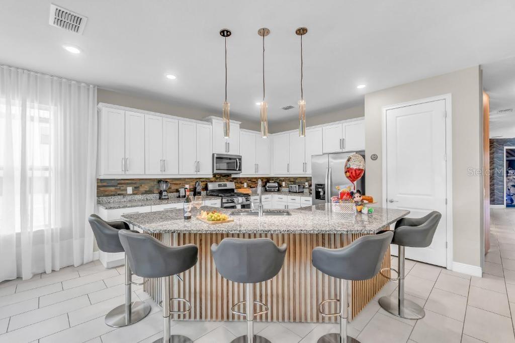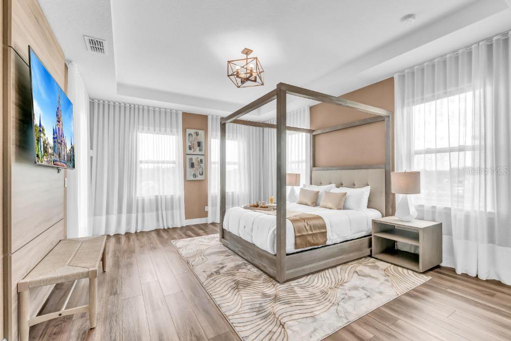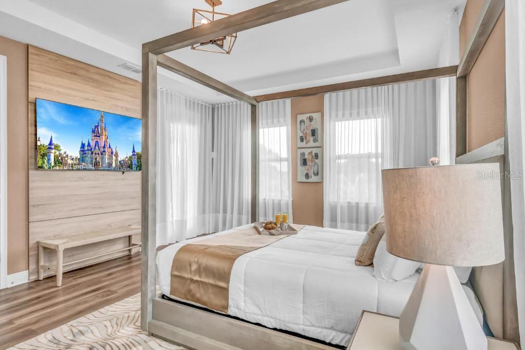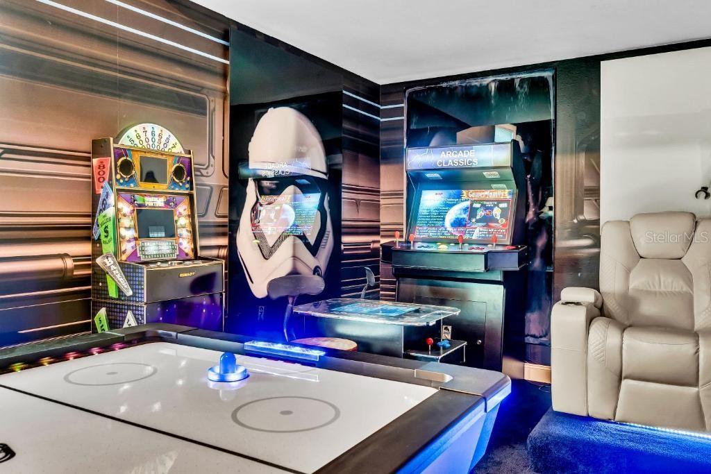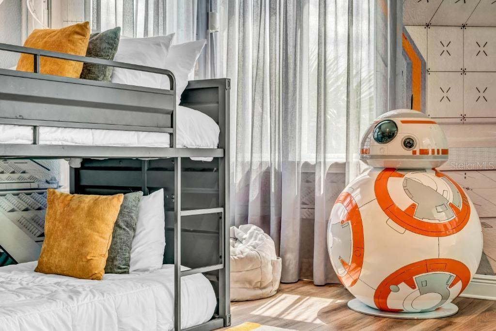 Experience luxury living in the world-renowned Reunion Resort with this stunning 6-bedroom, 5.5-bathroom home offering 3,428 sq. ft. of fully furnished space. Built in 2021, this property combines modern design with exceptional comfort, making it an ideal primary residence, second home, or investment property. Inside, you’ll find a beautifully designed kitchen featuring stainless steel appliances and a coffee bar with an under-counter fridge. The converted garage adds 395 sq. ft. of fun, transformed into a Star Wars–themed game room. The home boasts two primary suites—one on the first floor with a walk-in closet and spa-like en-suite bath, and another upstairs with a private balcony, soaking tub, and walk-in shower. Additional themed bedrooms with en-suites and bunk beds provide the perfect retreat for guests. Step outside to a covered lanai designed for entertainment, complete with an outdoor dining area, wet bar, and under-counter fridge—all just minutes from Orlando’s world-famous attractions.