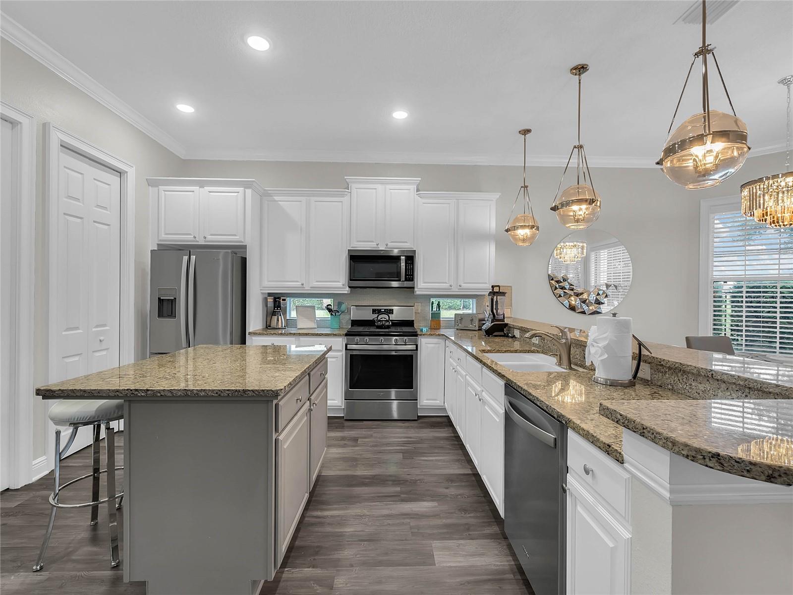 - Living Room/Dining Room Combo, Stone Counters, Window Treatments