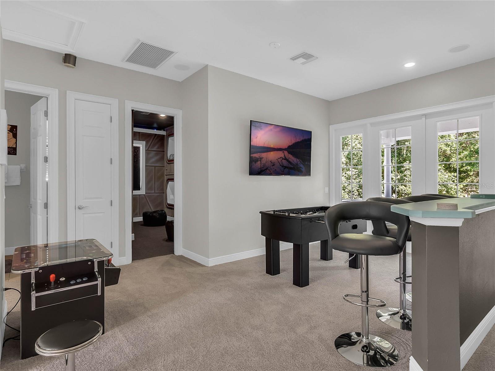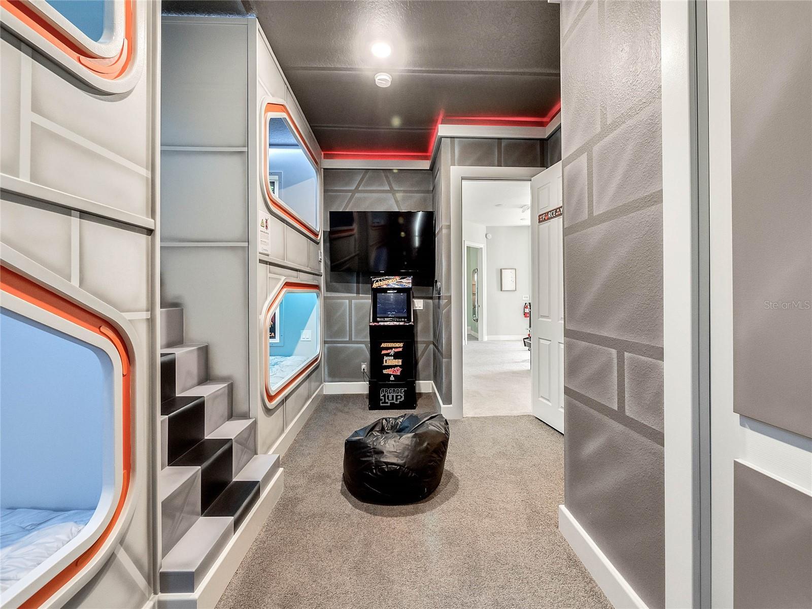 Phenomenal TURN -KEY opportunity located in the Homestead Subdivision on Reunion’s East Side. Nestled up the INDEPENDENCE GOLF COURSE with a great view, this home is a PROVEN Rental Winner. It comes FULLY FURNISHED with a TRANSFERRABLE MEMBERSHIP. As you walk into this home you are greeted by natural light and an open concept layout. Your living space is simply perfect for the family vacation with an open floor plan, allowing the entire family to cook, dine and hang out. You will love the massive kitchen with beautiful granite countertops. Experience the magic in the evenings and watch a movie with the 75-Inch, 4K TV. Enjoy the comfy sectionals that seat 8 and beautiful dining area that comfortably seats 10. The home also offers SONOS sound system inside and out. Escape everyday life and make magical memories in this spectacular 4,192 Sq. Ft, 5 bed, 4.5 bath home. No expense has been spared with this designed for fun, family vacation rental and has proven numbers to be a great Rental Income driven home. The arcade room features 2 Superbikes 2, Skeeball, Multi-Arcade, basketball arcade, and 5 arcades, Pac Man, Asteroids, Street Fighter, Centerpede & Rampage, a 120-Inch theater screen connected to upgraded cable, an Apple TV 2 with theater seating and karaoke set-up. It also features Custom built full-size bunk beds and a Car Pool table, a New York theme scape with working lights . This home is truly magical with beautiful interior furnishings and custom themed rooms for the entire family. Looking to experience that dream vacation only a few miles away from Walt Disney World® Resort? Well look no further as this home is simply perfect for you and your family. Step out onto your private lanai, grill up a great lunch with the BBQ and enjoy your meal at your outdoor patio table that seats 8. Relax in the large pool and spa and take in the Florida sun on any of the 6 sun loungers. There is a pool alarm as well as an optional pool fence and self-closing gate for your peace of mind if traveling with little ones. For your convenience, you will find an outdoor poolside bathroom and shower. For fun, you will also find pool basketball, giant Jenga and 4-in-a row game. Want to play?? Enter the game room, boasting 2 Superbikes 2, skeeball, 5 other arcades, and a basketball arcade. Want the kids to watch their own movie or play on a PS4 or Xbox One? Then they can do so in the game room with a 150-screen, upgraded cable, Apple TV 2 and theater seating for 8 and bar seating for 4. There is also a karaoke set-up for fun-filled evenings. The ground floor Master bedroom has a King-size bed. Upstairs there is an open den which has a bar and cocktail table multi-arcade. There is also access onto the rear balcony. On the large rear balcony, you will find great views as well as lounge seating for 4. Come see this fantastic opportunity to own a piece of Reunion!