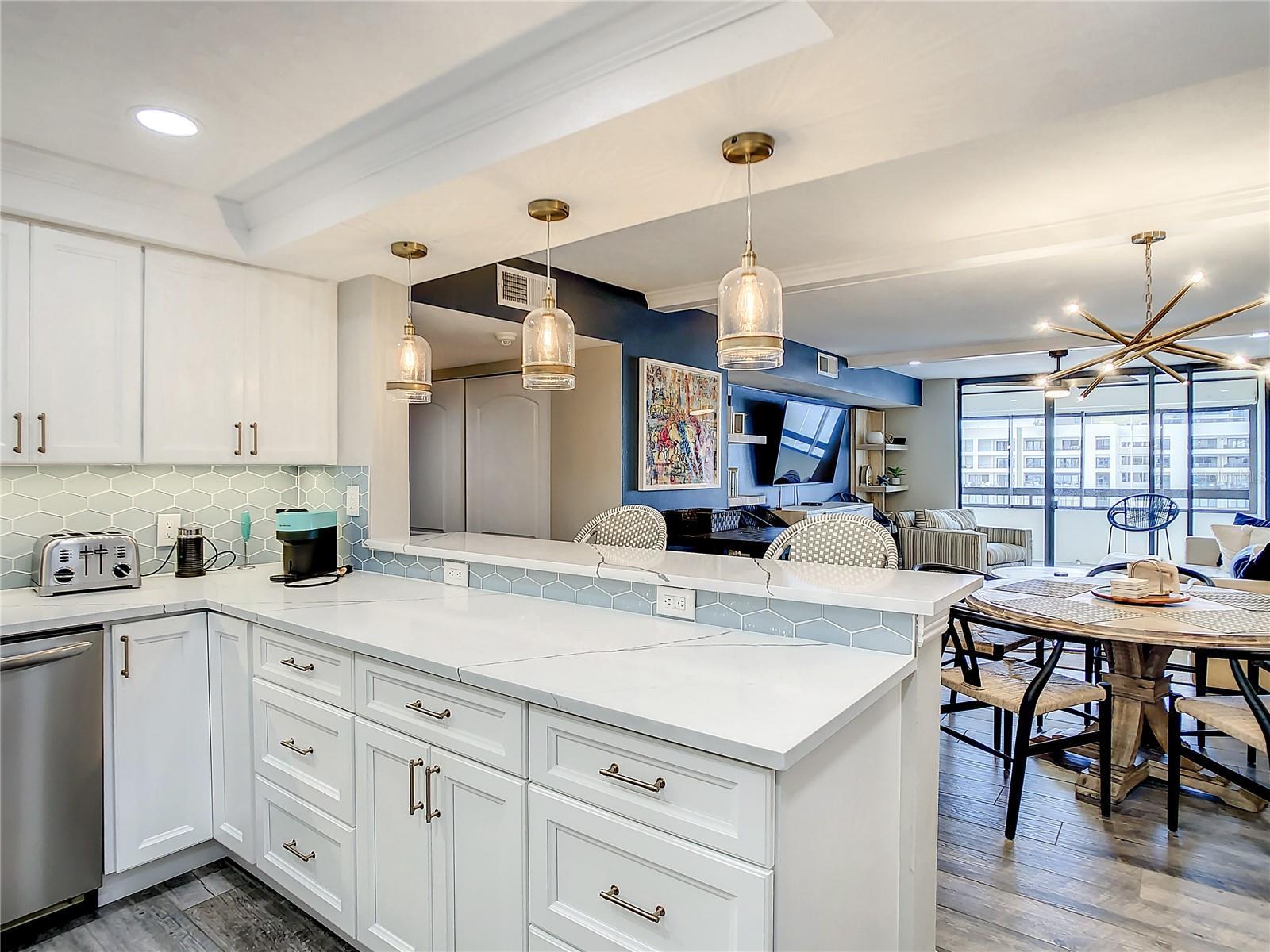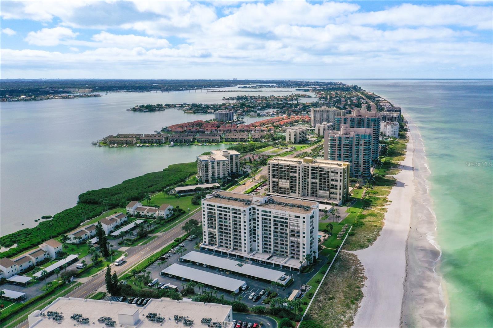 BREATHTAKING PANORAMIC WATER VIEWS FROM THIS 11TH FLOOR NEWLY REMODELED 2 BEDROOMS, 2 FULL BATHROOMS FURNISHED BEACH PARADISE WITH VIEWS OF THE GULF OF MEXICO AND THE INTRACOASTAL WATERWAY. THIS UPDATED CONDO HAS WOOD LOOKING TILE FLOORS THROUGHOUT WITH QUARTS COUNTER TOPS, WHITE KITCHEN CABINETRY, AND BRAND NEW STAINLESS STEEL APPLIANCES. THE MASTER BEDROOM HAS A KING SIZE BED AND MASTER BATH ENSUITE WITH WALKTHROUGH CLOSET. THE GUEST BEDROOM HAS A QUEEN SIZE BED WITH AN ADDITIONAL FULL SIZE BED UNDERNEATH. THE WASHER & DRYER ARE INSIDE THE UNIT AND ALSO NEW. COVERED CARPORT IS AVAILABLE, AND THERE IS PLENTY OF GUEST PARKING AROUND THE PERIMETER OF THE PROPERTY. SOUTH BEACH IS A PRIVATE GATED OCEAN FRONT COMMUNITY DIRECTLY ON THE POWDERY SAND OF CLEARWATER BEACH WITH A CLUB HOUSE AND A THERMALLY HEATED POOL, ALLOWING YEAR ROUND SWIMMING ENJOYMENT. THE CONVENIENT BEACH TROLLEY JUST STEPS OUTSIDE THE GATE WILL TAKE YOU TO TOP RATED RESTAURANTS, SHOPPING AND ENTERTAINMENT. THE TAMPA INTERNATIONAL AIRPORT AND CLEARWATER AIRPORT ARE ONLY 20 MINUTES AWAY. TAMPA AND ST. PETERSBURG ARE IN CLOSE PROXIMITY GUARANTEEING YOU WILL ALWAYS HAVE SOMETHING FUN & INTERESTING TO DO. COME SEE WHY CLEARWATER BEACH IS RATED #1 BEACH IN THE USA.