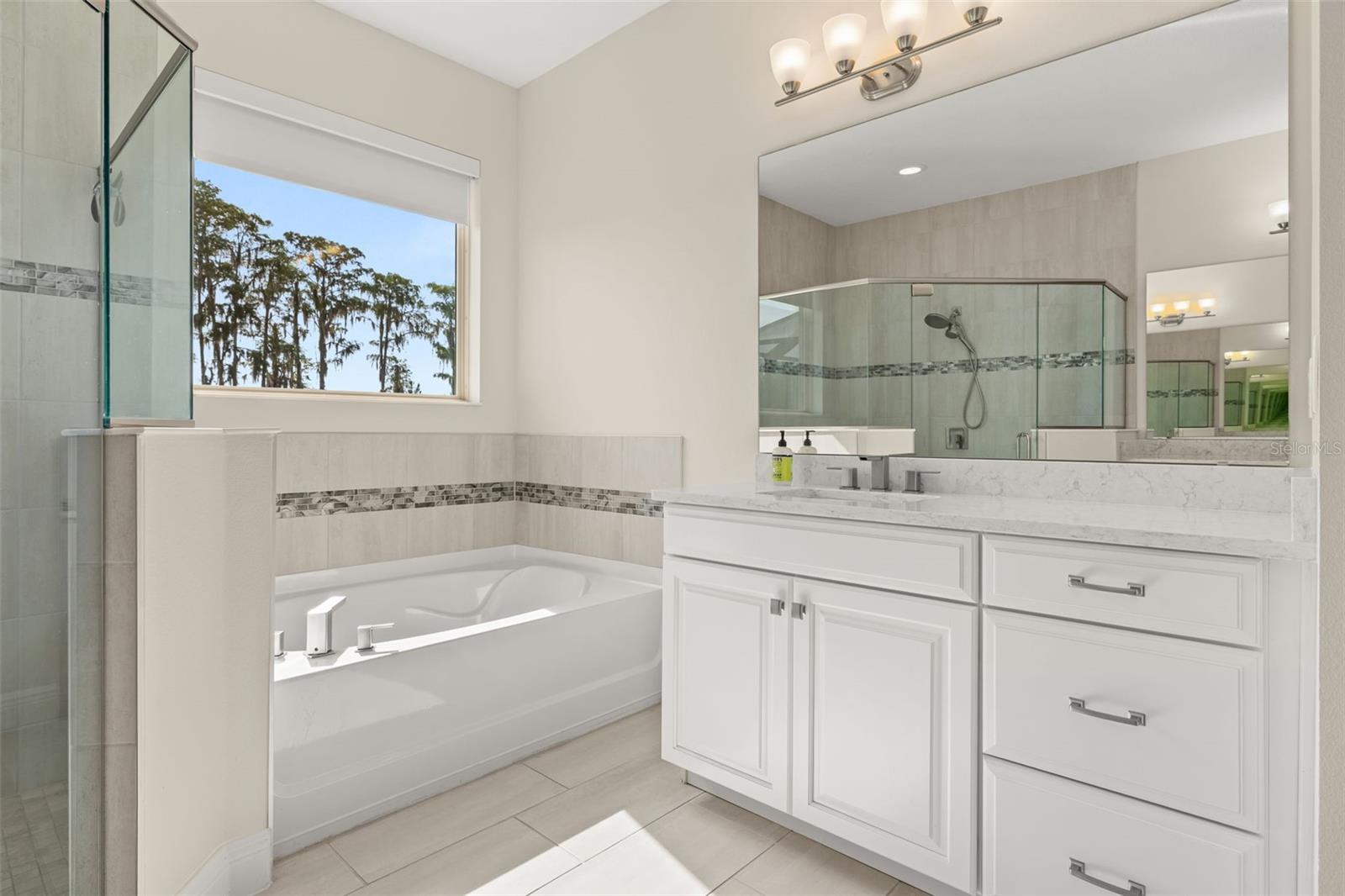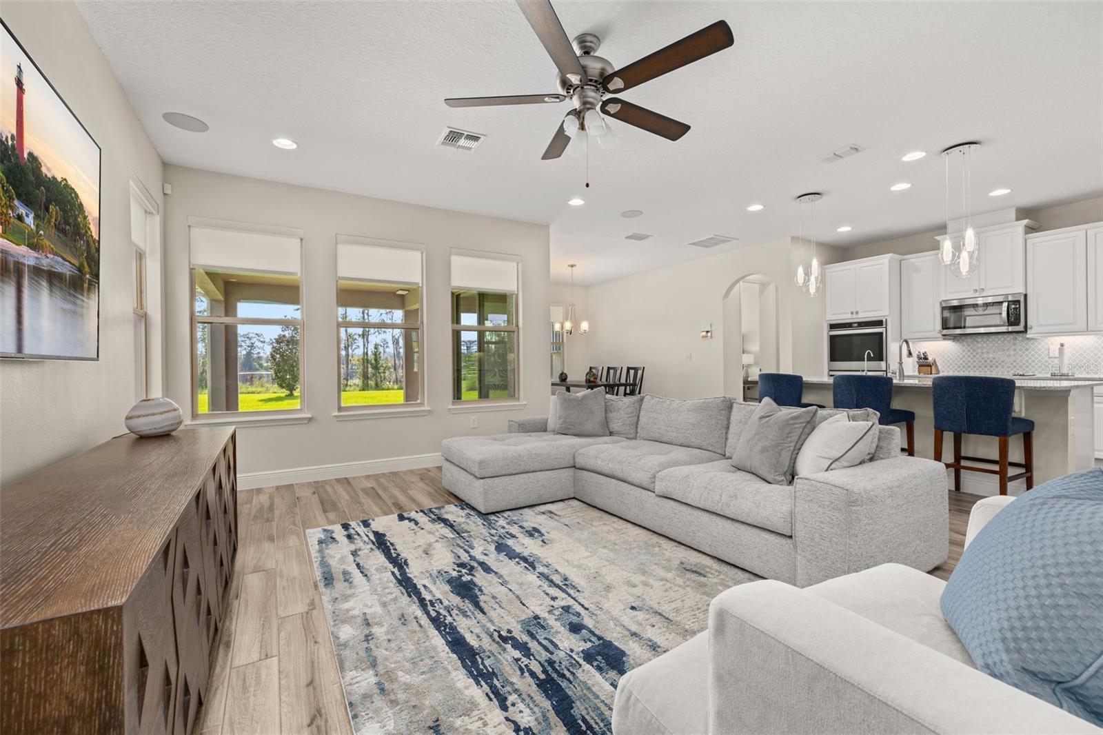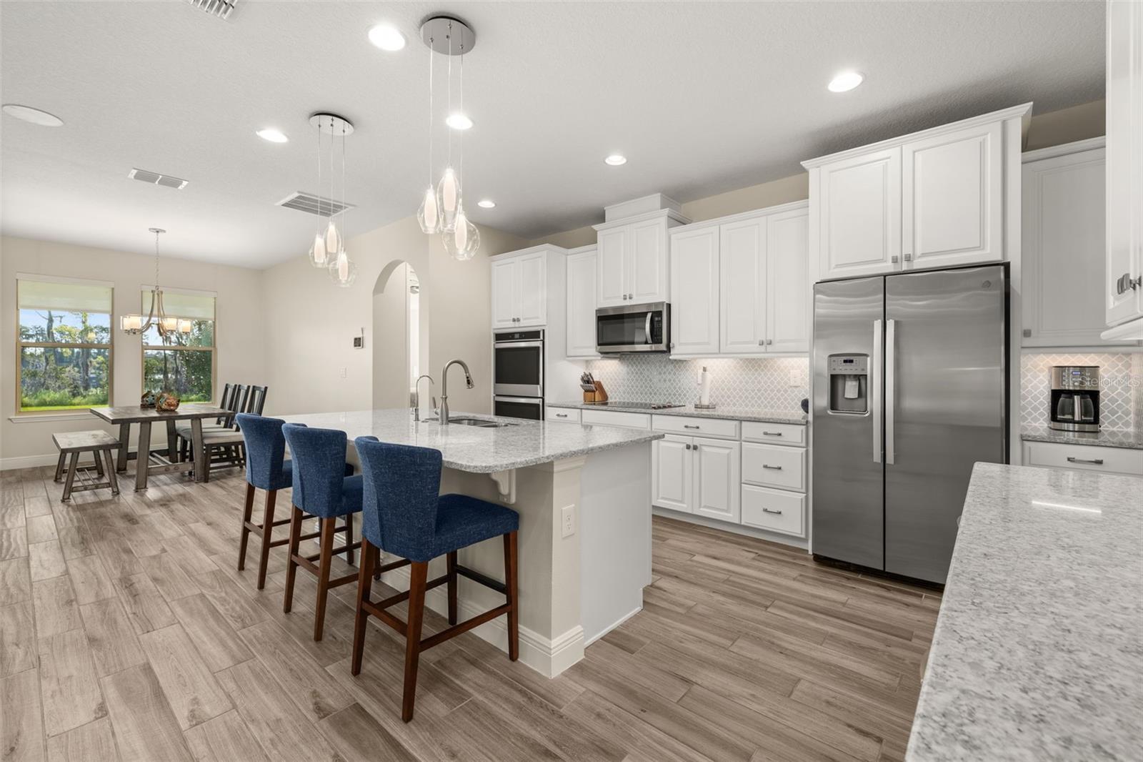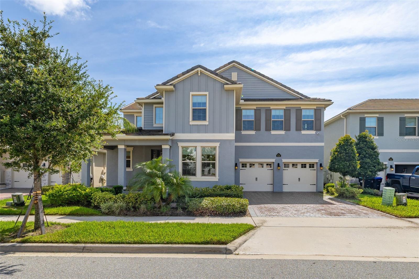 The lakefront life of grandeur awaits you in this stunningly enhanced North Haven model by DR Horton's luxury line, Emerald Homes! Structural enhancements are plentiful and include a Control4 Smart Home Automation System, custom designed closets in nearly every closet throughout the home, security system, technology operated window treatment, entire home water softener, reverse osmosis kitchen faucet, recessed lighting, tile roof for added longevity, and more! Admire the curb appeal as you walk up to your covered front porch by way of the sealed brick paver sidewalk amidst luscious landscaping maintained entirely by the HOA. Relish in the wood plank tile that floor most of the downstairs for a highly desirable look as well as ease of maintenance. To the right of the entrance is a flex space (named the formal dining room by the builder) ready for you to make of it what you want. Continue into the main living space and soak in all of the lake views through the many windows on the back of the home. The gourmet kitchen is also in this open concept space for taking in the lake views, and it is truly a home chef's dream being lined with tons of cabinetry and countertop space. The dining space is right off the kitchen overlooking those beautiful lake views. The primary suite is tucked away privately in the back of the home downstairs and contains even more opportunities for lake viewing. A tray ceiling and custom designed closet make this space even more admirable. The en suite showcases a split dual vanity, massive walk-in shower, and a garden tub that all overlook the lake. Head upstairs via an upgrade staircase lined with wrought iron spindles and luxury vinyl flooring. The loft greets you with endless opportunities of how to customize this space for your enjoyment. A ceiling-mounted projector and theater screen are included with the sale. More windows allow in natural lighting as well as the views of the lake. A Jack-and-Jill bathroom connect bedrooms 2 and 3, and both rooms feature custom designed closets. Bedrooms 4 and 5 are also upstairs and adorned with custom designed closets, and their bathroom is outside of the bedrooms and houses a dual vanity with separate water closet. Head out back where your gargantuan backyard extends from the house to the edge of the waters of Lake Ihrig. Relish in the fact that the HOA maintains this entire extended backyard so you have even more time to enjoy this outdoor space that is extremely rare in Horizon West. The tandem 3-car garage efficiently utilizes every opportunity for space. Situated in the back of the community, you truly get the best of both worlds by enjoying the peace and quiet yet also being a short walk away from the vast amount of amenities, A-rated schools, and the shopping plaza. Waterleigh is building out its final phase, and the Emerald Series is no longer offered making this an even more unique and special opportunity. Inquire today on how to make this gem your own!