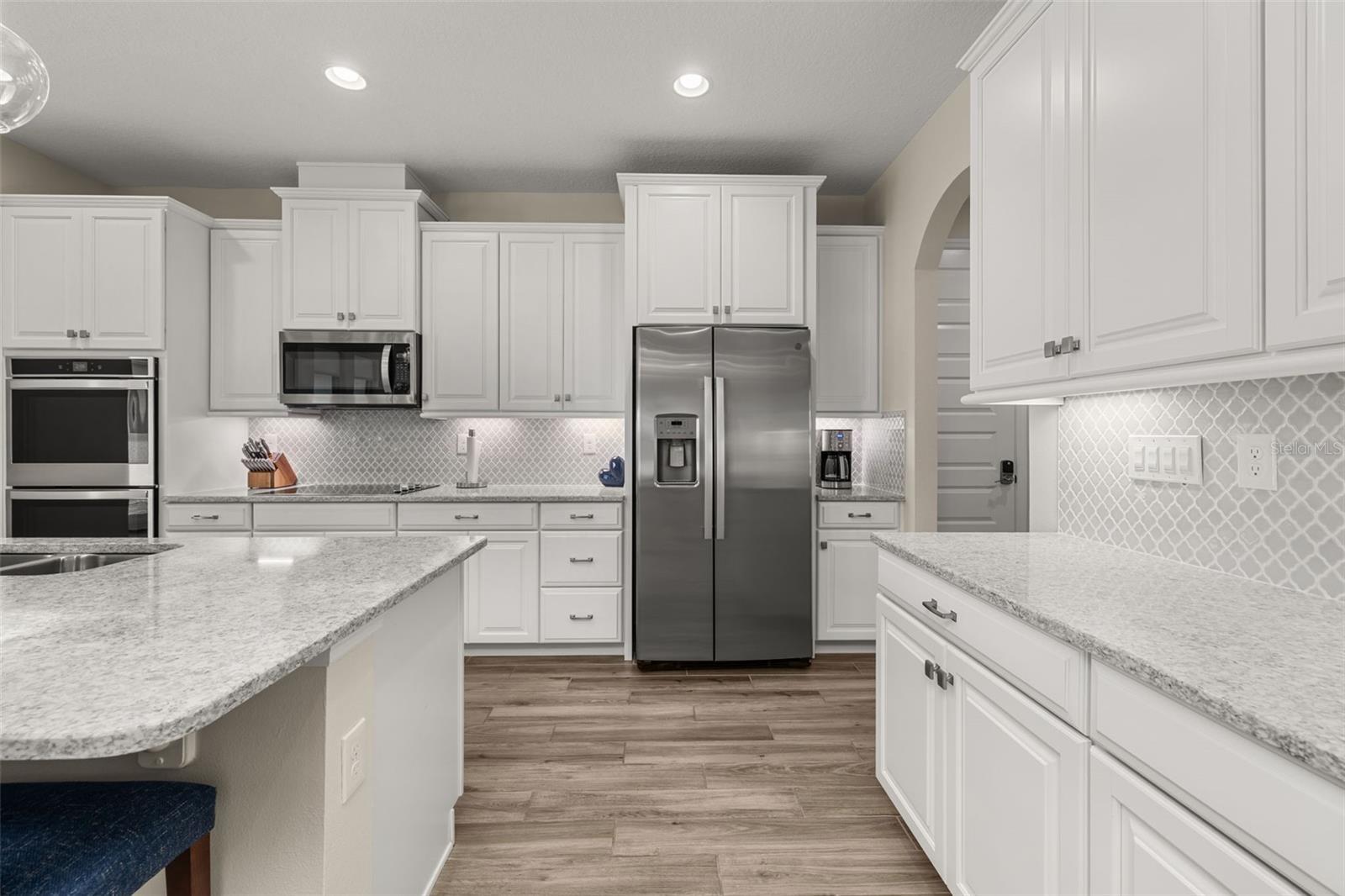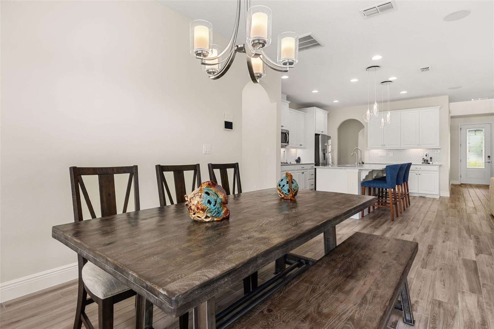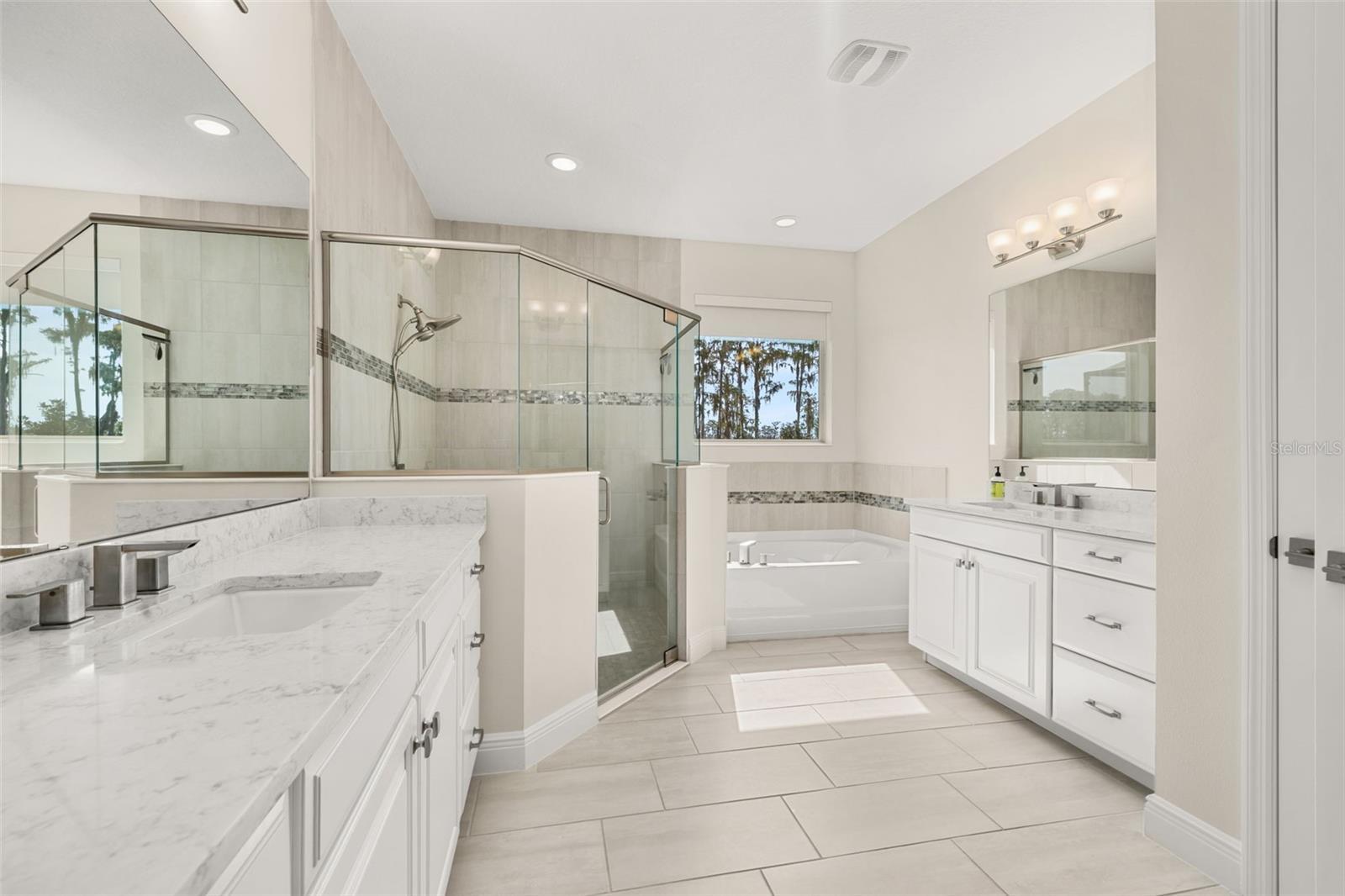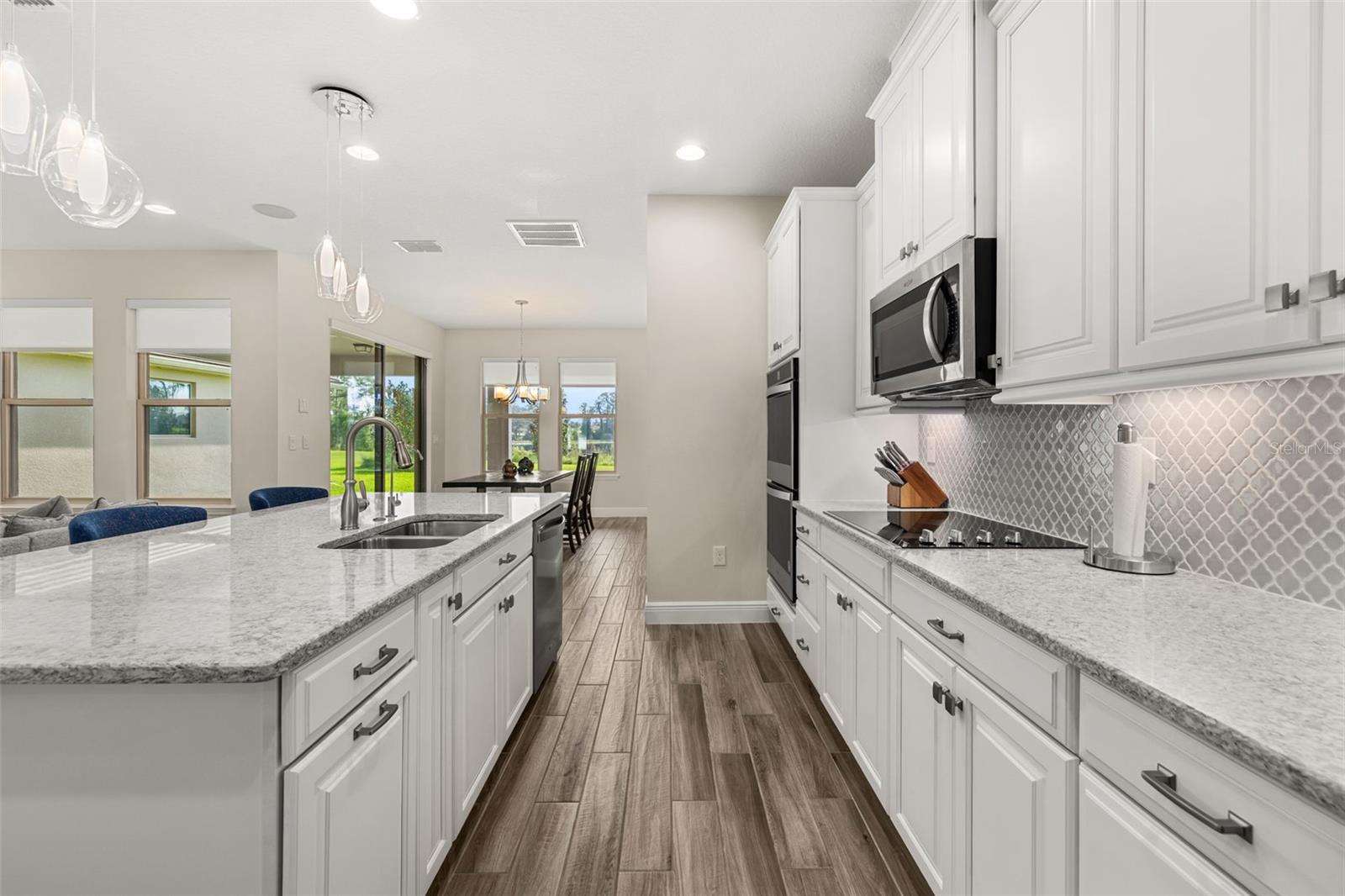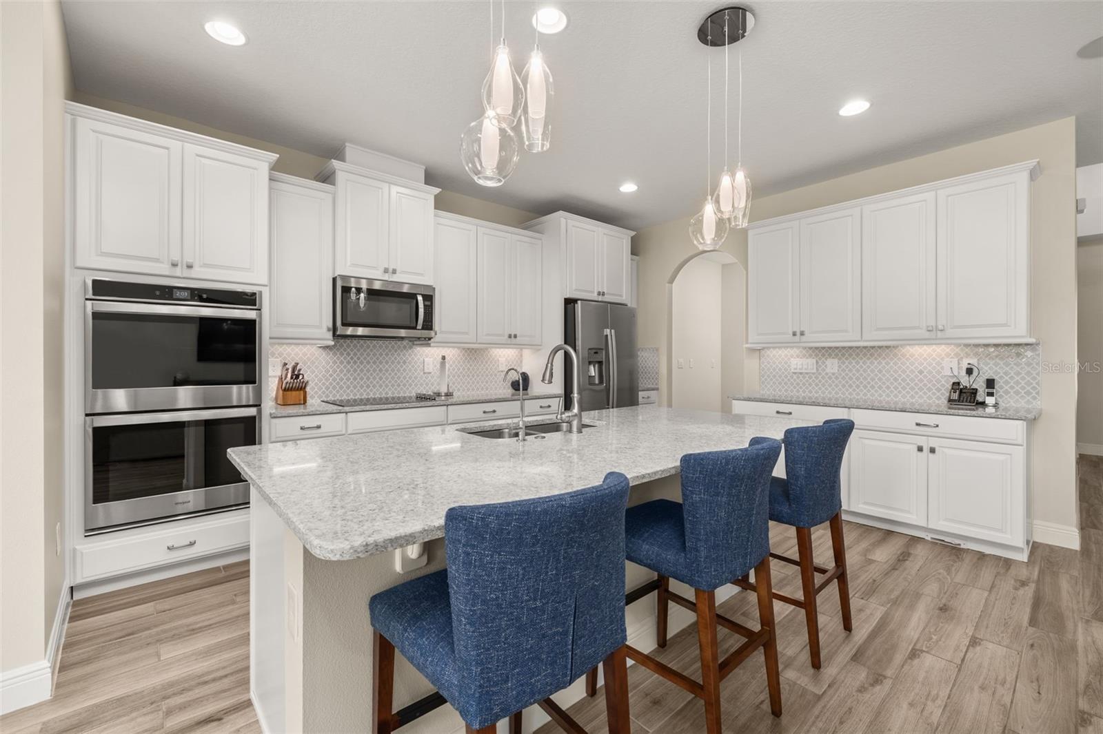 The lakefront life of grandeur awaits you in this stunningly enhanced North Haven model by DR Horton's luxury line, Emerald Homes! Structural enhancements are plentiful and include a Control4 Smart Home Automation System, custom designed closets in nearly every closet throughout the home, security system, technology operated window treatment, entire home water softener, reverse osmosis kitchen faucet, recessed lighting, tile roof for added longevity, and more! Admire the curb appeal as you walk up to your covered front porch by way of the sealed brick paver sidewalk amidst luscious landscaping maintained entirely by the HOA. Relish in the wood plank tile that floor most of the downstairs for a highly desirable look as well as ease of maintenance. To the right of the entrance is a flex space (named the formal dining room by the builder) ready for you to make of it what you want. Continue into the main living space and soak in all of the lake views through the many windows on the back of the home. The gourmet kitchen is also in this open concept space for taking in the lake views, and it is truly a home chef's dream being lined with tons of cabinetry and countertop space. The dining space is right off the kitchen overlooking those beautiful lake views. The primary suite is tucked away privately in the back of the home downstairs and contains even more opportunities for lake viewing. A tray ceiling and custom designed closet make this space even more admirable. The en suite showcases a split dual vanity, massive walk-in shower, and a garden tub that all overlook the lake. Head upstairs via an upgrade staircase lined with wrought iron spindles and luxury vinyl flooring. The loft greets you with endless opportunities of how to customize this space for your enjoyment. A ceiling-mounted projector and theater screen are included with the sale. More windows allow in natural lighting as well as the views of the lake. A Jack-and-Jill bathroom connect bedrooms 2 and 3, and both rooms feature custom designed closets. Bedrooms 4 and 5 are also upstairs and adorned with custom designed closets, and their bathroom is outside of the bedrooms and houses a dual vanity with separate water closet. Head out back where your gargantuan backyard extends from the house to the edge of the waters of Lake Ihrig. Relish in the fact that the HOA maintains this entire extended backyard so you have even more time to enjoy this outdoor space that is extremely rare in Horizon West. The tandem 3-car garage efficiently utilizes every opportunity for space. Situated in the back of the community, you truly get the best of both worlds by enjoying the peace and quiet yet also being a short walk away from the vast amount of amenities, A-rated schools, and the shopping plaza. Waterleigh is building out its final phase, and the Emerald Series is no longer offered making this an even more unique and special opportunity. Inquire today on how to make this gem your own!