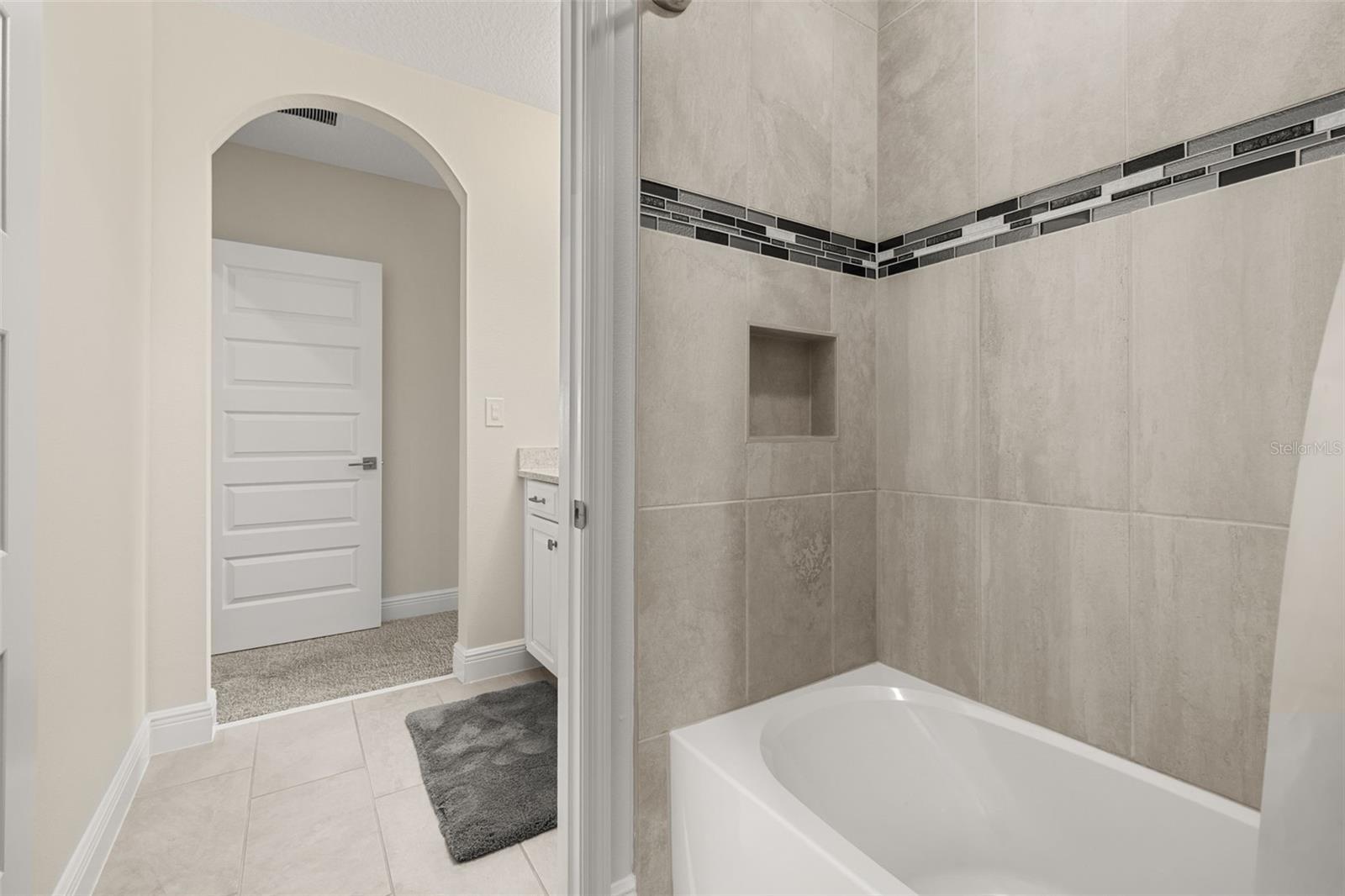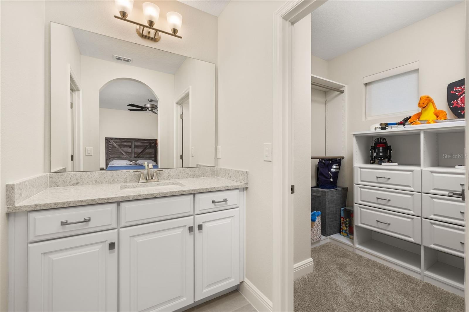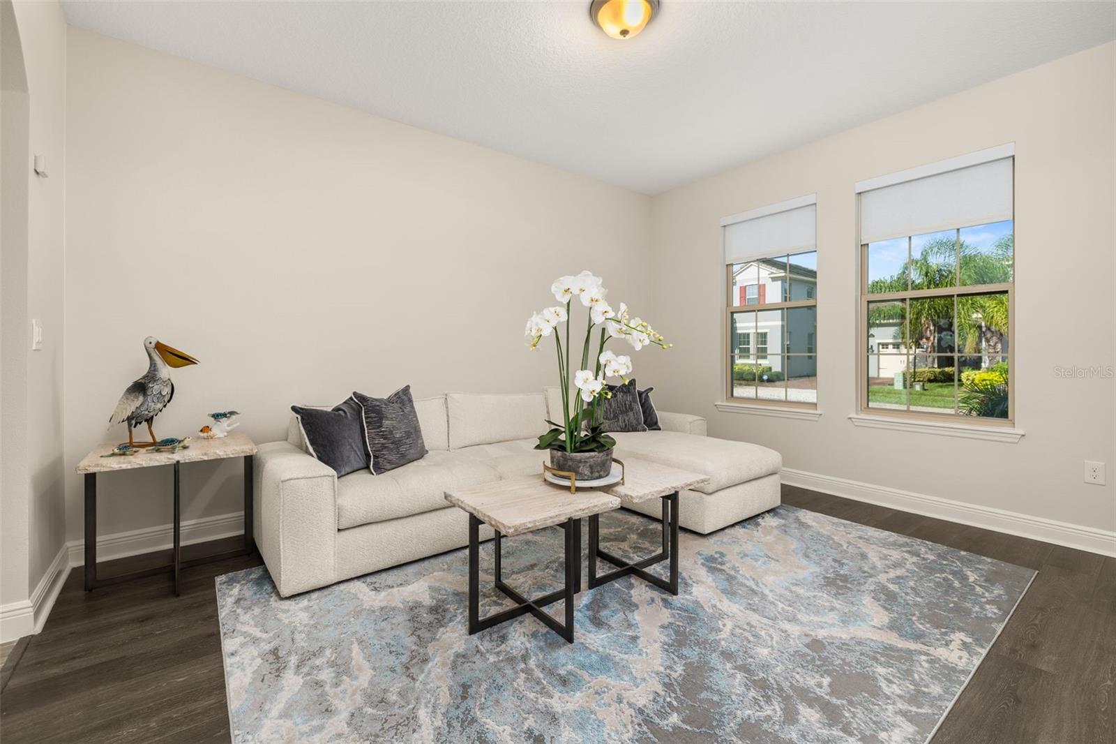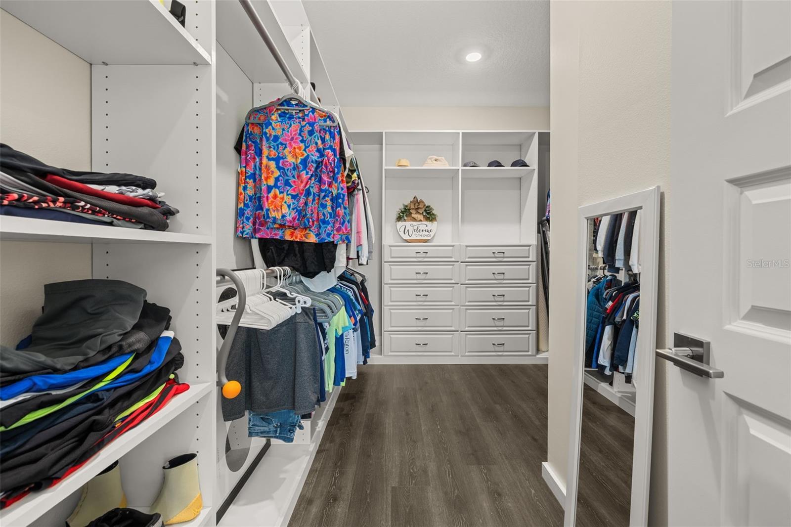 The lakefront life of grandeur awaits you in this stunningly enhanced North Haven model by DR Horton's luxury line, Emerald Homes! Structural enhancements are plentiful and include a Control4 Smart Home Automation System, custom designed closets in nearly every closet throughout the home, security system, technology operated window treatment, entire home water softener, reverse osmosis kitchen faucet, recessed lighting, tile roof for added longevity, and more! Admire the curb appeal as you walk up to your covered front porch by way of the sealed brick paver sidewalk amidst luscious landscaping maintained entirely by the HOA. Relish in the wood plank tile that floor most of the downstairs for a highly desirable look as well as ease of maintenance. To the right of the entrance is a flex space (named the formal dining room by the builder) ready for you to make of it what you want. Continue into the main living space and soak in all of the lake views through the many windows on the back of the home. The gourmet kitchen is also in this open concept space for taking in the lake views, and it is truly a home chef's dream being lined with tons of cabinetry and countertop space. The dining space is right off the kitchen overlooking those beautiful lake views. The primary suite is tucked away privately in the back of the home downstairs and contains even more opportunities for lake viewing. A tray ceiling and custom designed closet make this space even more admirable. The en suite showcases a split dual vanity, massive walk-in shower, and a garden tub that all overlook the lake. Head upstairs via an upgrade staircase lined with wrought iron spindles and luxury vinyl flooring. The loft greets you with endless opportunities of how to customize this space for your enjoyment. A ceiling-mounted projector and theater screen are included with the sale. More windows allow in natural lighting as well as the views of the lake. A Jack-and-Jill bathroom connect bedrooms 2 and 3, and both rooms feature custom designed closets. Bedrooms 4 and 5 are also upstairs and adorned with custom designed closets, and their bathroom is outside of the bedrooms and houses a dual vanity with separate water closet. Head out back where your gargantuan backyard extends from the house to the edge of the waters of Lake Ihrig. Relish in the fact that the HOA maintains this entire extended backyard so you have even more time to enjoy this outdoor space that is extremely rare in Horizon West. The tandem 3-car garage efficiently utilizes every opportunity for space. Situated in the back of the community, you truly get the best of both worlds by enjoying the peace and quiet yet also being a short walk away from the vast amount of amenities, A-rated schools, and the shopping plaza. Waterleigh is building out its final phase, and the Emerald Series is no longer offered making this an even more unique and special opportunity. Inquire today on how to make this gem your own!