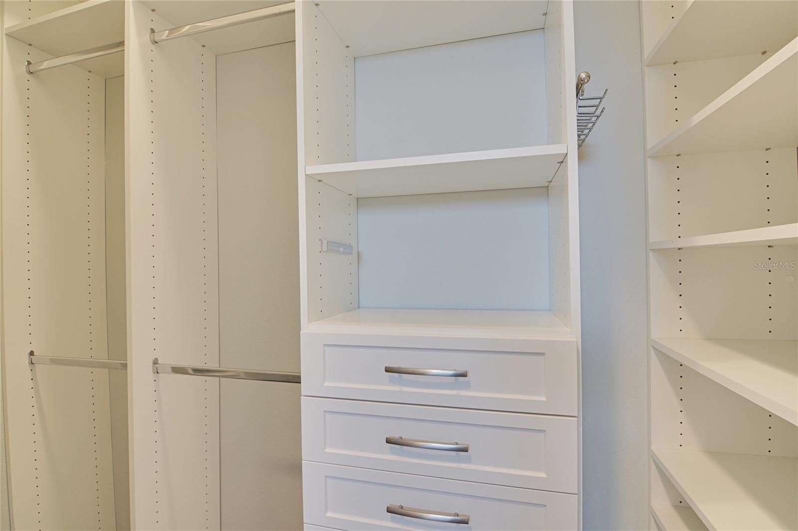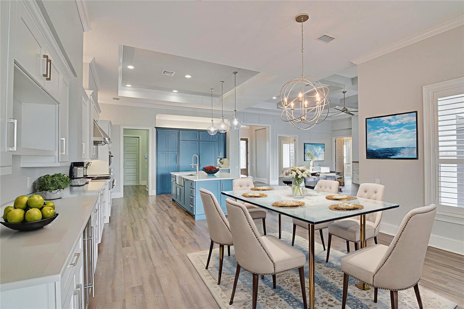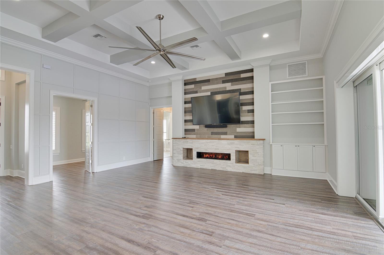 - Ceiling Fans(s), Eat-in Kitchen, High Ceilings, Kitchen/Family Room Combo, Open Floorplan, Primary Bedroom Main Floor, Solid Wood Cabinets, Stone Counters, Tray Ceiling(s), Walk-In Closet(s)