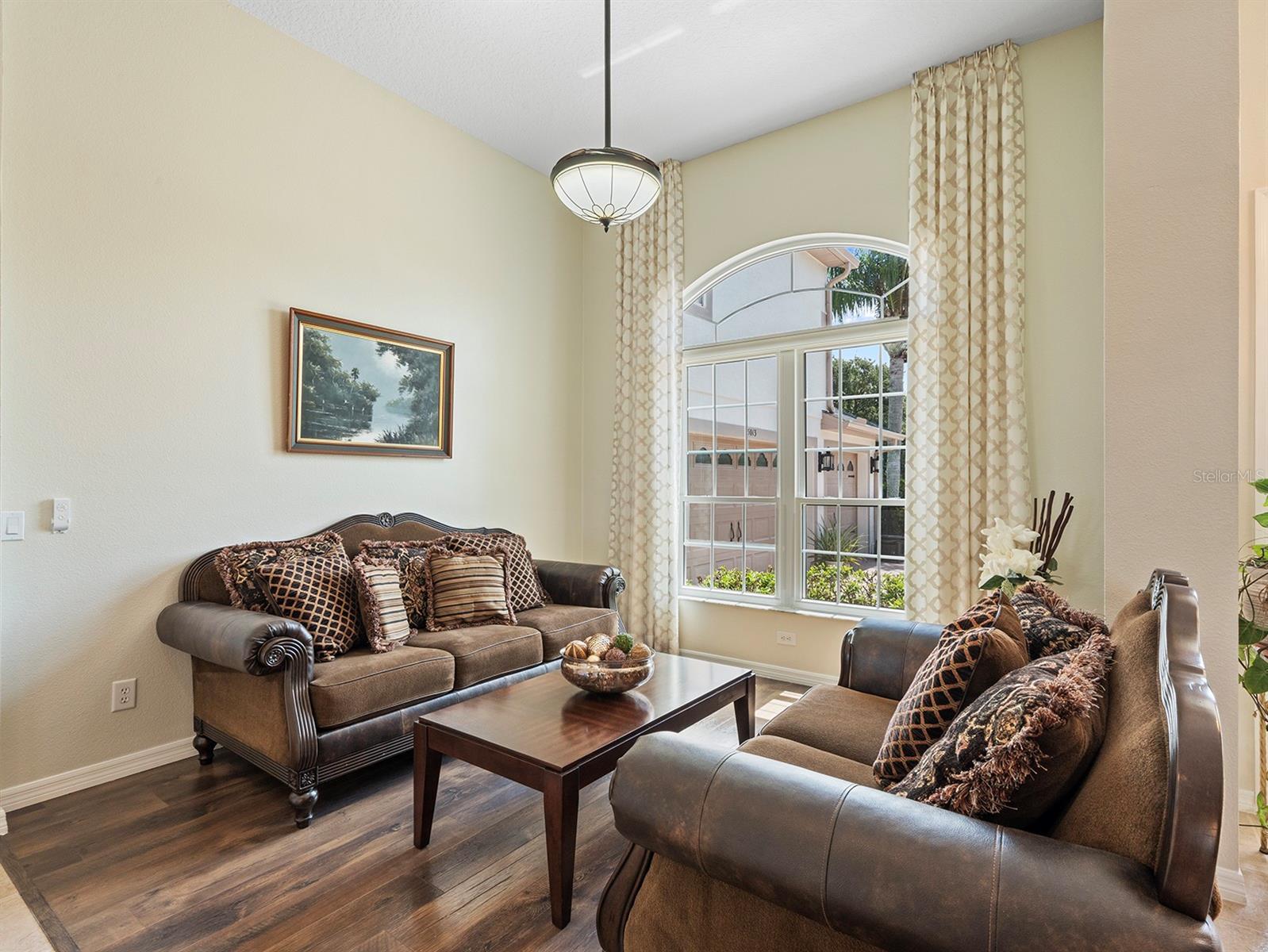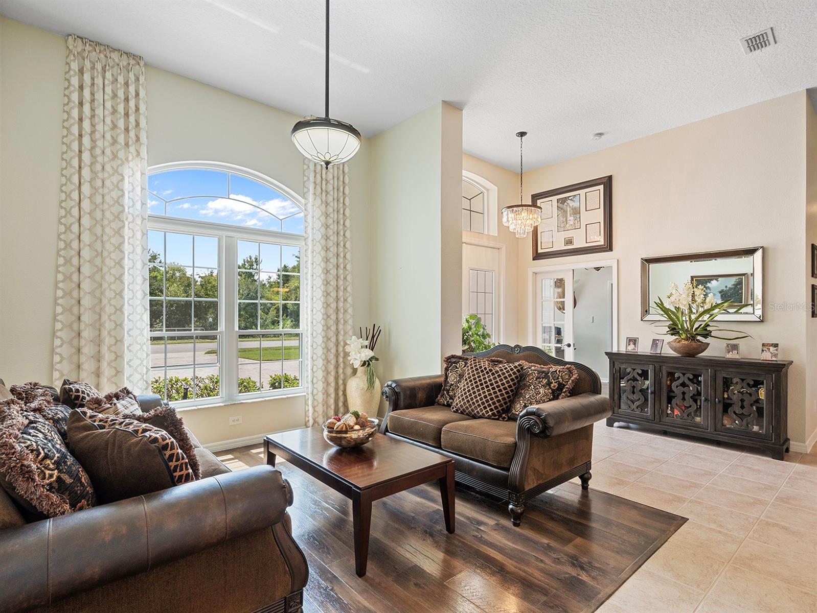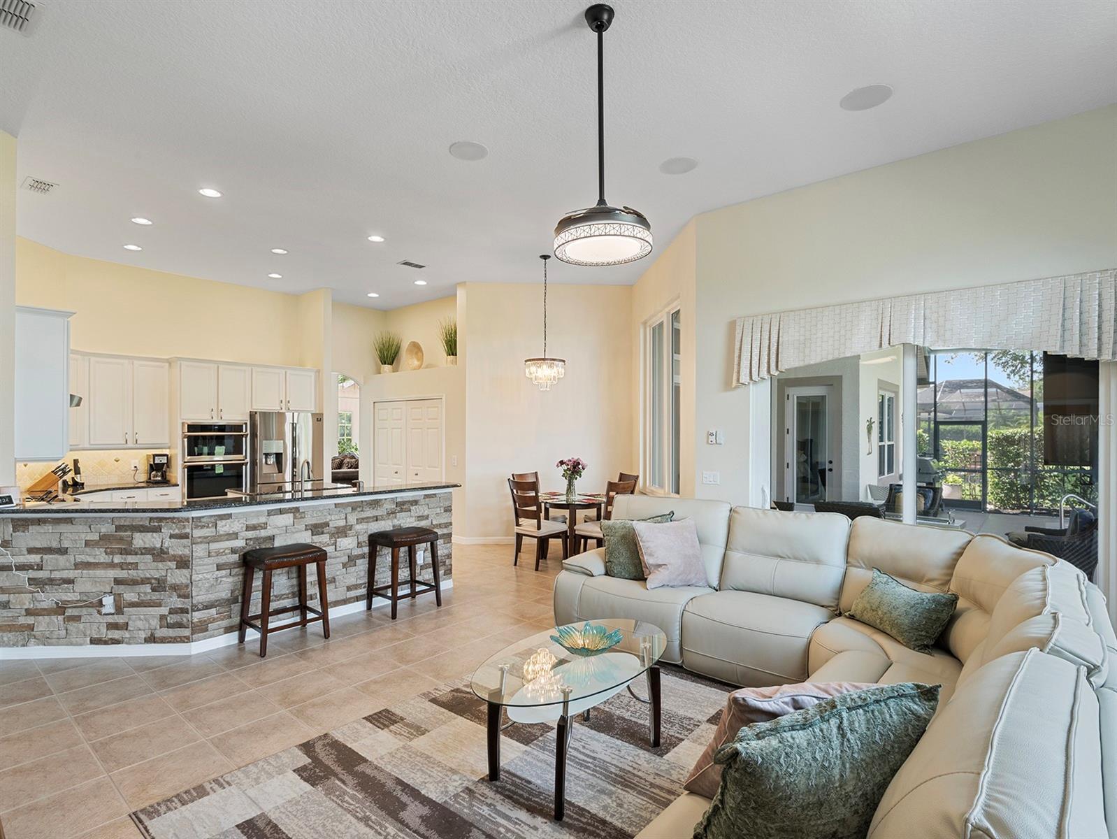 - Built-in Features, Ceiling Fans(s), Central Vaccum, Eat-in Kitchen, High Ceilings, Kitchen/Family Room Combo, Open Floorplan, Primary Bedroom Main Floor, Solid Wood Cabinets, Stone Counters, Thermostat, Tray Ceiling(s), Walk-In Closet(s), Window Treatments