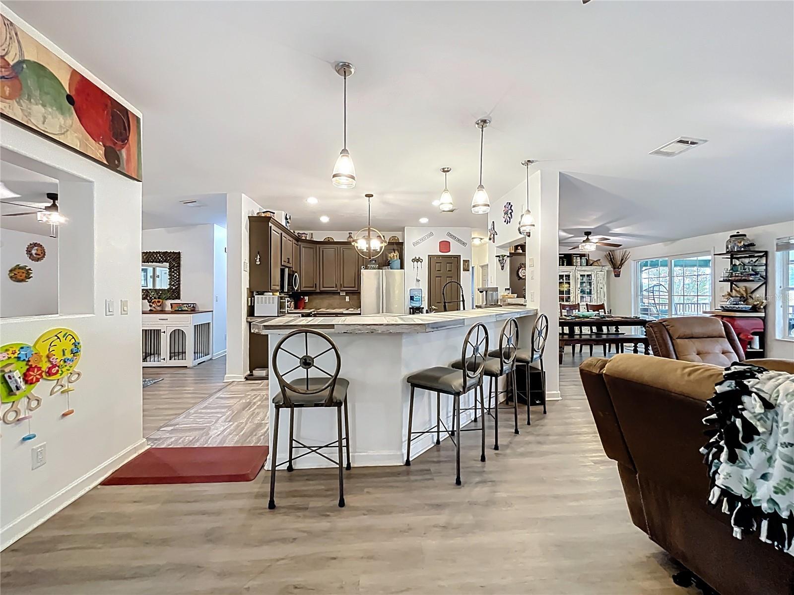 - Ceiling Fans(s), High Ceilings, Kitchen/Family Room Combo, Living Room/Dining Room Combo, Open Floorplan, Primary Bedroom Main Floor, Split Bedroom, Thermostat, Walk-In Closet(s)