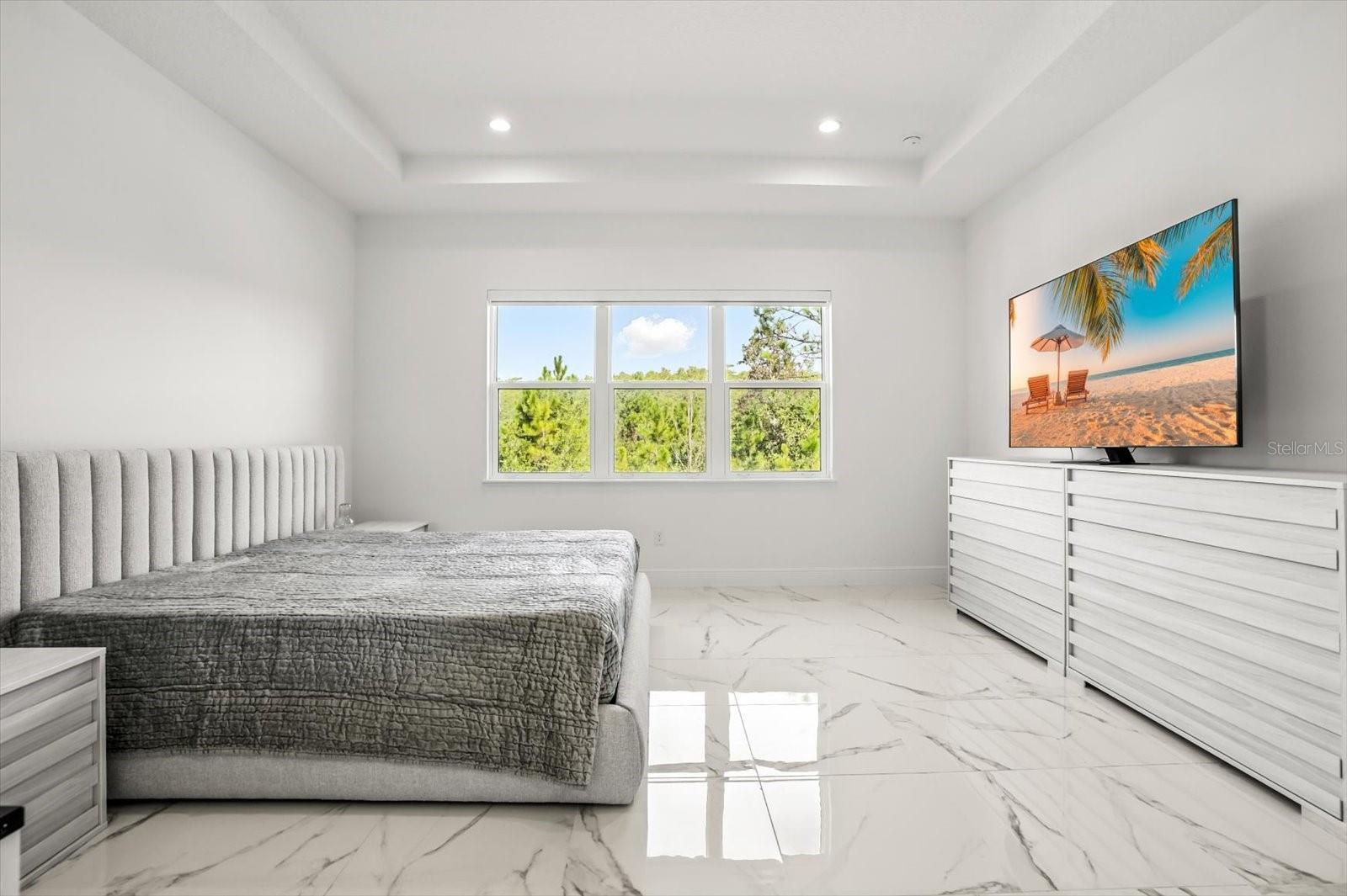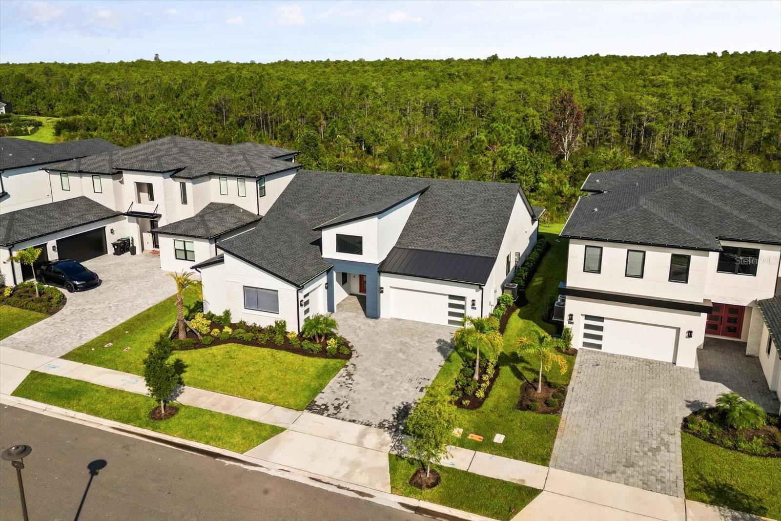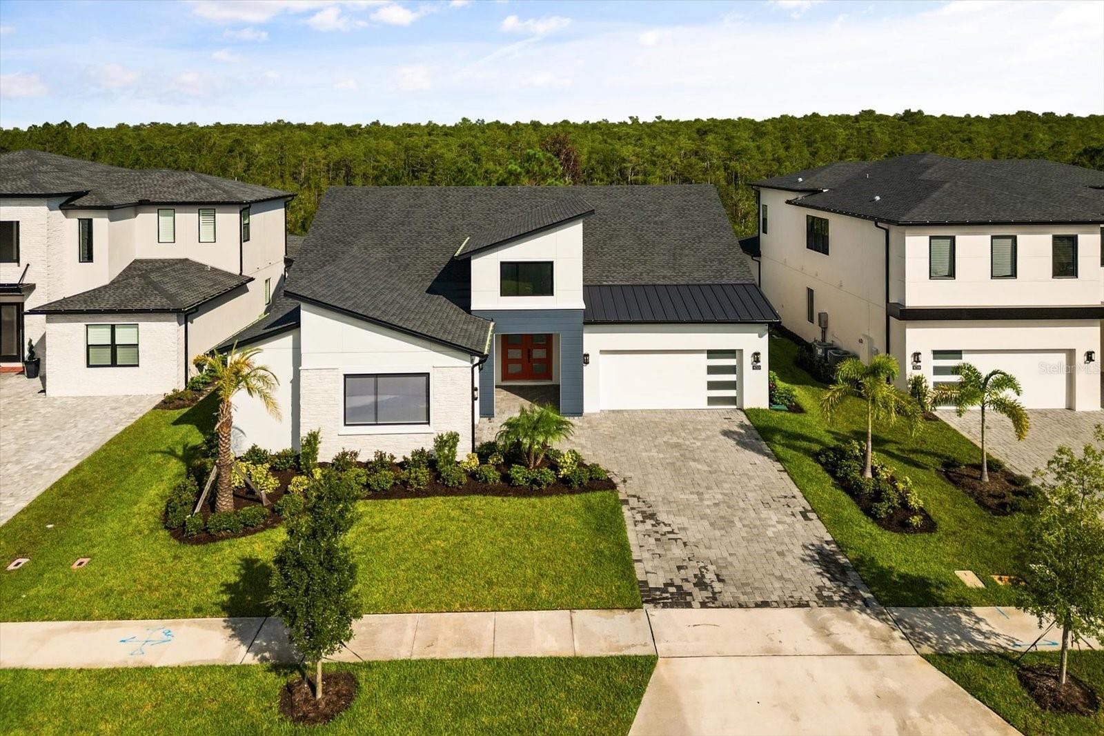 Welcome to the Bordeaux Modern, a striking contemporary one-story residence located in the private community of Laurel Pointe, Toll Brother’s new and gated neighborhood with only 124 homes. Completely sold out with construction complete, this home represents a great opportunity to own in one of Lake Nona’s most sought-after communities. This home is exceptionally rare—one of only two single-story Bordeaux floor plans in the 70' Collage Collection across the entire Laurel Pointe community. This thoughtfully designed four bedroom, four bathroom home spans nearly 3,000 square feet of luxury living space on a generous .23-acre lot. The bold modern elevation and clean architectural lines make a stunning first impression. Inside, soaring ceilings, sleek tile floors, and an open-concept design create a perfect balance of style and comfort. The heart of the home features a chef’s kitchen with an oversized waterfall island, walk-in pantry, custom cabinetry, and premium appliances, flowing seamlessly into the casual dining space and expansive great room with a dramatic feature wall. Walls of glass frame the private conservation view and open to the covered lanai, offering the ideal setting for indoor-outdoor entertaining. The oversized backyard provides plenty of room to design your own pool and backyard oasis. The primary suite is a serene retreat with tray ceilings, large windows overlooking the conservation, a spa-inspired bathroom with dual vanities, a free-standing tub, an oversized shower with designer tile, and a spacious walk-in closet. Three additional bedrooms each include walk-in closets and access to full baths, while a versatile flex room provides the perfect space for a home office, media lounge, or playroom. Additional highlights include a split three car garage, and energy-efficient construction with designer finishes throughout. As a Laurel Pointe homeowner, you will also enjoy full access to Laureate Park’s amenities, including LP Fit fitness center, resort-style pools, playgrounds, and miles of trails. Lake Nona’s Town Center, Medical City, and top-rated schools are just minutes away.