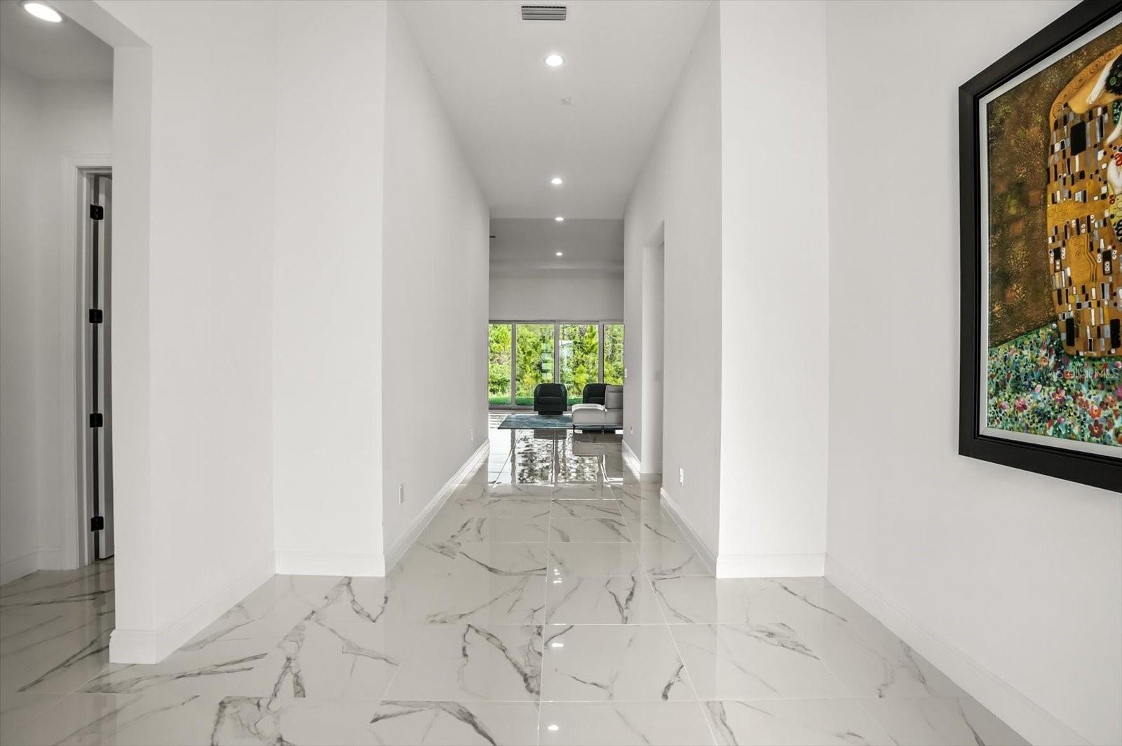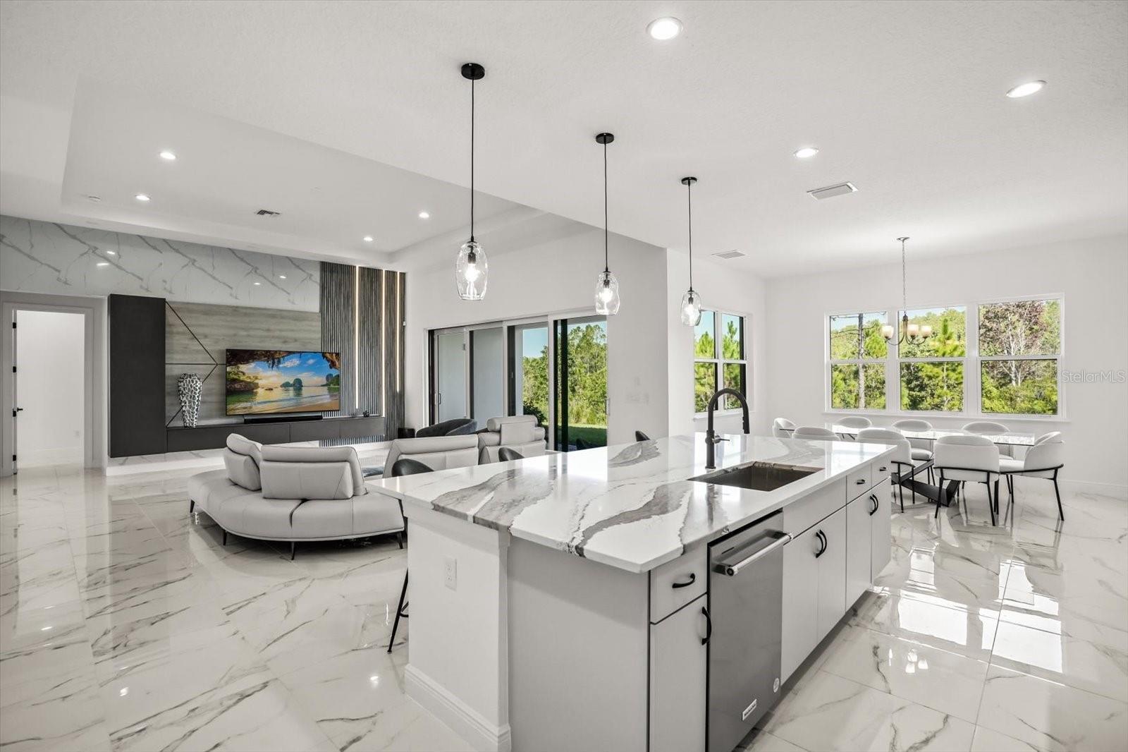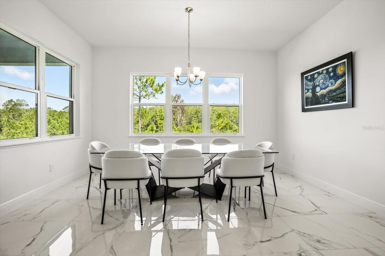 Welcome to the Bordeaux Modern, a striking contemporary one-story residence located in the private community of Laurel Pointe, Toll Brother’s new and gated neighborhood with only 124 homes. Completely sold out with construction complete, this home represents a great opportunity to own in one of Lake Nona’s most sought-after communities. This home is exceptionally rare—one of only two single-story Bordeaux floor plans in the 70' Collage Collection across the entire Laurel Pointe community. This thoughtfully designed four bedroom, four bathroom home spans nearly 3,000 square feet of luxury living space on a generous .23-acre lot. The bold modern elevation and clean architectural lines make a stunning first impression. Inside, soaring ceilings, sleek tile floors, and an open-concept design create a perfect balance of style and comfort. The heart of the home features a chef’s kitchen with an oversized waterfall island, walk-in pantry, custom cabinetry, and premium appliances, flowing seamlessly into the casual dining space and expansive great room with a dramatic feature wall. Walls of glass frame the private conservation view and open to the covered lanai, offering the ideal setting for indoor-outdoor entertaining. The oversized backyard provides plenty of room to design your own pool and backyard oasis. The primary suite is a serene retreat with tray ceilings, large windows overlooking the conservation, a spa-inspired bathroom with dual vanities, a free-standing tub, an oversized shower with designer tile, and a spacious walk-in closet. Three additional bedrooms each include walk-in closets and access to full baths, while a versatile flex room provides the perfect space for a home office, media lounge, or playroom. Additional highlights include a split three car garage, and energy-efficient construction with designer finishes throughout. As a Laurel Pointe homeowner, you will also enjoy full access to Laureate Park’s amenities, including LP Fit fitness center, resort-style pools, playgrounds, and miles of trails. Lake Nona’s Town Center, Medical City, and top-rated schools are just minutes away.
