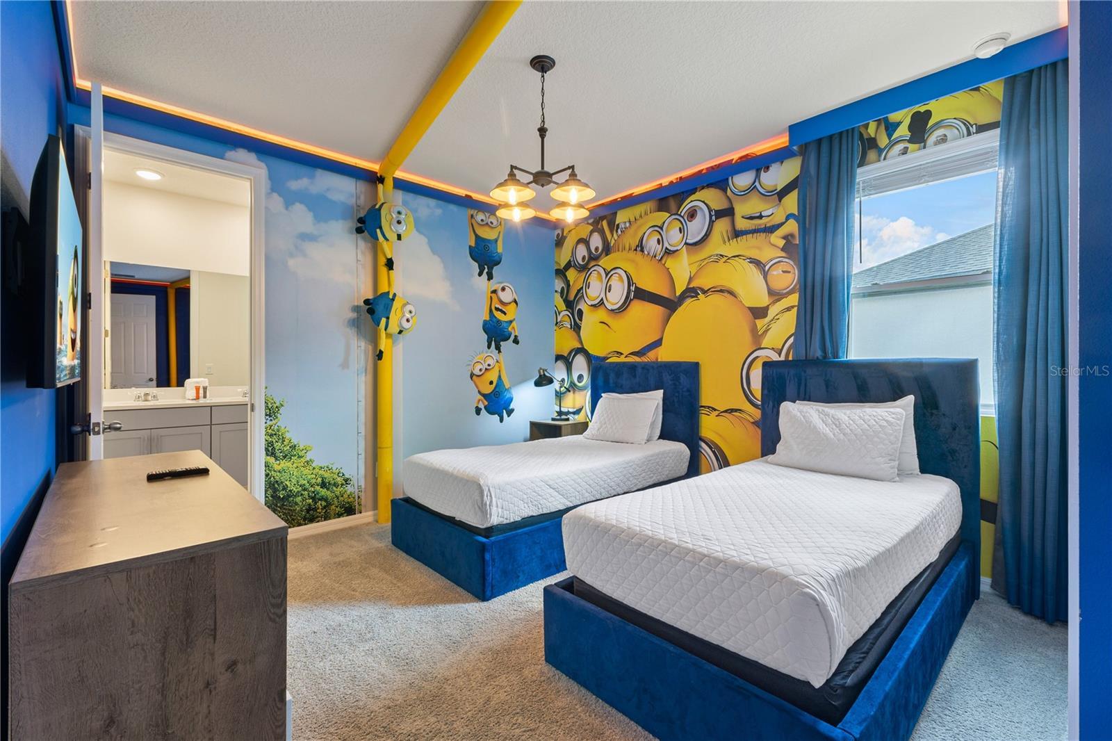 Experience unmatched privacy and luxury in this spectacular 9-bedroom, 6.5-bathroom home located in the Solara Resort, just minutes from Disney. Built in 2022, this beautifully decorated and fully furnished turnkey property boasts over 4,300 sq ft of modern living space, including a spacious open kitchen, game and movie rooms, and stunning themed bedrooms. Step outside to a private heated pool and spa with no rear neighbors—just a serene pond view that provides extra privacy and a peaceful atmosphere. This home is vacation rental ready, offering immediate income potential for investors seeking strong short-term rental returns. Whether you’re looking for a personal retreat or a high-performing investment property, this is one of the best opportunities in the market. Enjoy access to world-class amenities including a clubhouse, water park, restaurant, fitness center, and 24/7 gated security.