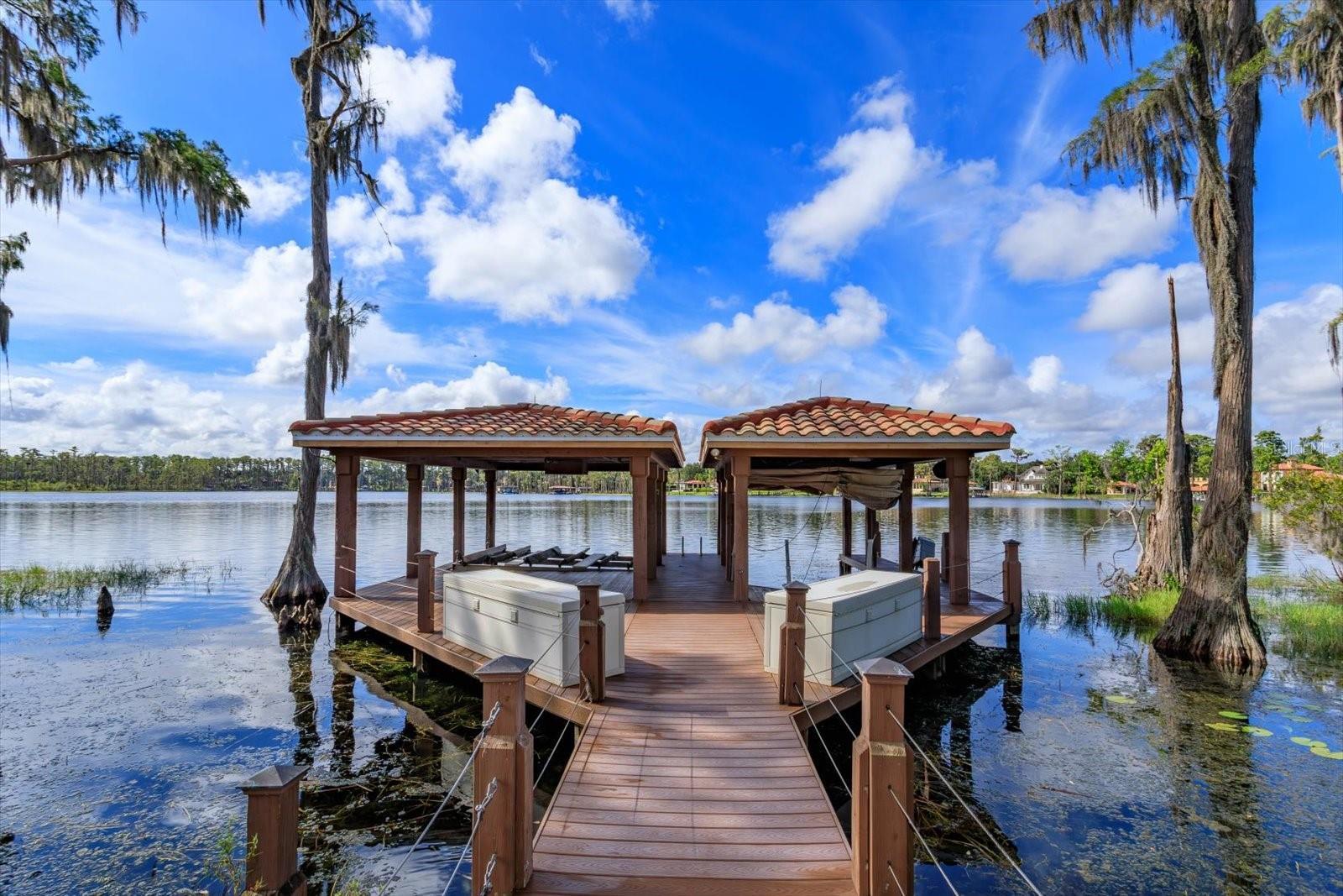 Experience the pinnacle of luxury living in this extraordinary lakefront estate located in the world-renowned Isleworth Golf & Country Club. Positioned on 2.14 private acres along Lake Louise, part of the Butler Chain of Lakes, this 24,950 sq ft masterpiece (16,259 under air) blends timeless craftsmanship, modern amenities, and a warm, inviting design that makes even the most expansive spaces feel like home. Built with uncompromising attention to detail and with an effective year built of 2012, this residence offers 7 ensuite bedrooms, including 5 in the main house and 2 in the guest house. Every suite features a generous walk-in closet and a luxurious private bath, creating a retreat of comfort and elegance for family and guests alike. The main level is anchored by a stunning gourmet kitchen, designed for both culinary artistry and everyday living. The expansive master suite offers a private office, personal gym, dual closets, and a covered balcony with sweeping lake views. Additional highlights include a 912-bottle climate-controlled wine cellar, game room, and hand-scraped walnut floors throughout. Outdoors, the property is an entertainer’s dream. Enjoy a summer kitchen with a full bar, an Olympic-sized swimming pool, and a private dock with a boat lift and a lift for three jet skis, perfect for exploring the Butler Chain. Set against the backdrop of Isleworth’s championship golf course—on the 16th hole—this estate seamlessly combines recreation and relaxation. Impeccably maintained and thoughtfully updated with a new commercial-grade hot water system and a state-of-the-art infiltration septic system (2022), this residence delivers peace of mind as well as prestige. From sunrise over Lake Louise to evenings by the pool, this estate is more than a home—it’s a legacy property designed for generations.