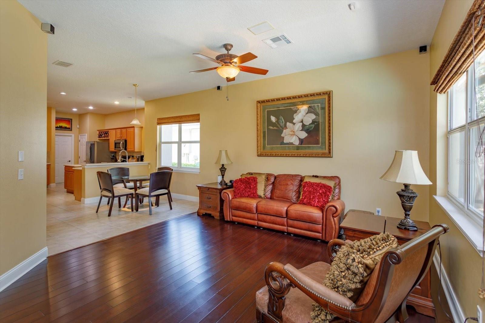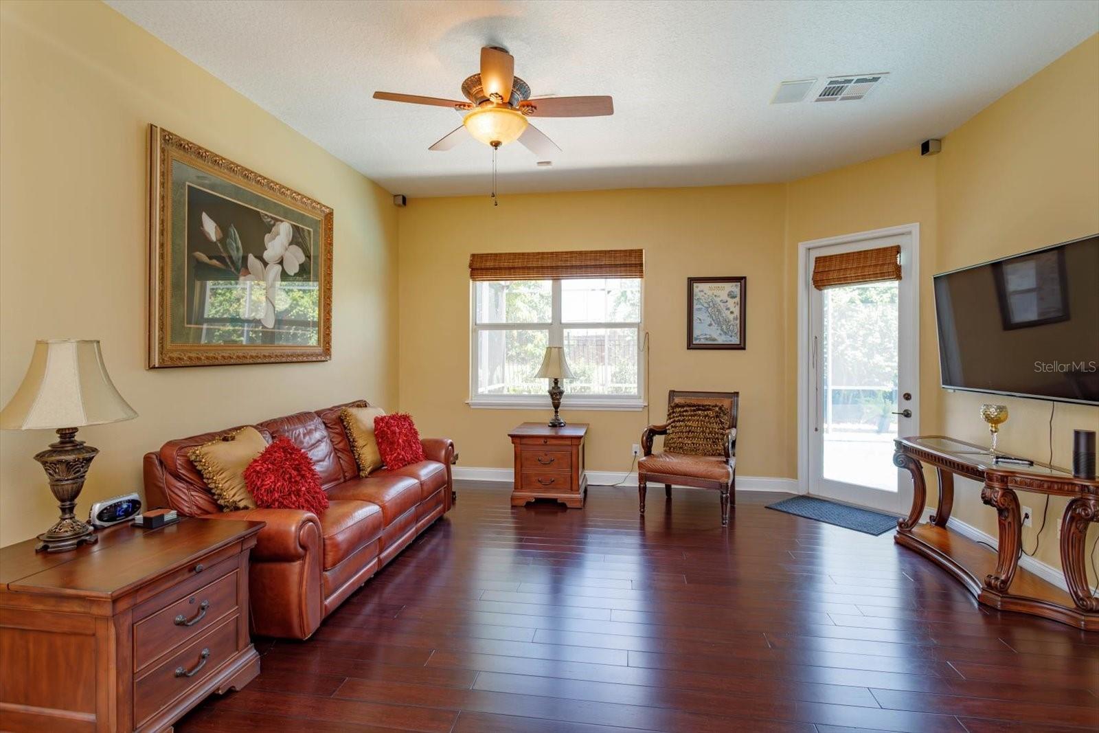 Enjoy the Central Florida lifestyle in this elegant home located in the guard-gated community of Avalon at Turtle Creek. Excellent curb appeal and professionally landscaped grounds highlight this premium lot. This home features an open floor plan with 3 bedrooms/3 bathrooms, formal dining room, living room and family room. Highlighted by neutral paint tones, plantation shutters, 5” baseboards, wood & tile floors and plenty of natural light throughout. The living room features a fireplace and French doors overlooking the pool. The kitchen is ideal for the aspiring chef in your family - featuring 42" light maple cabinets, solid surface counters, stainless steel appliances, an island and adjacent breakfast nook. The primary bedroom retreat is spacious and features a spa-like master bath and two walk-in custom closets. The second bedroom features an ensuite bathroom and walk-in closet. Extend your living area outdoors with a covered and screened lanai for enjoying the heated pool and spa year round. The back yard is private with lush landscaping – no rear neighbors. Upgrades include: EV charging station in garage, newer appliances, re-surfaced pool and exterior paint. Community amenities: clubhouse, community pool, park, playground, tennis, basketball and volleyball courts. Front yard lawn maintenance provided by HOA. Conveniently located to upscale shopping and dining at Restaurant Row, theme parks: Disney World, Universal, Sea World, medical and major roads. You will not want to miss seeing this meticulously maintained home!