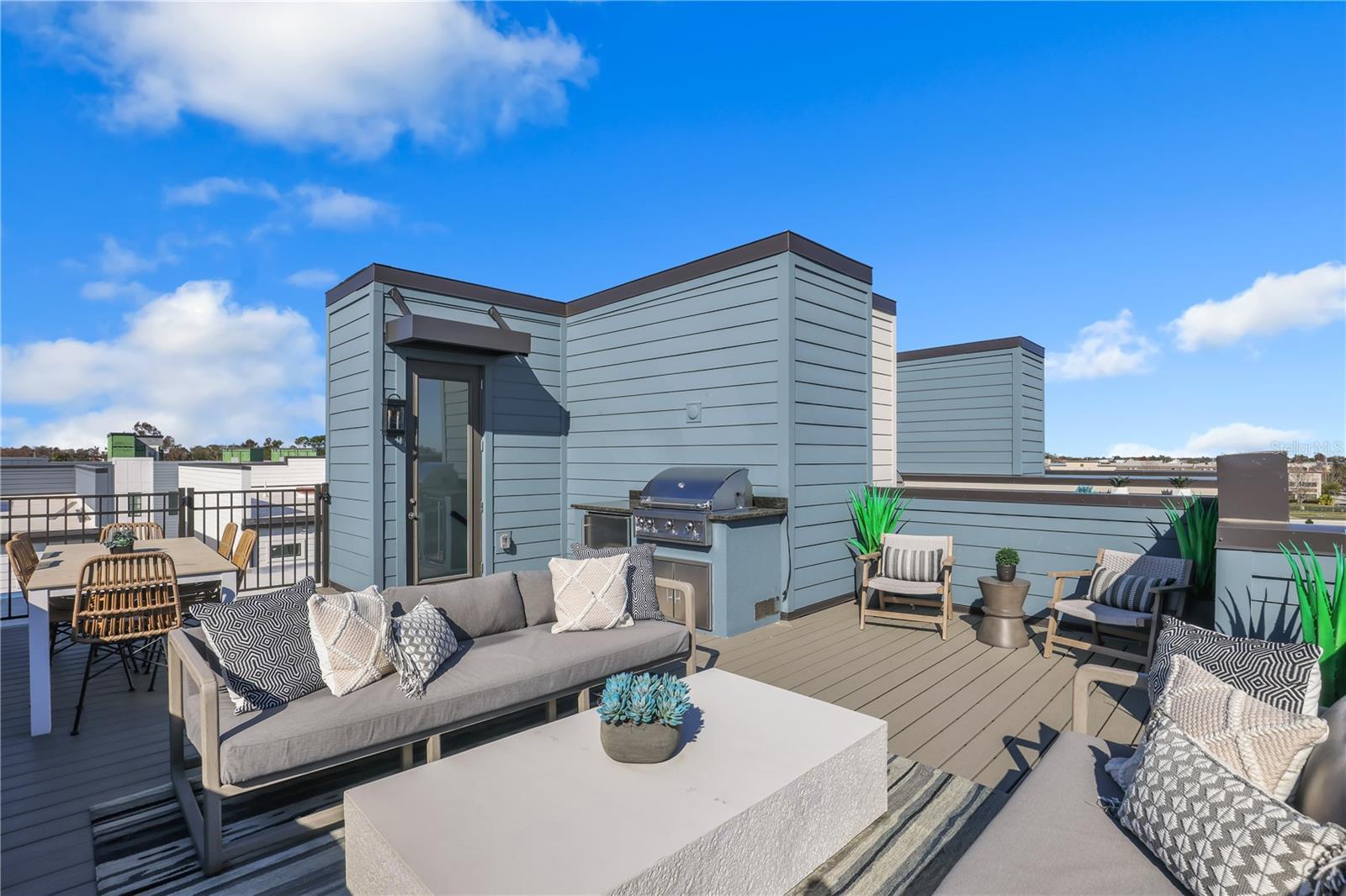 MODEL HOME AVAILABLE FOR SALE! All furniture is included! This stunning 4-story townhome is ready for you to move right in and start living the vibrant lifestyle you’ve been dreaming of. Step inside to a welcoming first floor that features a private bedroom with an ensuite bath- perfect for guests, a home office, or multi-generational living — along with a spacious two-car garage for added convenience. The second floor is where life happens. This bright, open-concept space includes a gourmet kitchen with upgraded brown cabinetry that reach to the ceiling, sleek quartz countertops- the island countertop will wow you, a designer backsplash, and premium appliances — refrigerator, range, microwave, dishwasher, washer, and dryer, all included. Enjoy casual meals in the dining area and unwind in the naturally lit great room that’s ideal for relaxing or entertaining. Upstairs on the third floor, you’ll find the serene primary bedroom retreat, a second spacious bedroom, and a walk-in laundry room that adds everyday ease. But the real showstopper? The fourth-floor rooftop terrace — your private outdoor haven, including a summer kitchen, prepped for a future fireplace, and even a hot tub. Whether you’re hosting friends, enjoying a peaceful morning coffee, or catching golden-hour views, this space is designed to impress. Inside, you’ll love the thoughtfully curated finishes: Engineered hardwood stairs and tile flooring throughout main living areas. Want a closer look? Tour our onsite model home, which mirrors the layout and design — and see firsthand why this home stands out. Living in The Packing District means so much more than just having a beautiful home — it’s about embracing a dynamic, connected lifestyle. Start your day with a peaceful walk or bike ride along the scenic 1.5-mile trail, then grab a slice at the food hall or break a sweat at the brand-new YMCA. Meet up with friends for a competitive game of pickleball or tennis at the Orlando Tennis Center — all just steps from your door. And the amenities don’t stop there. The Packing District is growing into one of Orlando’s most exciting new communities, featuring a new Publix, rock climbing facility, Hotworx Studio, and the innovative 4Roots Farm Campus. With future office and retail spaces also in the works, everything you need — from wellness to convenience to recreation — is right at your fingertips.