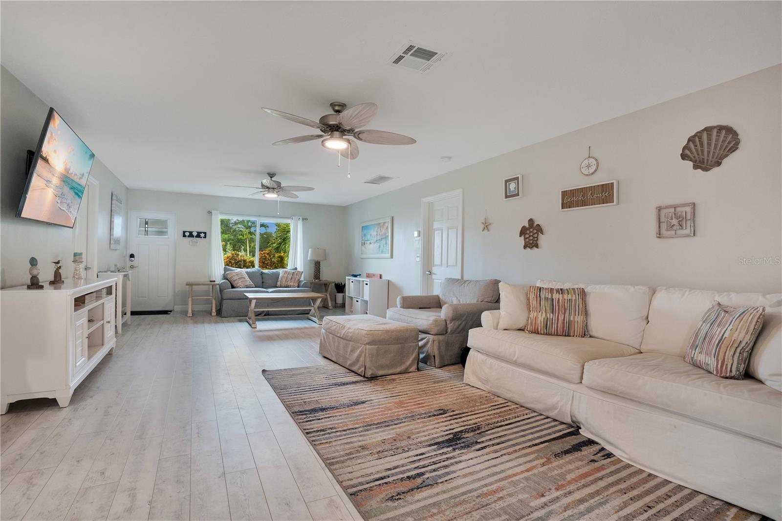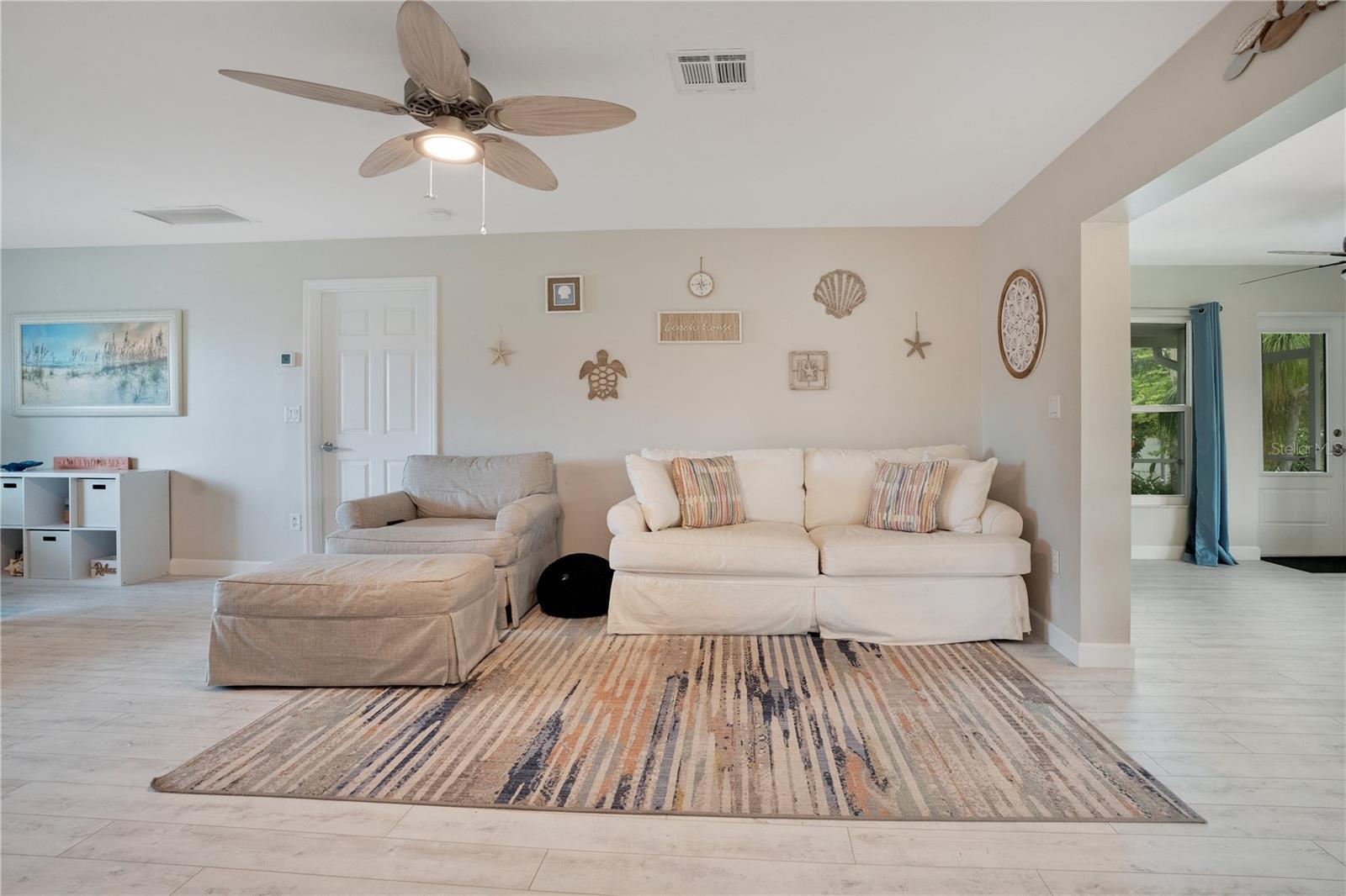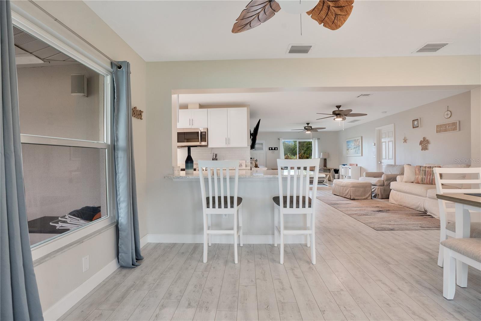 - Ceiling Fans(s), Open Floorplan, Primary Bedroom Main Floor, Stone Counters, Thermostat, Window Treatments