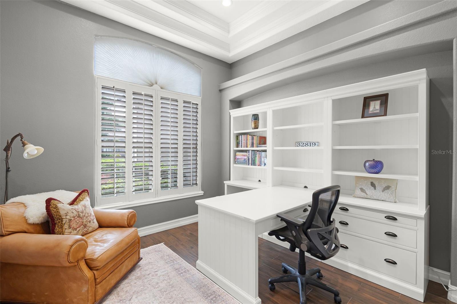 - Built-in Features, Ceiling Fans(s), Crown Molding, Eat-in Kitchen, High Ceilings, Open Floorplan, Primary Bedroom Main Floor, Solid Wood Cabinets, Stone Counters, Tray Ceiling(s), Walk-In Closet(s)