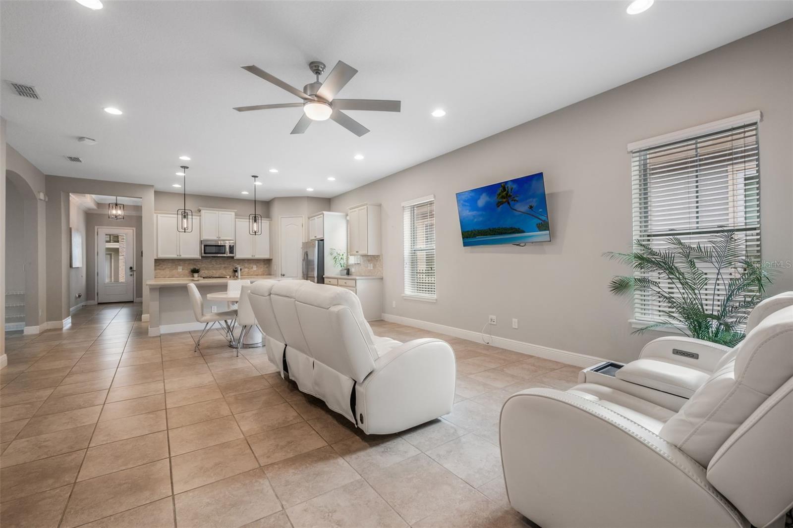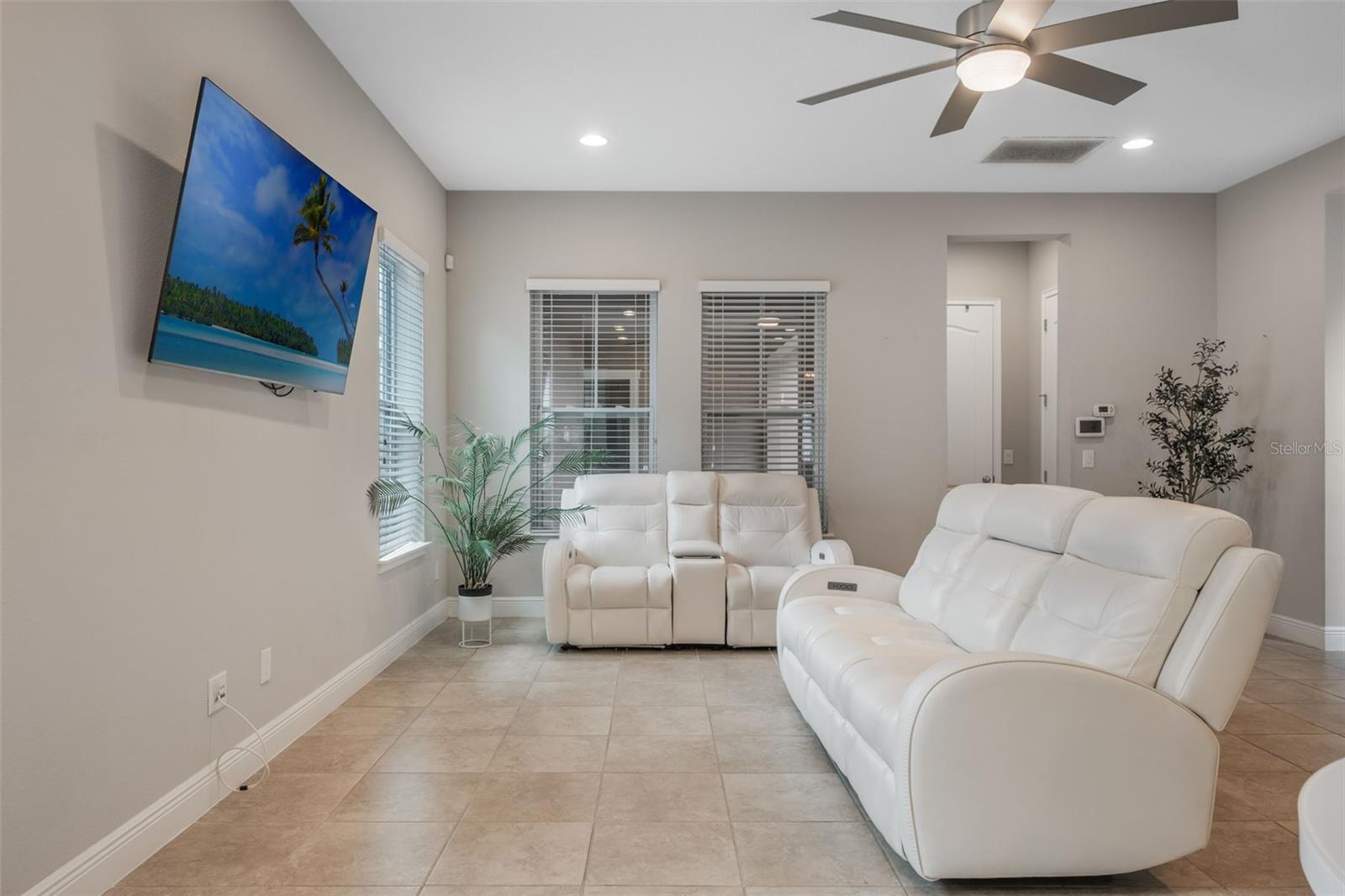 - Ceiling Fans(s), Crown Molding, Kitchen/Family Room Combo, Open Floorplan, Primary Bedroom Main Floor, Split Bedroom, Stone Counters, Thermostat, Walk-In Closet(s), Window Treatments