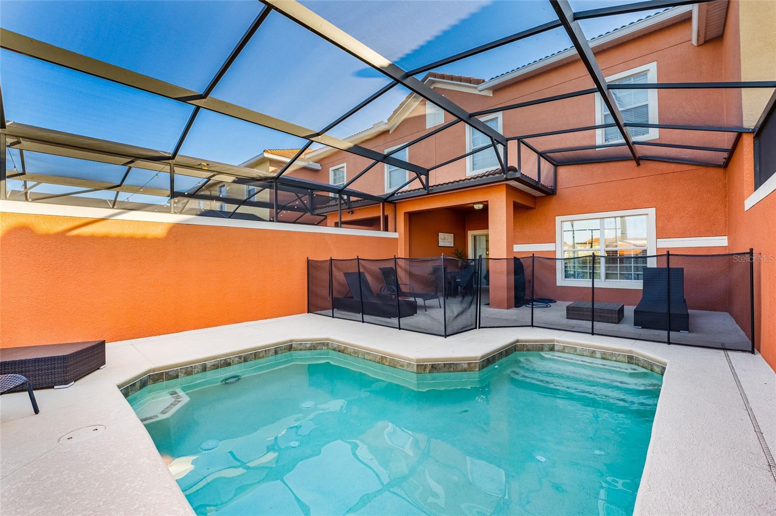 Beautiful Townhome, 4 Bedrooms, 3 Bathrooms, fully furnished, splash pool, screened patio, modern Kitchen, washer and dryer. Parking spot in front of the house and some others close to the house. Resort Amenities: 24/7 gated security, lagoon -style pool, clubhouse with movie theater, fitness center, sports courts, tiki bar , game room, playground. Only 5 miles from Disney, close to shopping, restaurants and mais highways. If you are looking for to live in high style, this house is for you.