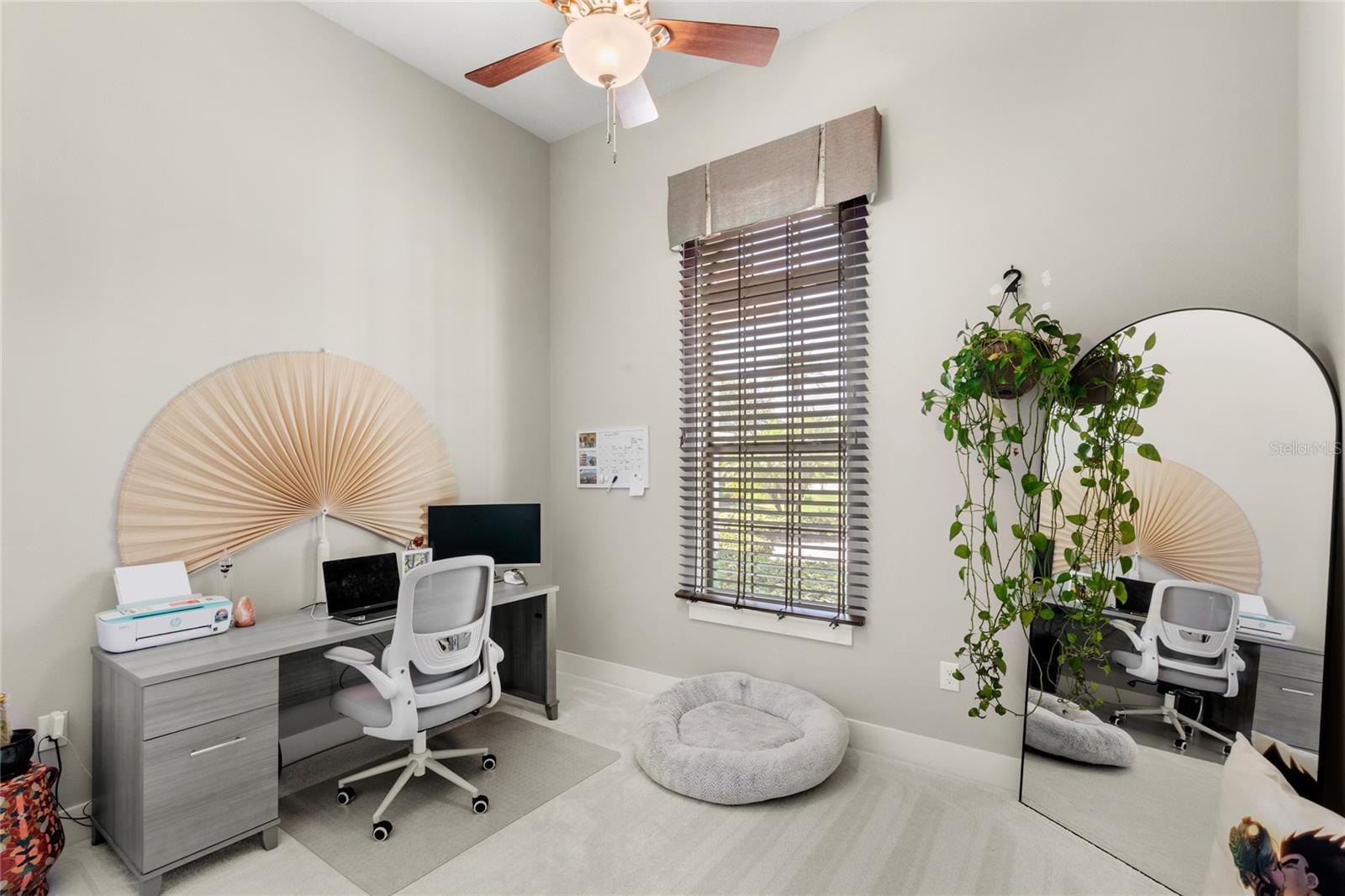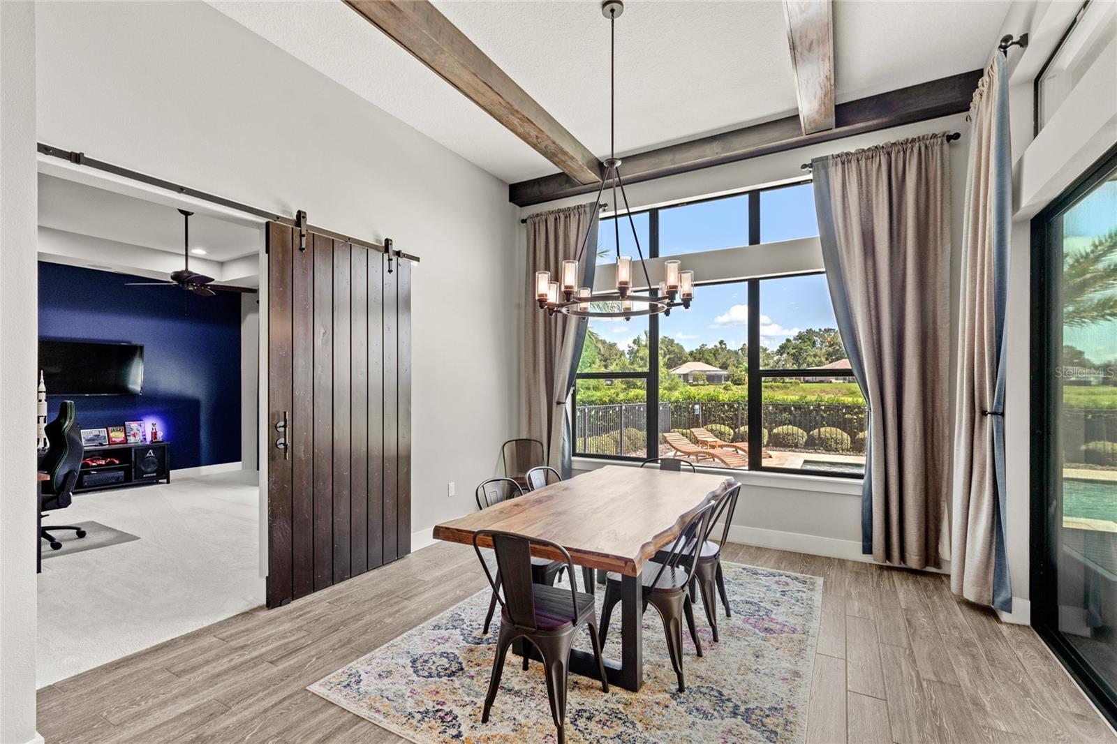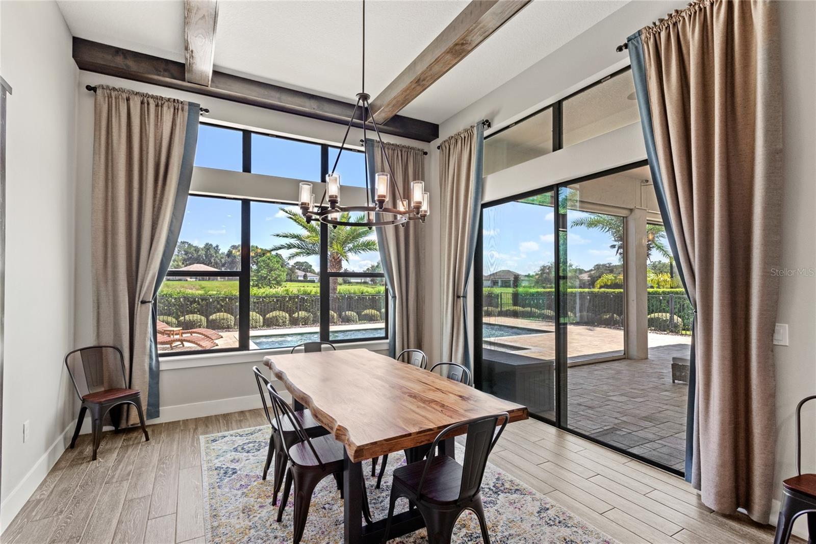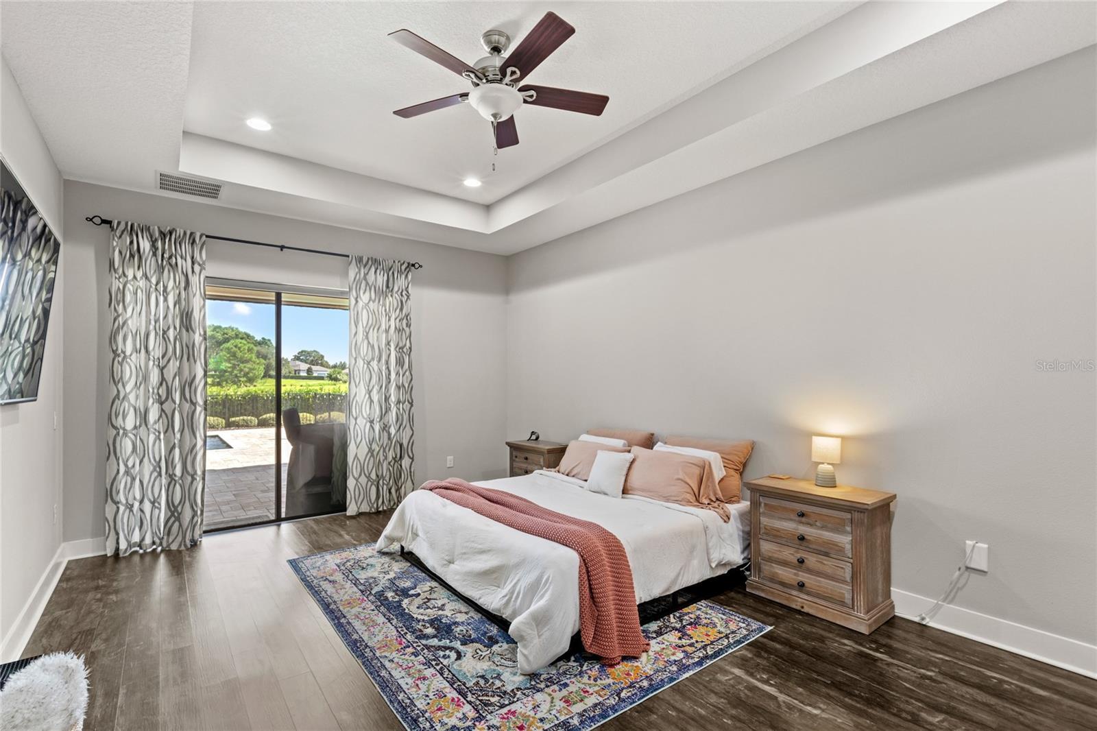 Welcome to 25609 Grandview Pointe! Built in 2017, this stunning single story, 4-bedroom, 4.5-bathroom home spans 3,500 square feet, and is located in the gated community of Red Tail. Situated in a cul-de-sac, on a homesite that is over half an acre, the home overlooks Bear’s Pond and the 11th hole of the golf course. Inside, the grand foyer opens to rich wood-look plank tile flooring, a formal dining room, and soaring 12-foot ceilings with custom wood beams, anchored by a stone fireplace. Expansive walls of windows fill the open-concept living areas with natural light, seamlessly connecting the gourmet kitchen, great room, and breakfast nook to the outdoor living space. The kitchen is the standout feature of the home, featuring quartz countertops, a 15 foot long island, upgraded stainless steel appliances, and extended solid wood cabinetry. The kitchen layout flows to the covered lanai, which features retractable screens, and overlooks the pool, pond and golf course views. The primary suite is complete with a breathtaking en-suite, which includes a soaking tub, walk-in shower, and dual vanities. The space is also complete with an oversized walk-in closet that has brand new carpet, and custom closet built-ins. The secondary bedrooms are situated on the opposite side of the home, offering a functional split floor plan. A flexible bonus room, which was freshly re-painted, sits between guest bedrooms two and three. This space would serve well as a playroom, hobby space, or home office. At the entrance to guest bedrooms two and three is a full bathroom with a shower. The third bedroom has its own en-suite. Guest bedroom four is across from the formal dining room, and has access to its own full bathroom, with a shower. Each of the bathrooms features upgraded tile that extends to the ceiling, and each guest bedroom (plus the media room and primary closet) features brand-new and upgraded carpet. The media room is complete with blackout shades and a barn doors, and could even serve as a 5th bedroom, if needed. Outdoors, the pool and paver patio offer the ideal space for outdoor entertaining. The pool is complete with water features and a sun shelf. There is a half bathroom outside for easy access from the pool. The yard is surrounded by mature and well manicured landscaping. Additional features of the home include: a 3-car garage with custom motors and taller garage doors, a yard surrounded by hedges, a dedicated laundry room with cabinetry and a drop zone, sealed pavers and a water filtration system. All of these features with a hard-to-beat location! Convenience is a huge part of living in Red Tail. Located only minutes to the 429 Expressway and 15 mins from Downtown Mount Dora, access in and out is easy. PLUS the Wekiva parkway extension is fully open, allowing you to drive from Red Tail all the way to I4 in Lake Mary in only 15 minutes. This is your chance to take advantage of the world-class lifestyle that the Red Tail has to offer, while also enjoying all of the nearby amenities that living in Sorrento brings to you. Call today to schedule your private tour.