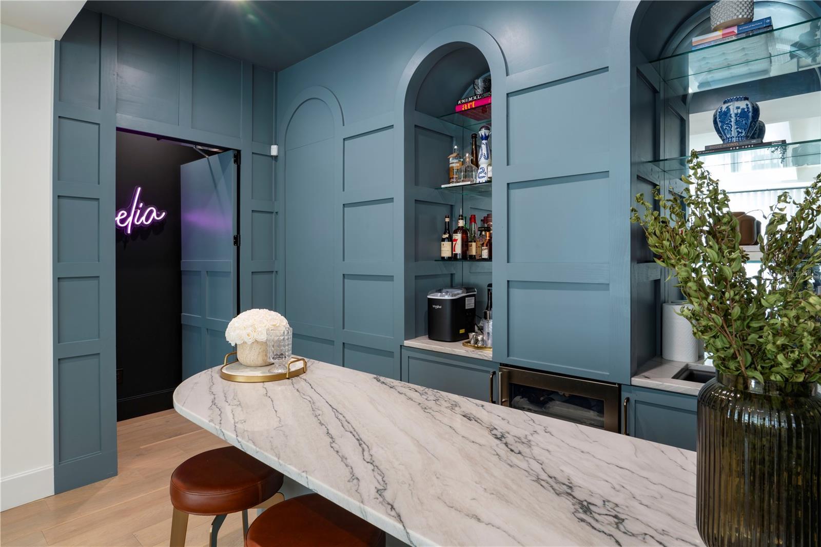 Under contract-accepting backup offers. This stunning private residence is on an oversized lot featuring a private sports pad, kids playground and sparkling pool. Encompassing over 6,700 square feet of expansive .55-acre lot, this home boast five spacious bedrooms, one office, 5.5 baths and a dedicated movie room, recording studio and a fully equipped gym with a private sauna. Ideally just moments from serene Lake Maitland and the charming Azalea Park, this home offers natural beauty and prime location. The chef's kitchen is designed for function and style with dual oversized islands, ideal for entertaining and everyday living. Spacious, inviting and thoughtfully designed, this oversized family room is the heart of the home-ideal for everything from cozy movie nights to lively holiday parties featuring expansive square footage, the room comfortably accommodates large groups, with plenty of space for multiple seating areas and a bar area. Oversized windows flood the space with natural light while the high ceilings and an open layout enhance the airy welcoming feel. Whether you are hosting extended family or entertaining friends, this room is built for connection, comfort and lasting memories. The private recording studio can be turned into a private mother-in-law suite or a kids playroom. The luxurious primary suite retreat to your own private oasis featuring a cozy fireplace, direct access to a serene private porch and a one-of-a-kind walk-in closet designed for style and functionality. The oversized en-suite bath boasts a steam shower, creating a spa-like experience right at home. Two additional en-suite bedrooms upstairs, each with walk in closets. Thoughtfully designed for convenience, this home features a spacious mud room off the garage which is ideal for busy households. Enjoy the ultimate convenience with two separate laundry rooms, one’s downstairs for easy access and a second upstairs near the bedrooms, making laundry day effortless and efficient. Ideally near Winter Park Racquet Club, Interlachen Country Club and accessible to Park Avenue, this exceptional residence also offers an extraordinary residence with a luxurious functionality and a premier location.